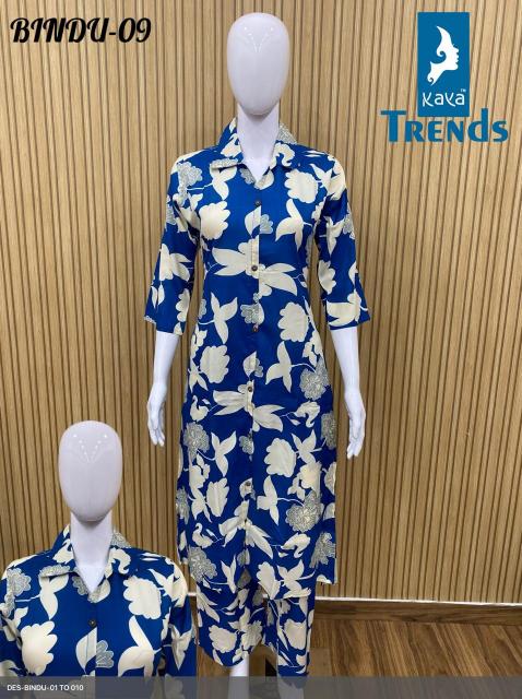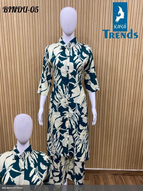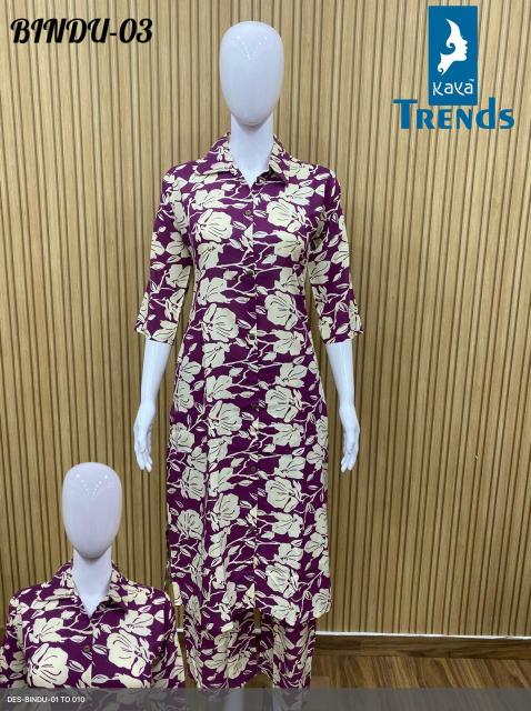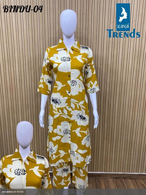 bindu by kaya fully stitch fashionable rayon print combo set co-ord