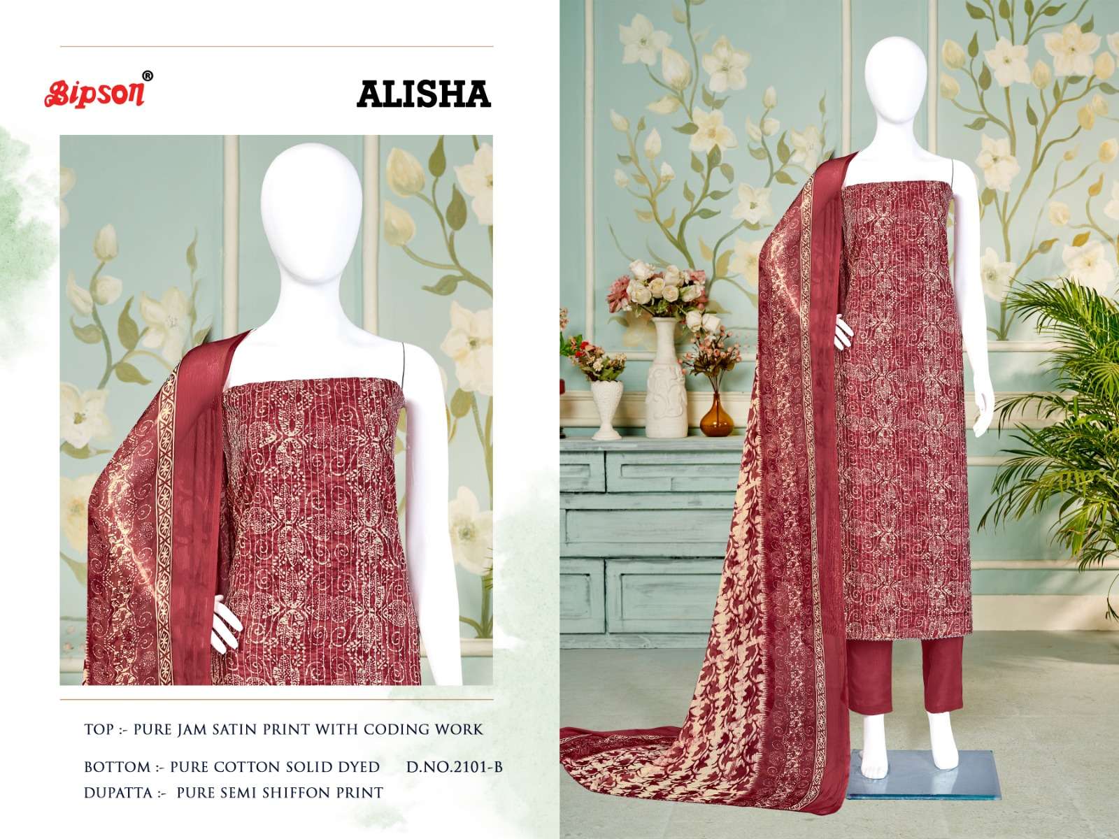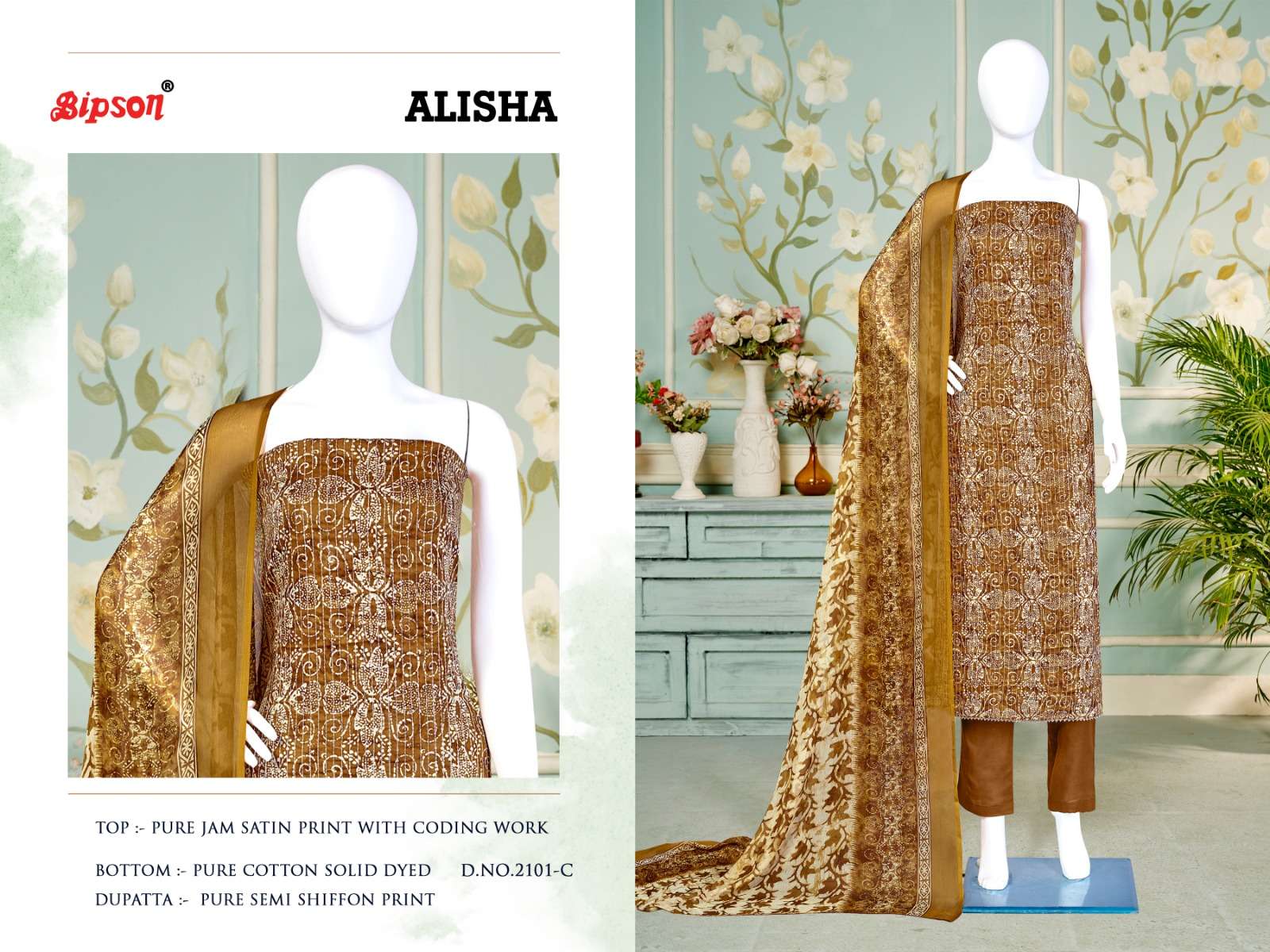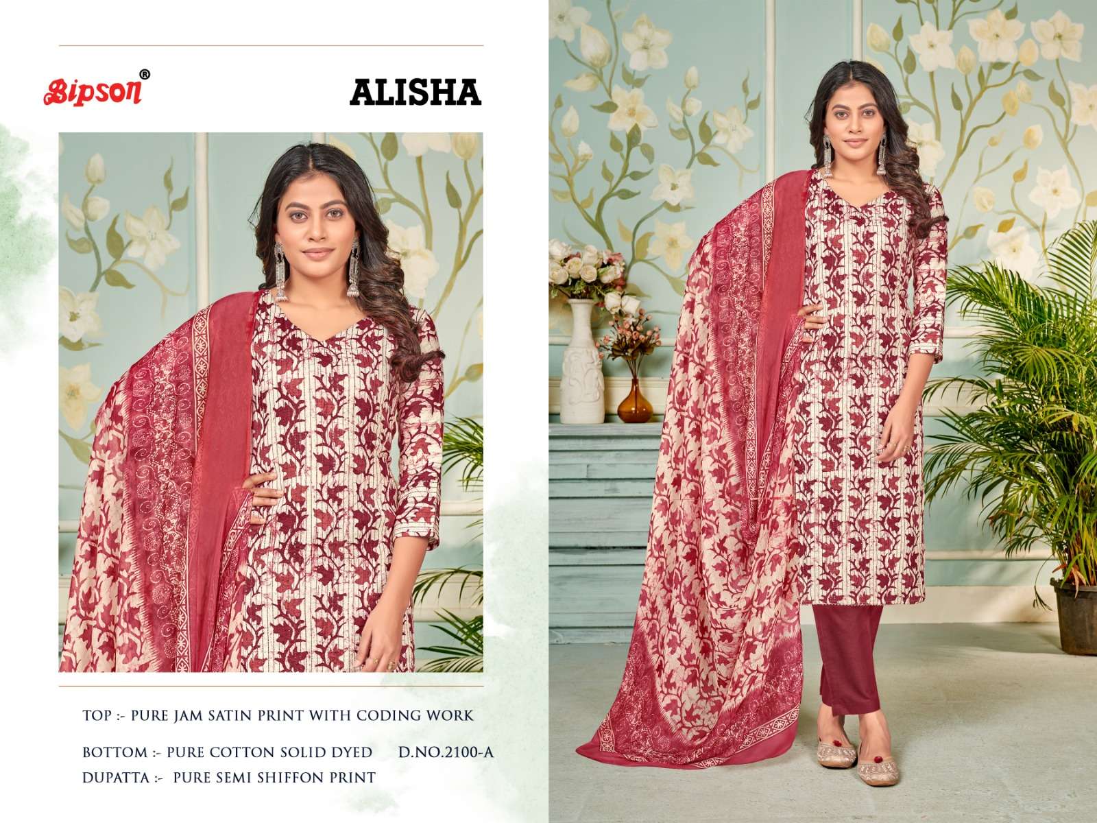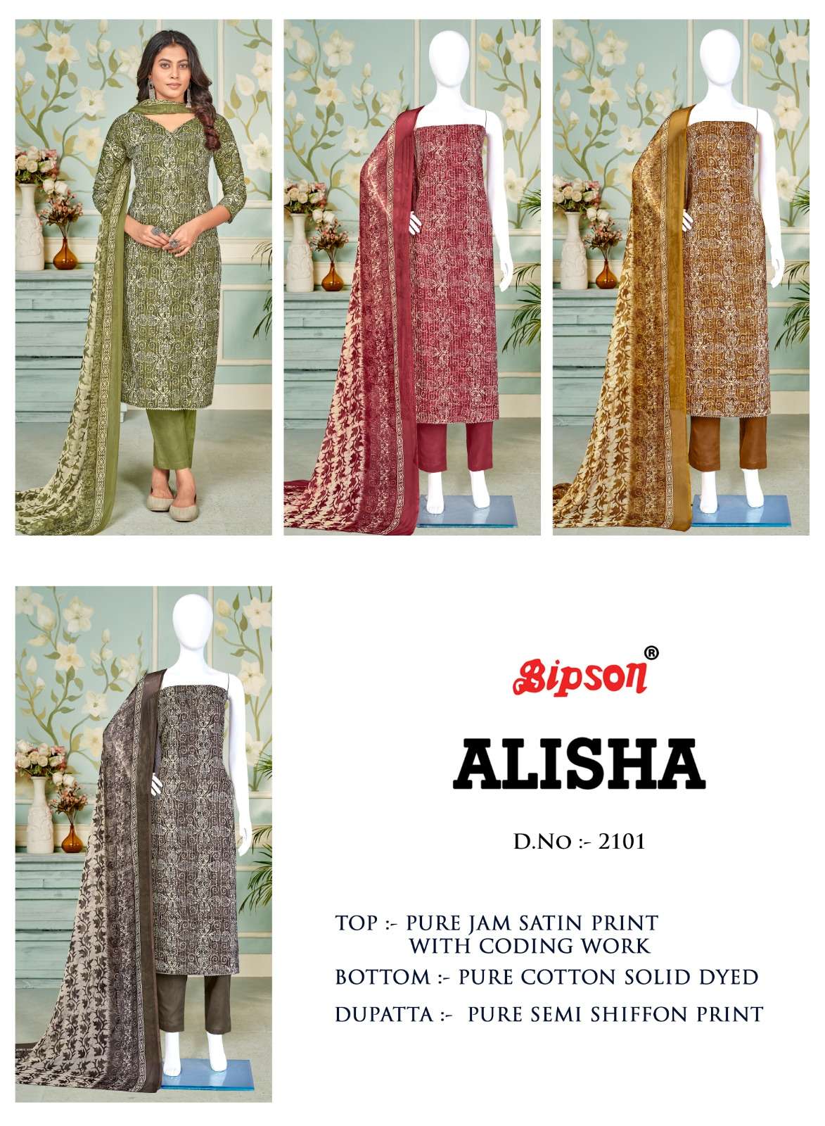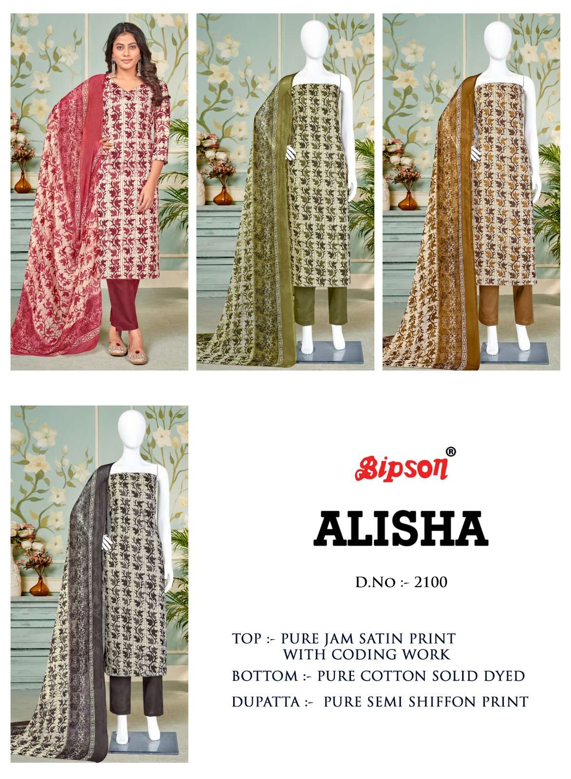 bipson alisha 2100-2101 fancy amazing print coding work ladies dress materials