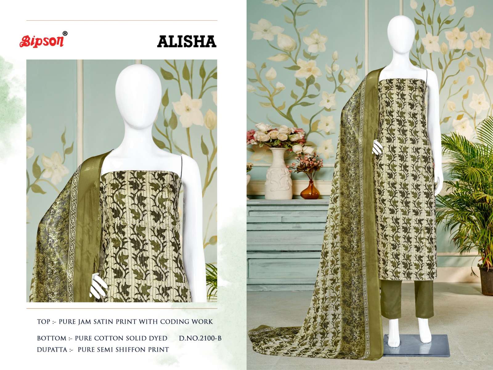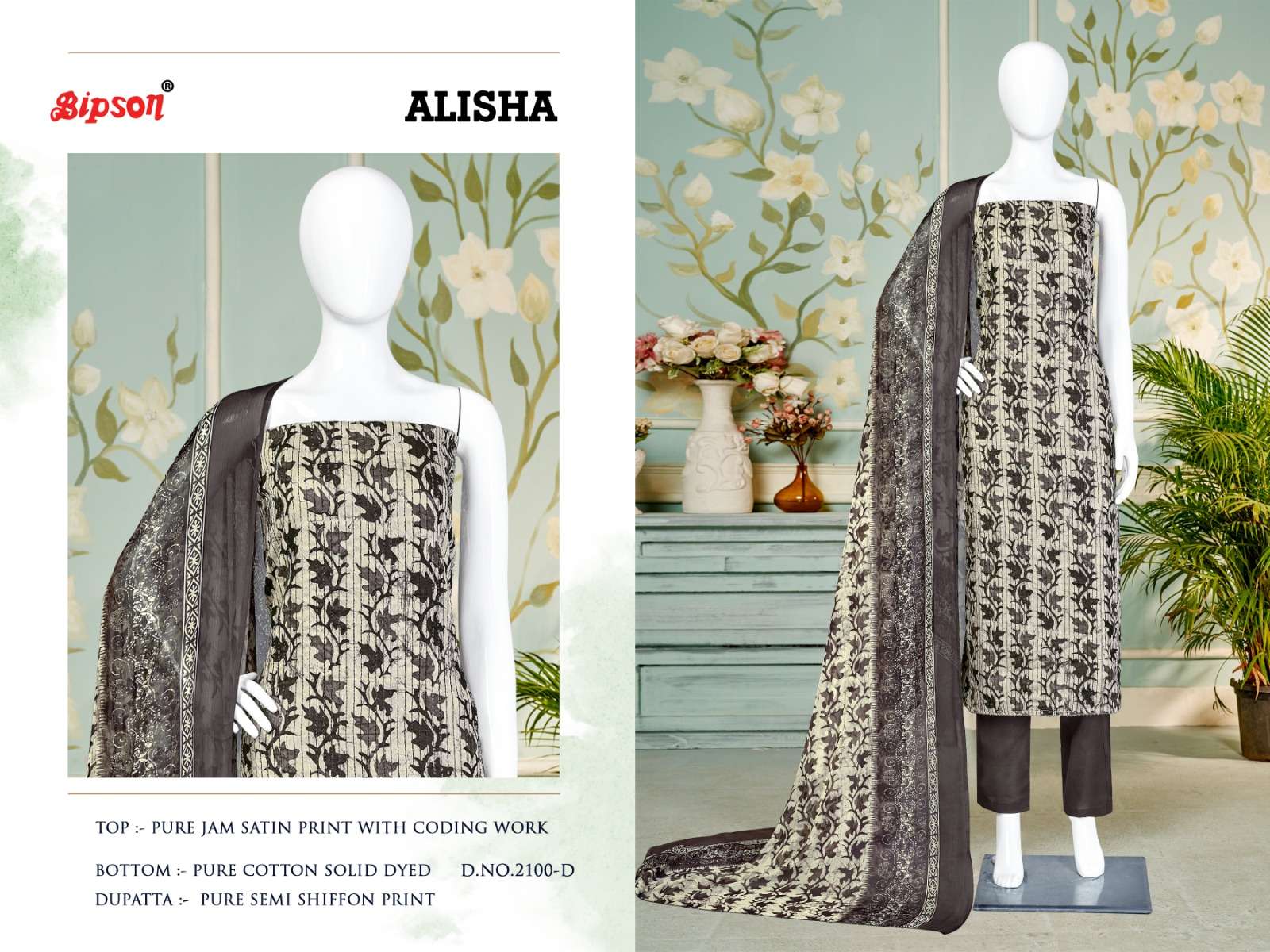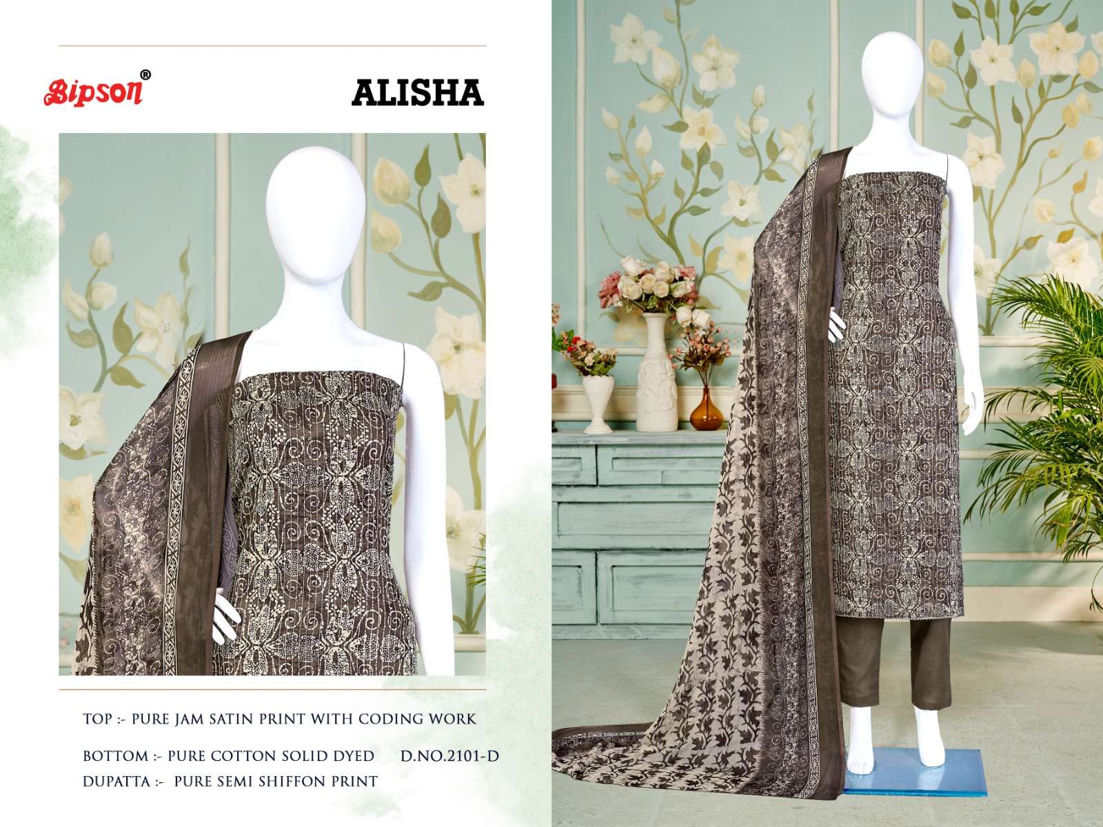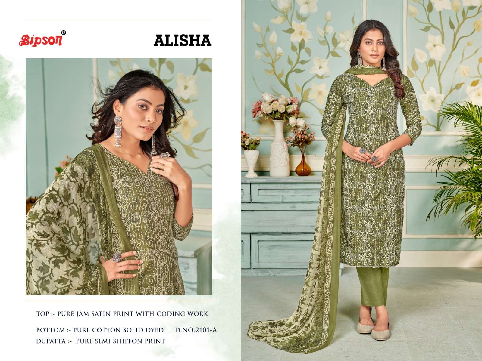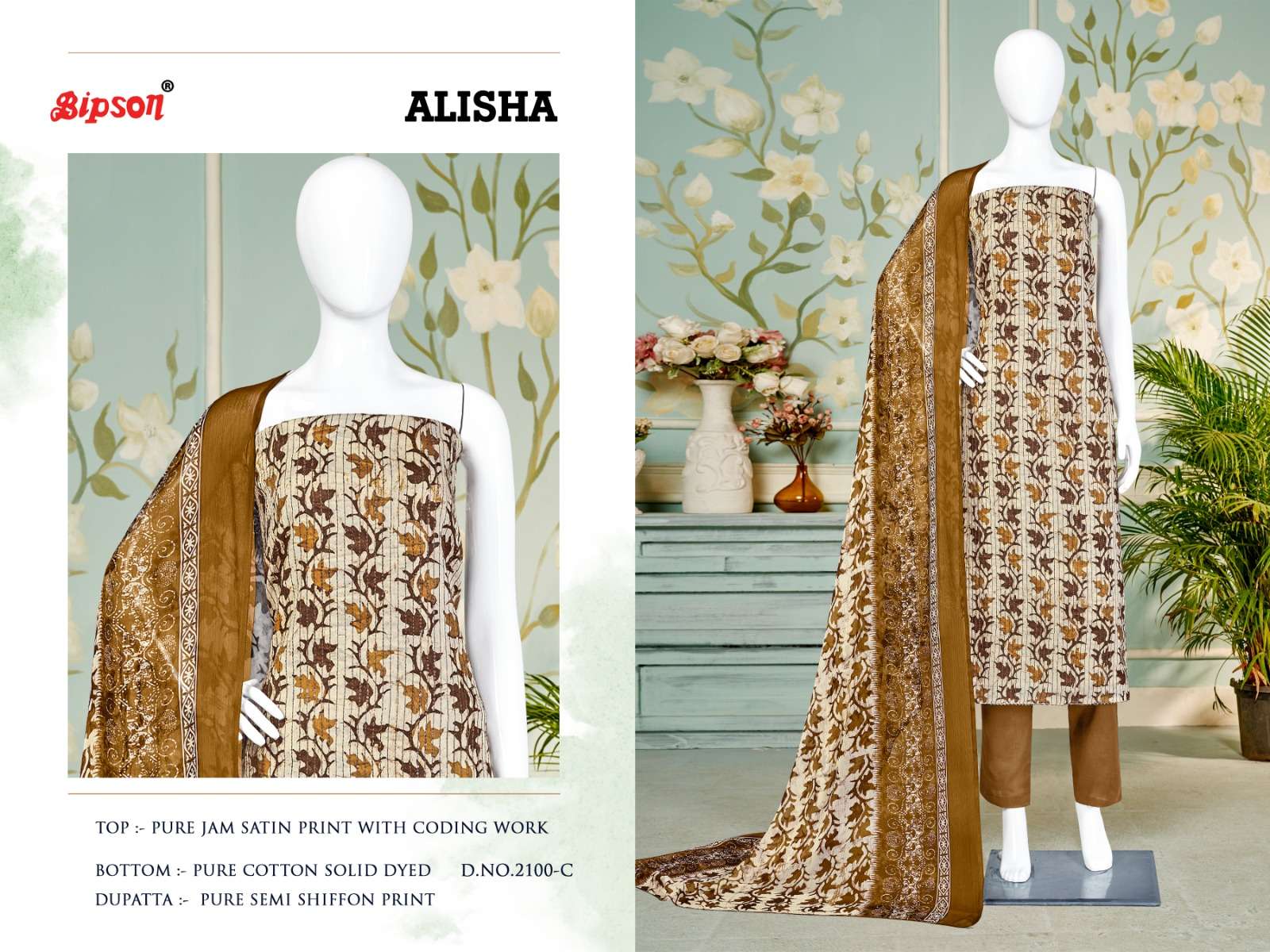 bipson alisha 2100-2101 fancy amazing print coding work ladies dress materials