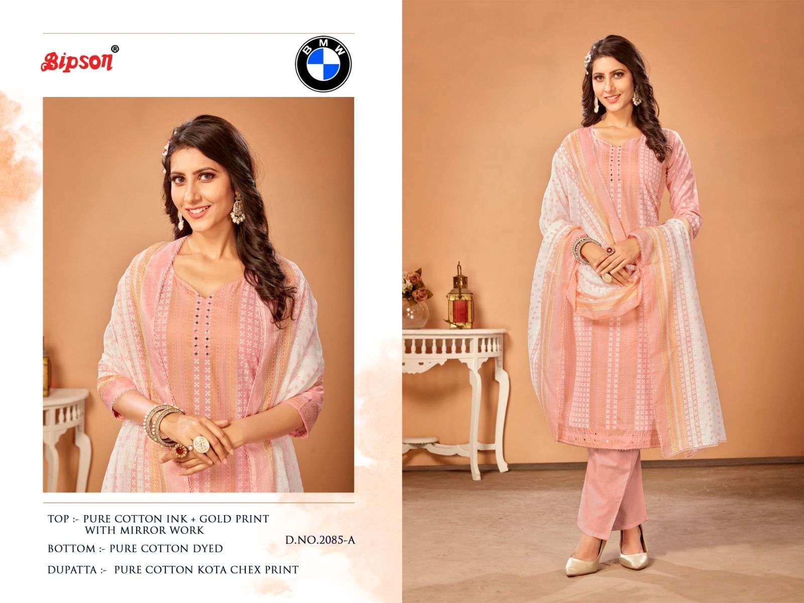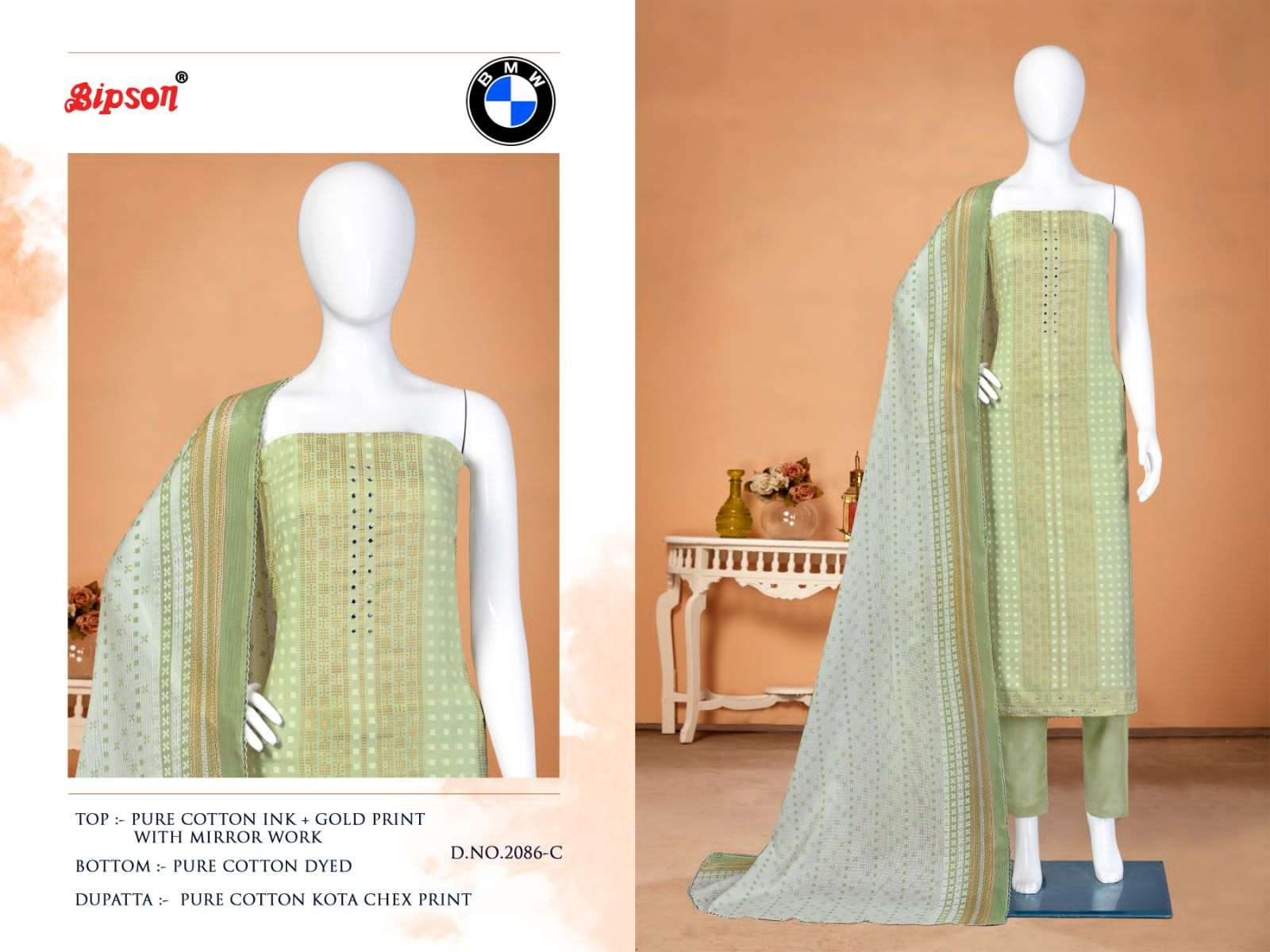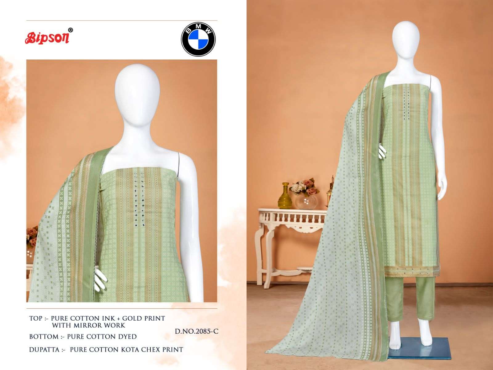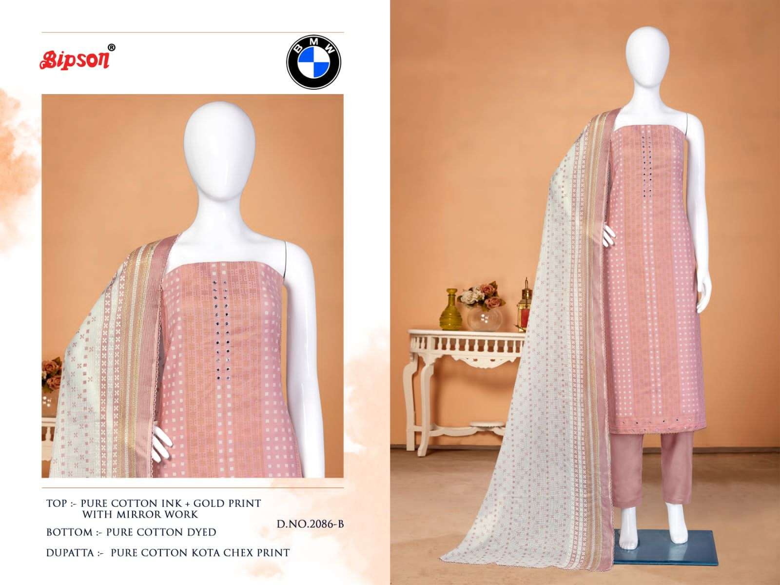bipson bmw 2085-2086 cotton ink gold print unstitched salwar kameez material