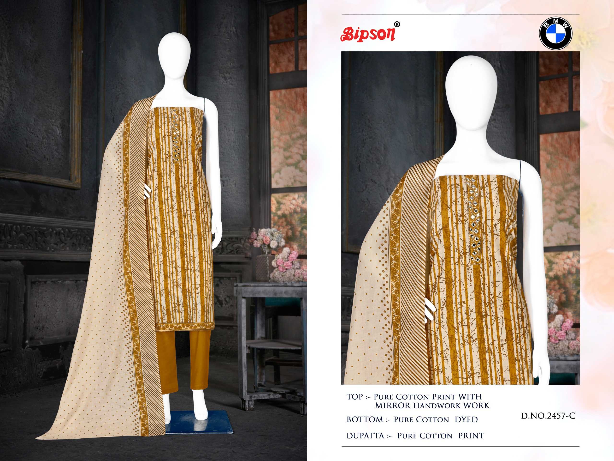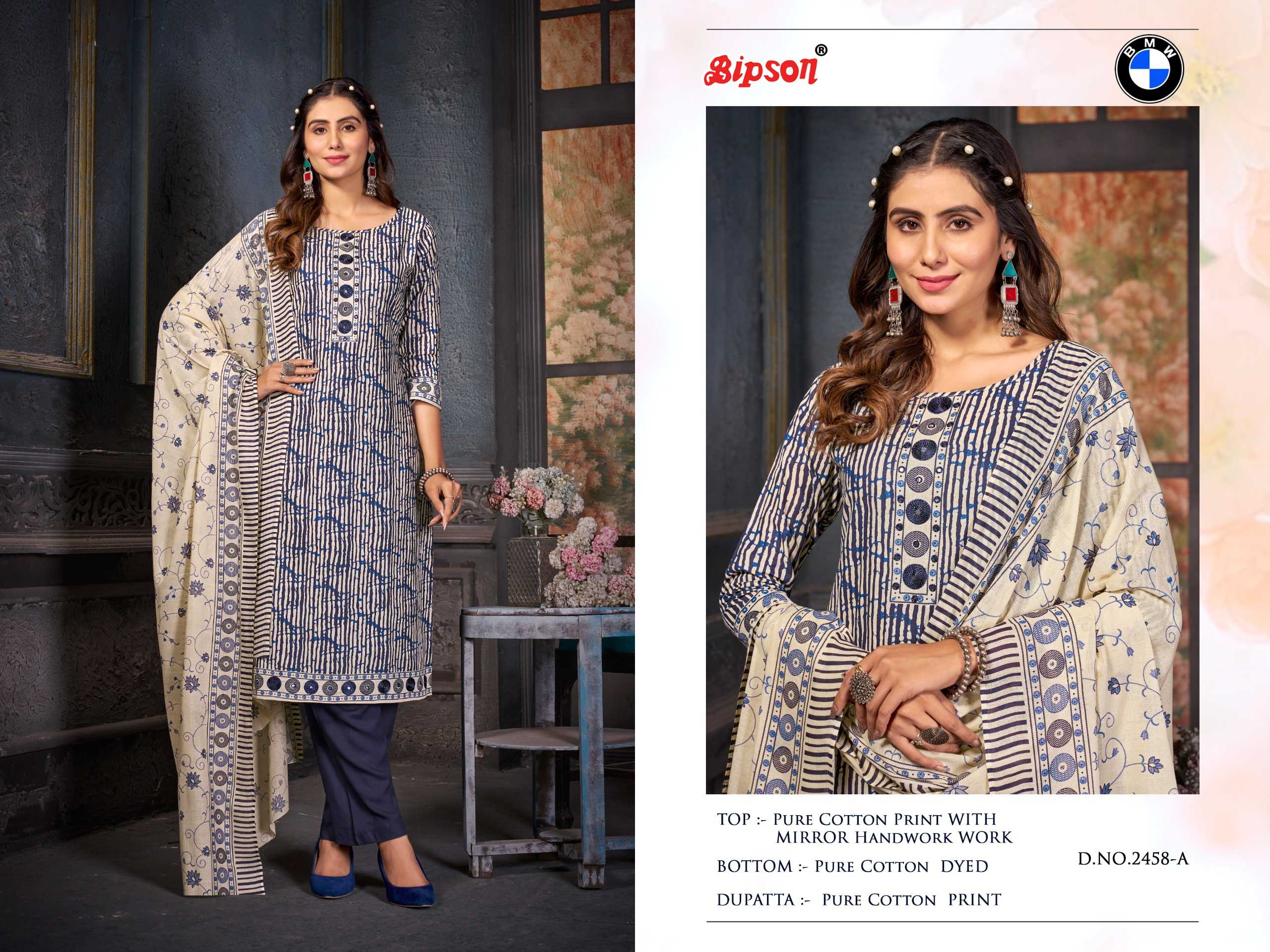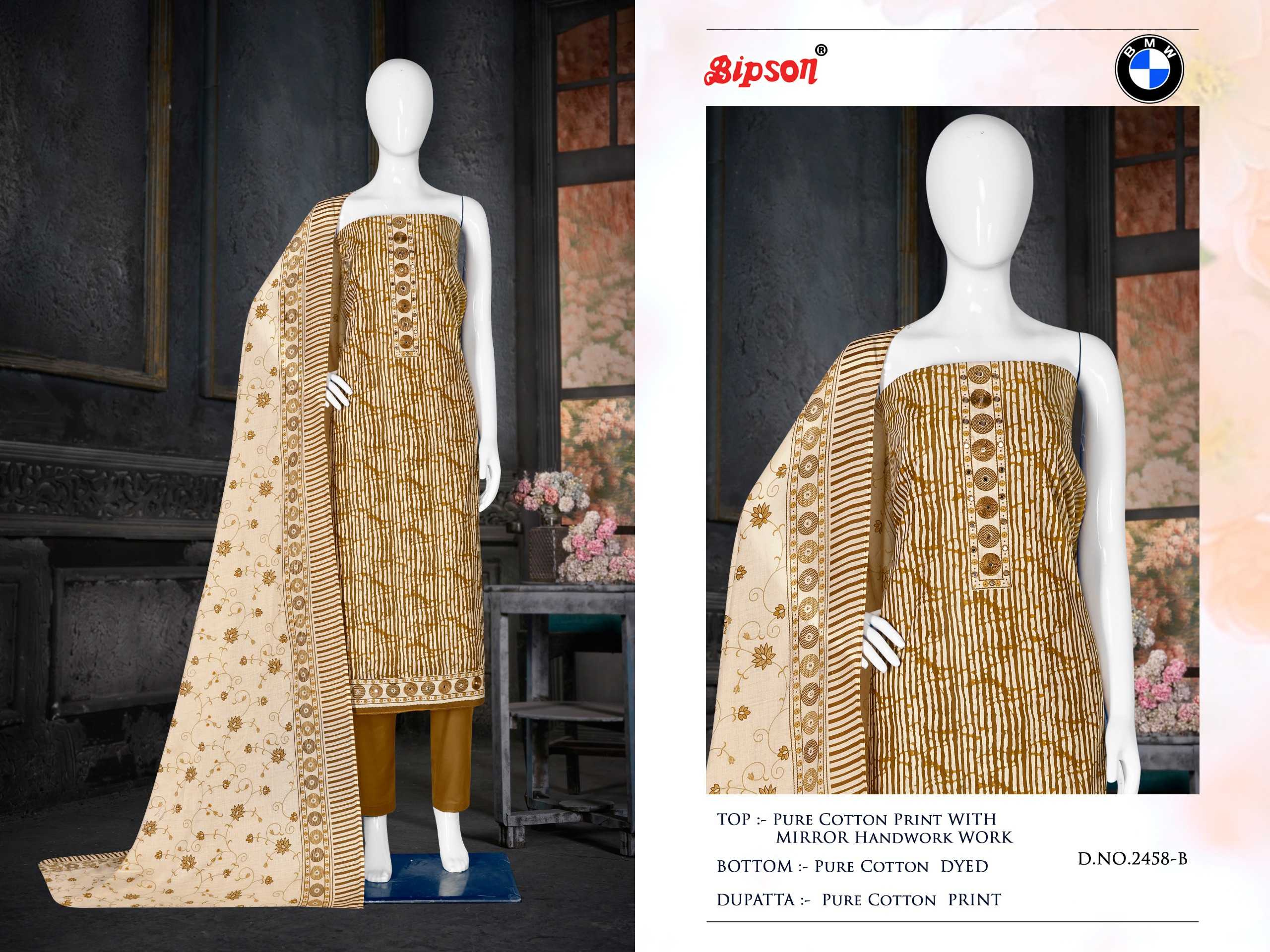 bipson bmw 2457-2458 fancy cotton print with mirror work dress material