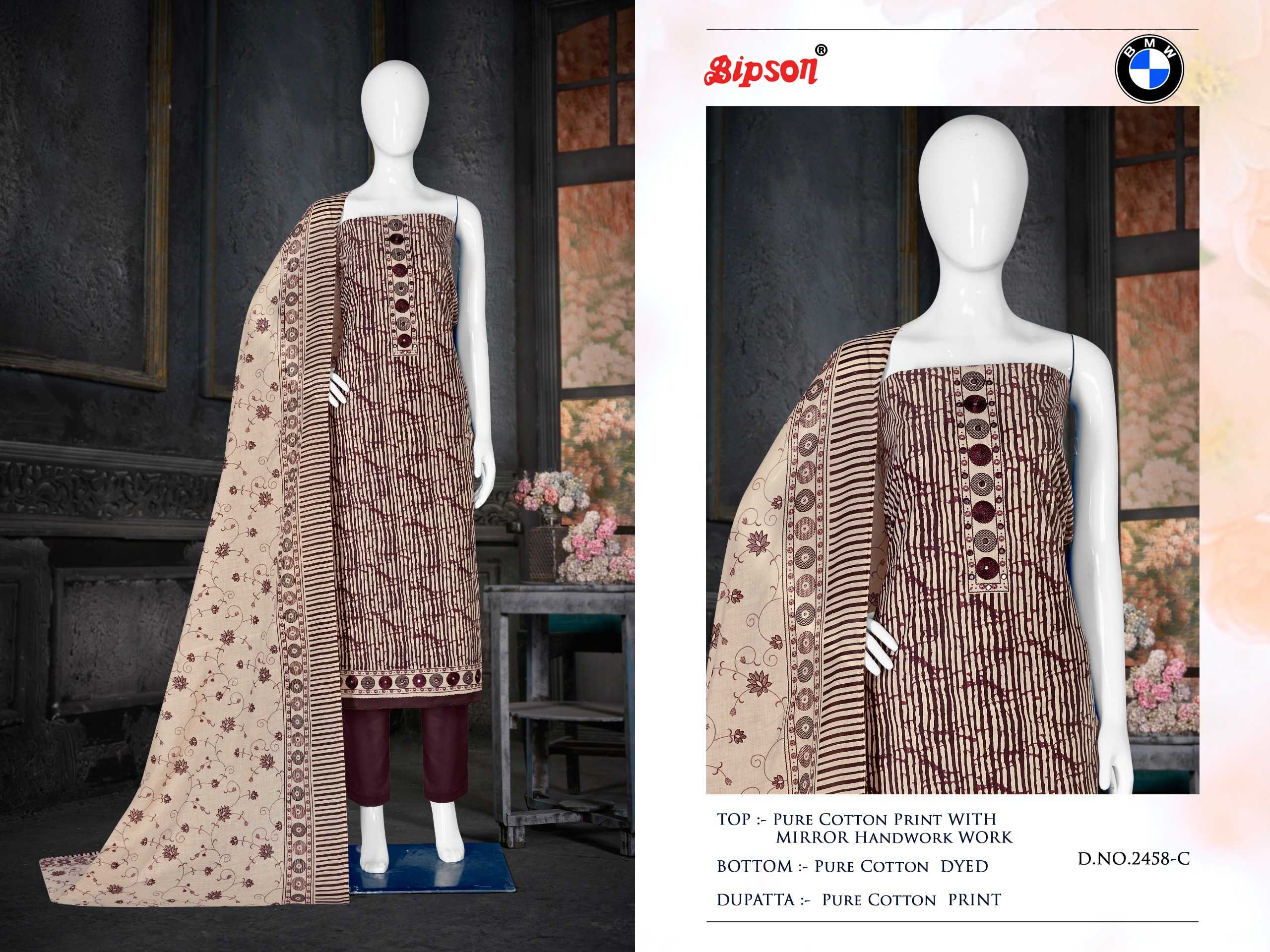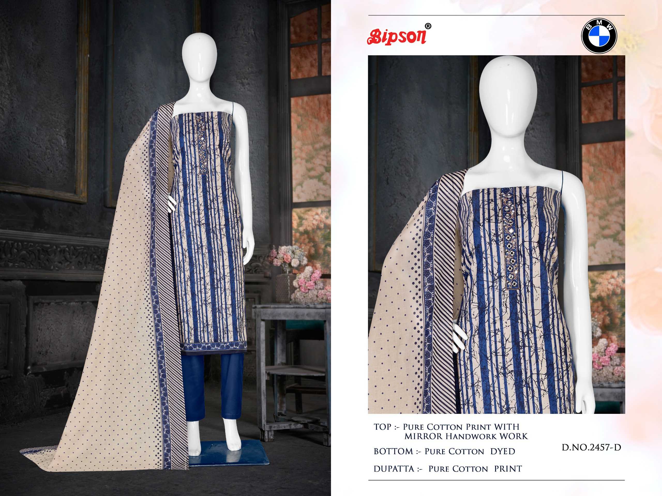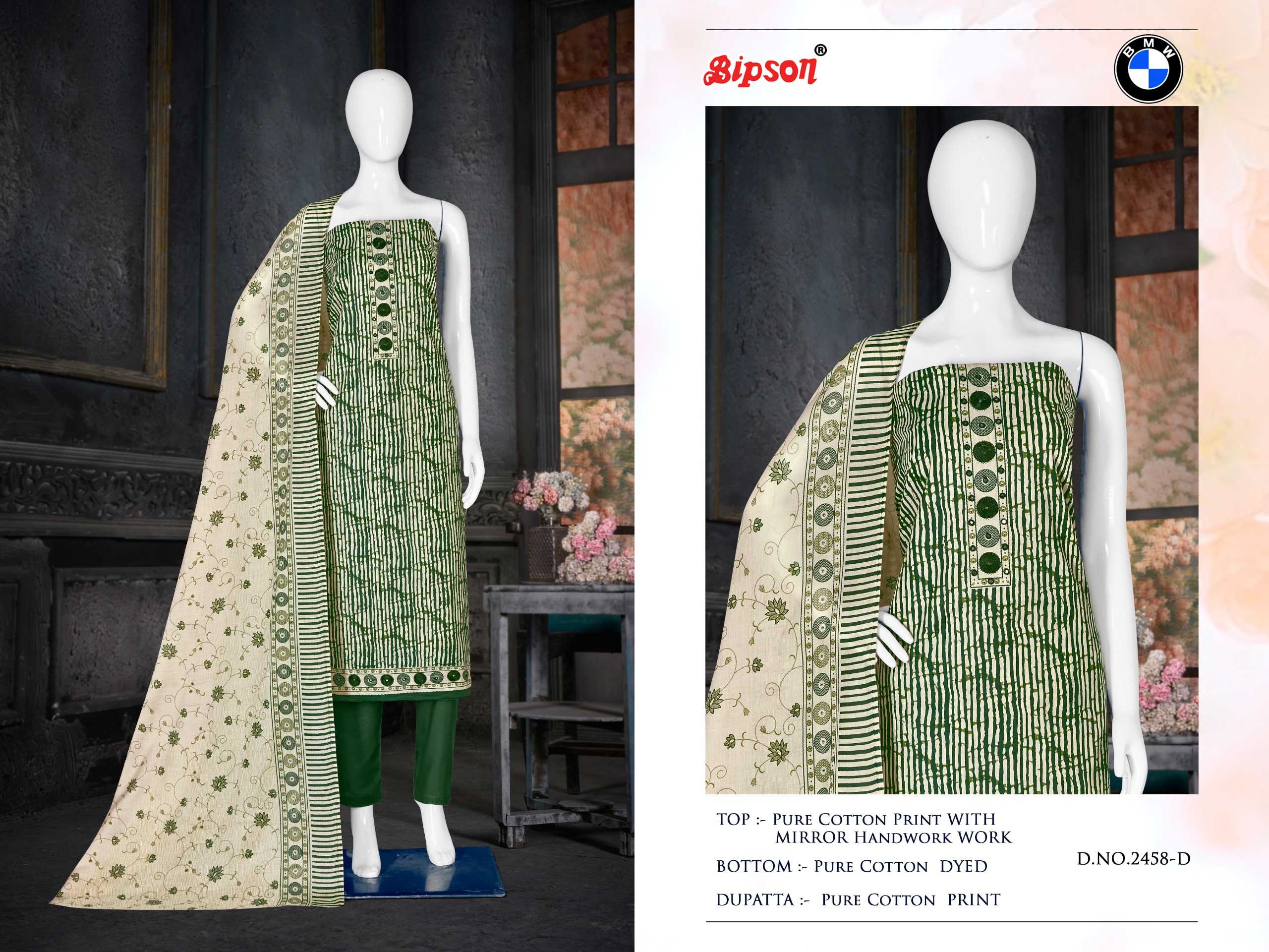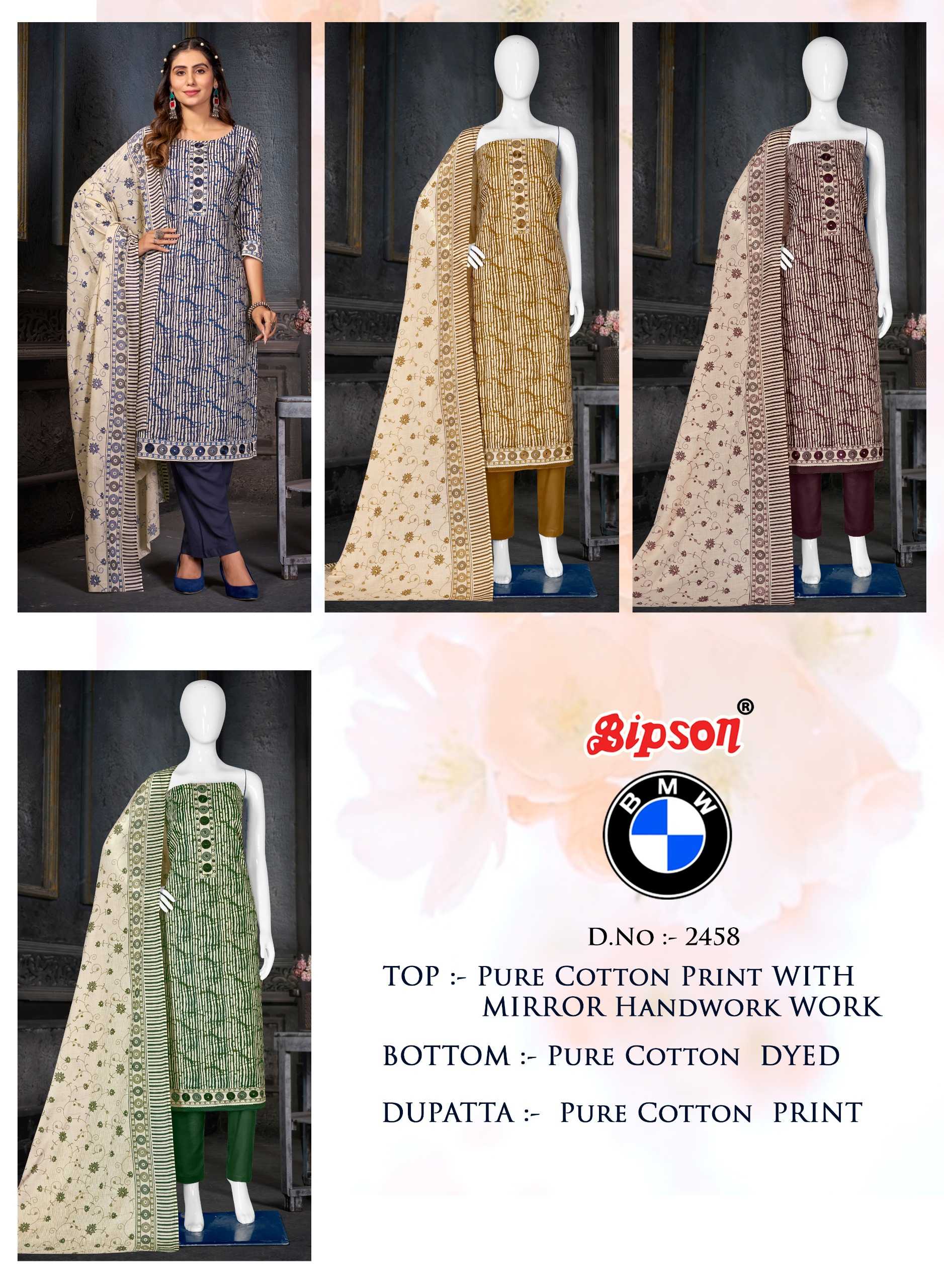 bipson bmw 2457-2458 fancy cotton print with mirror work dress material