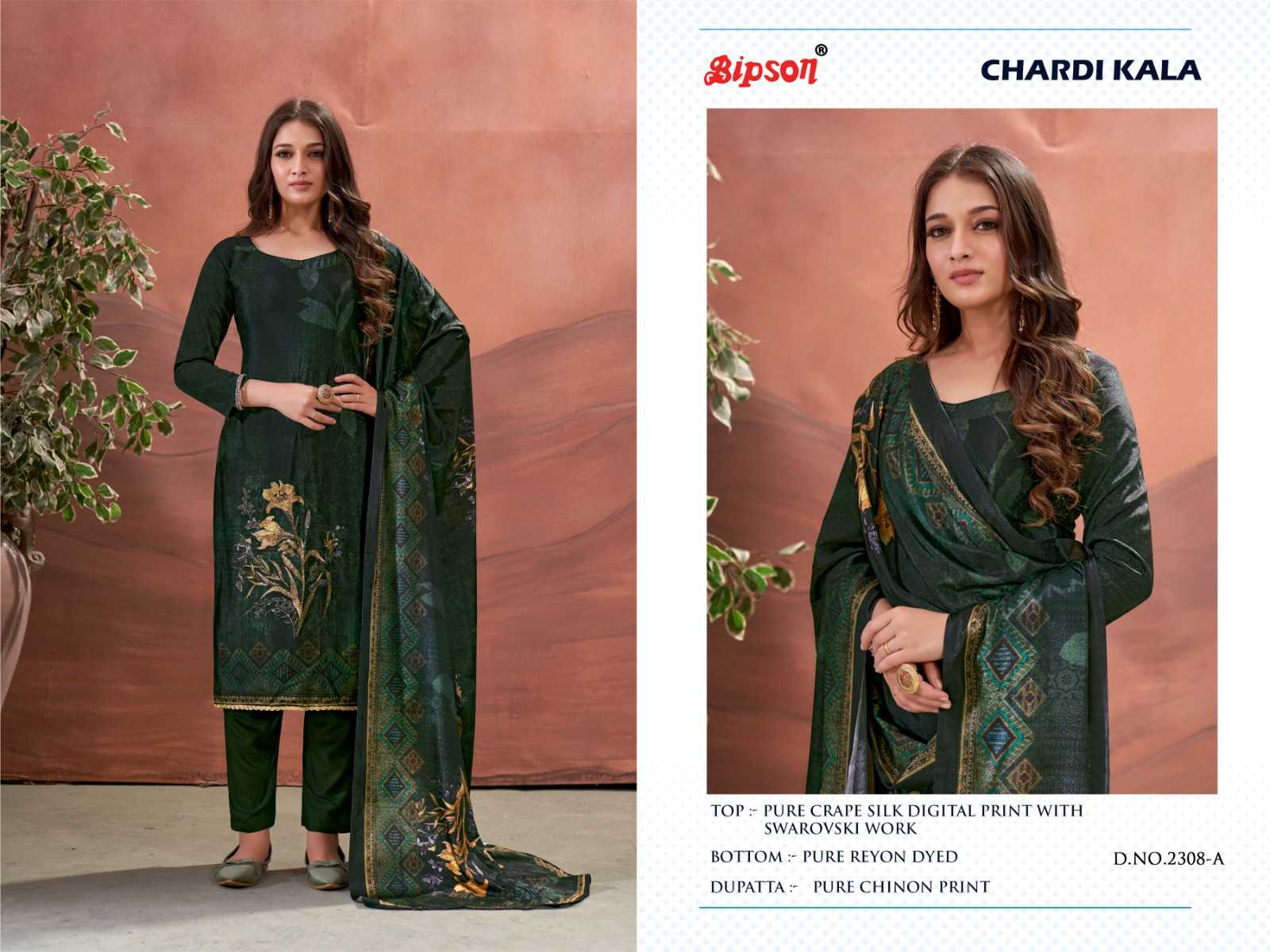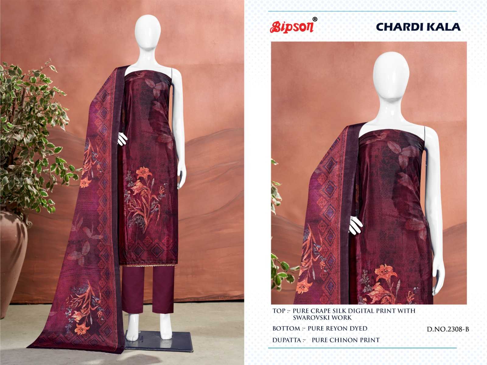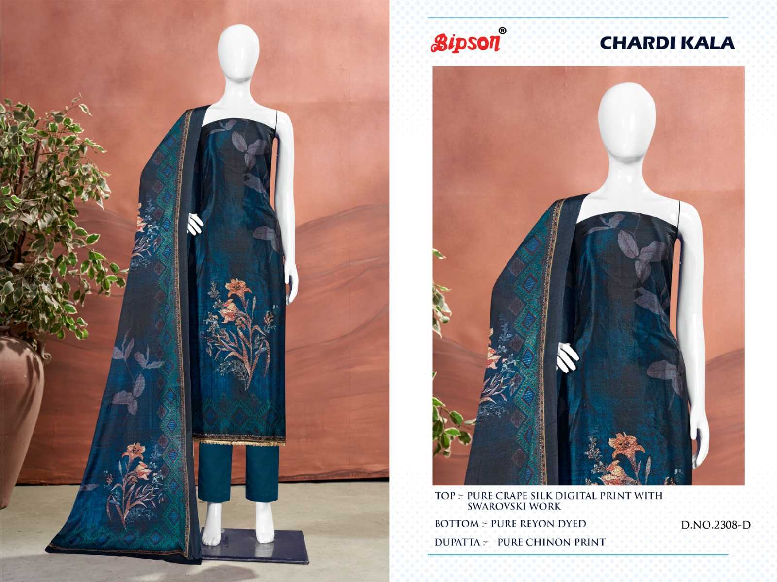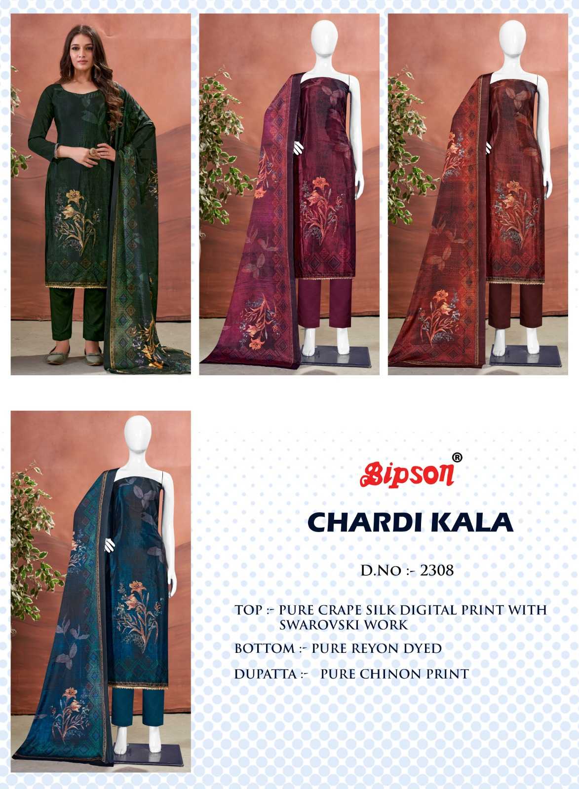 BIPSON PRINTS PVT LTD CHARDI KALA - 2308 TOP :- Pure CREAPE SILK Digital Print With Swarovski Work . @ 555 /- |
