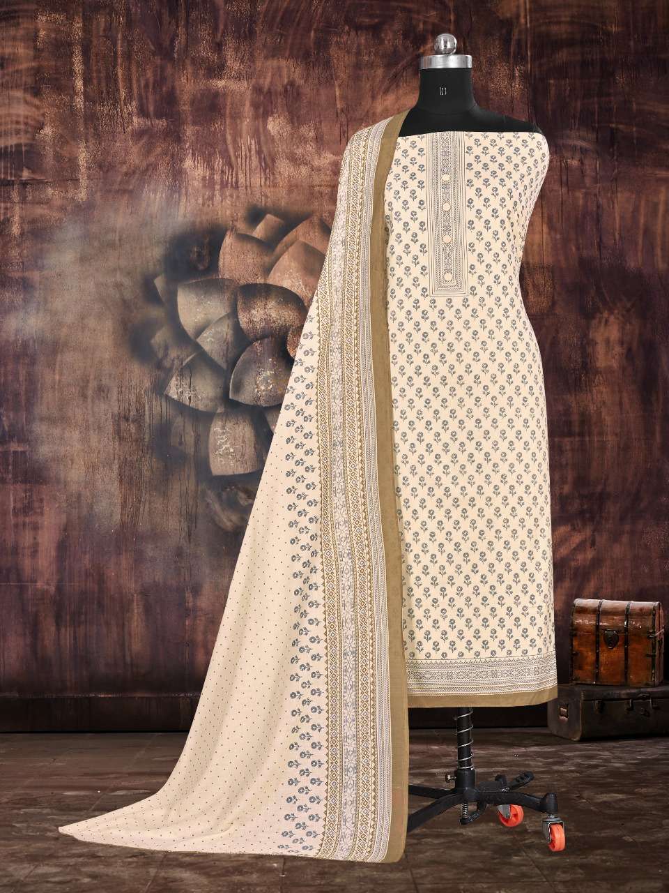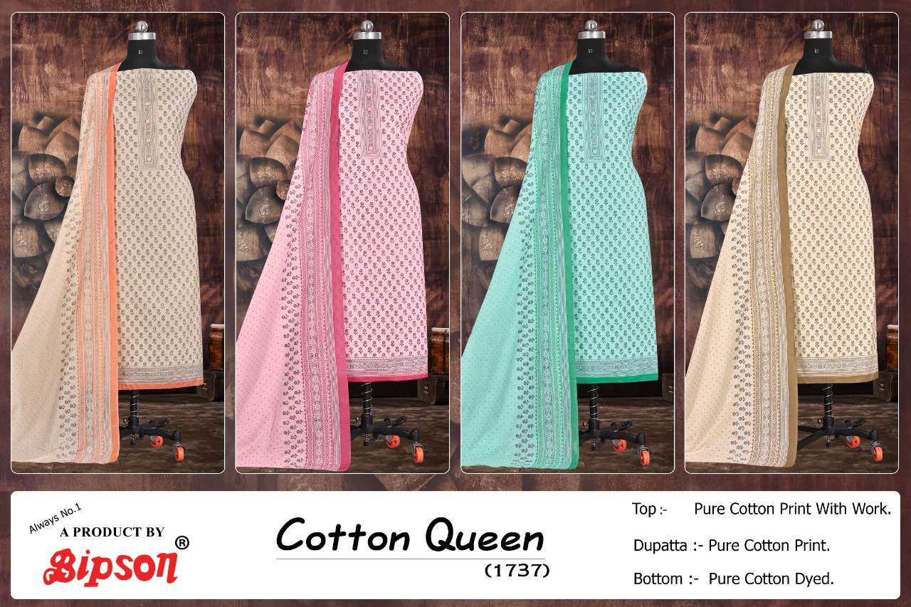bipson cotton queen 1737 printed cotton with work dress materials