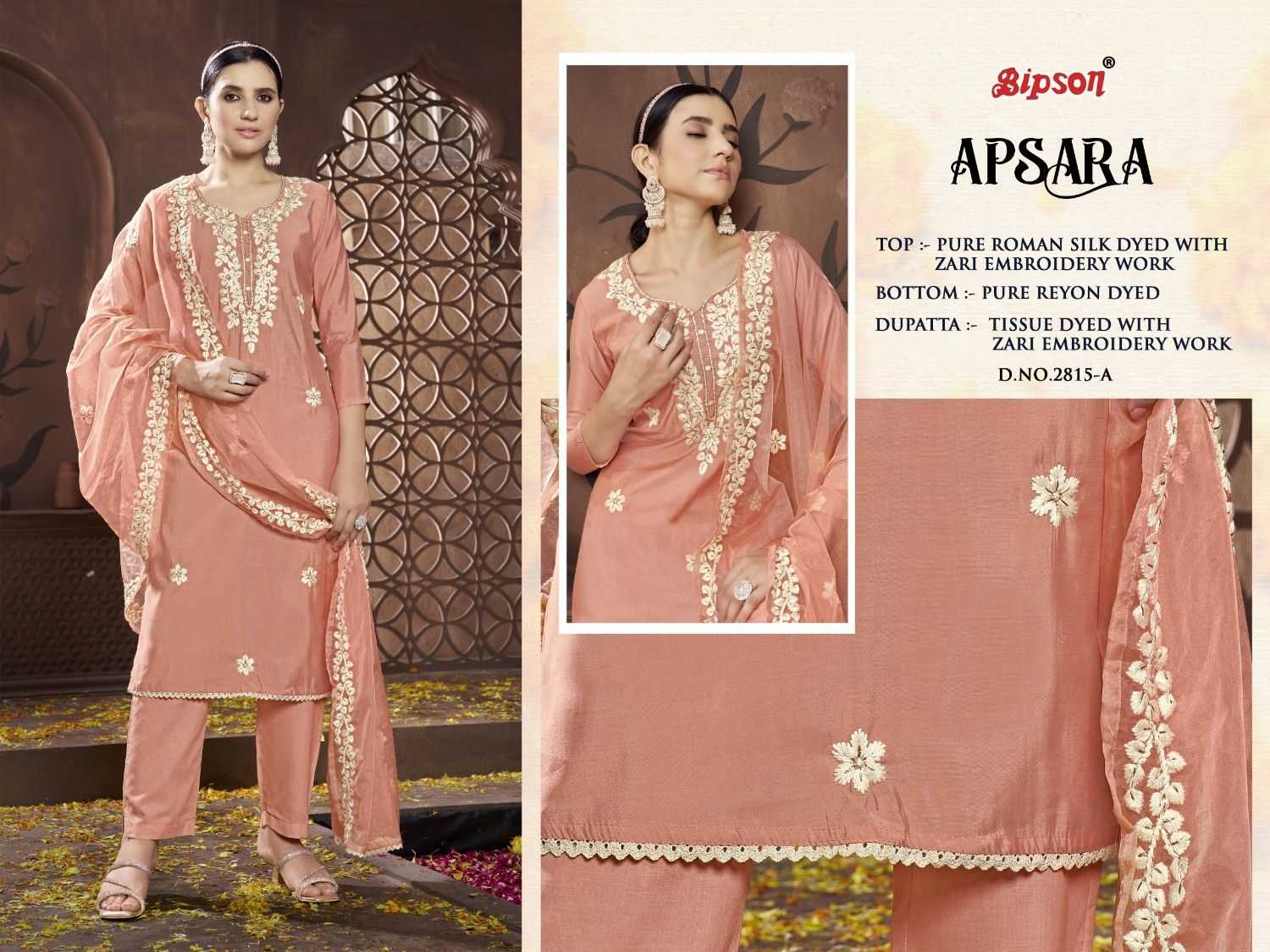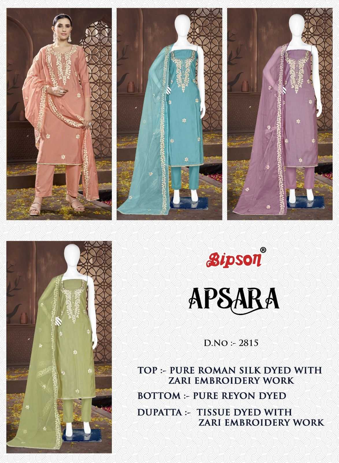 bipson fashion apsara 2815 embroidery roman silk suits