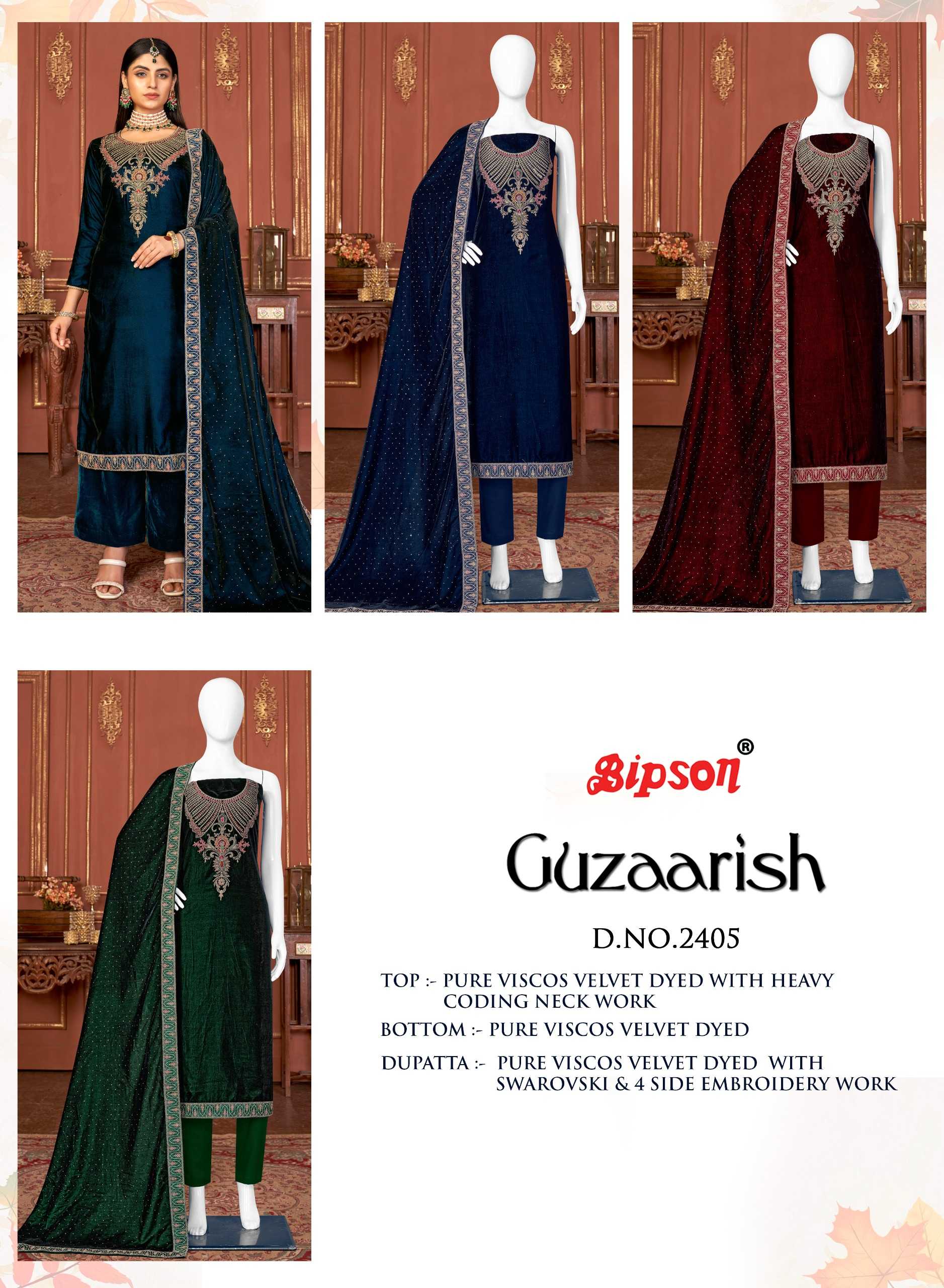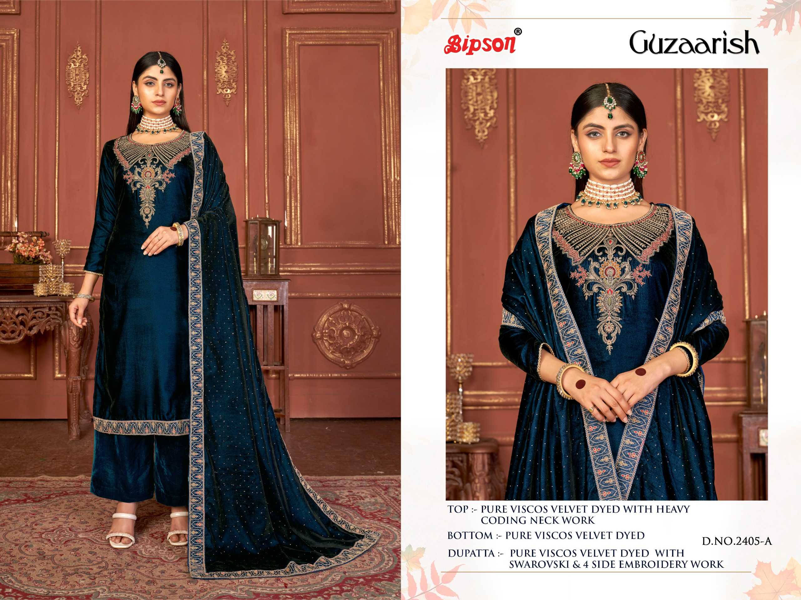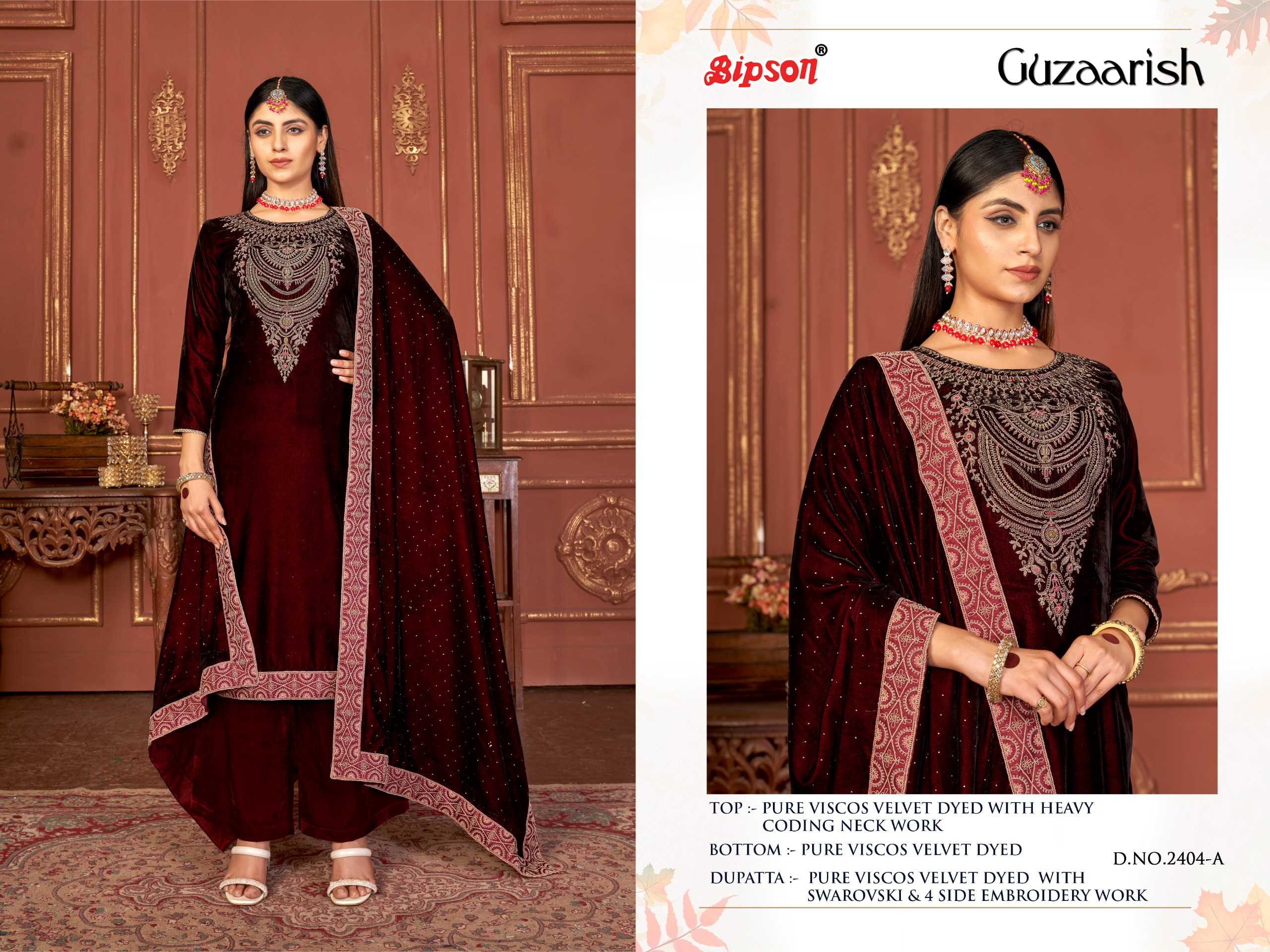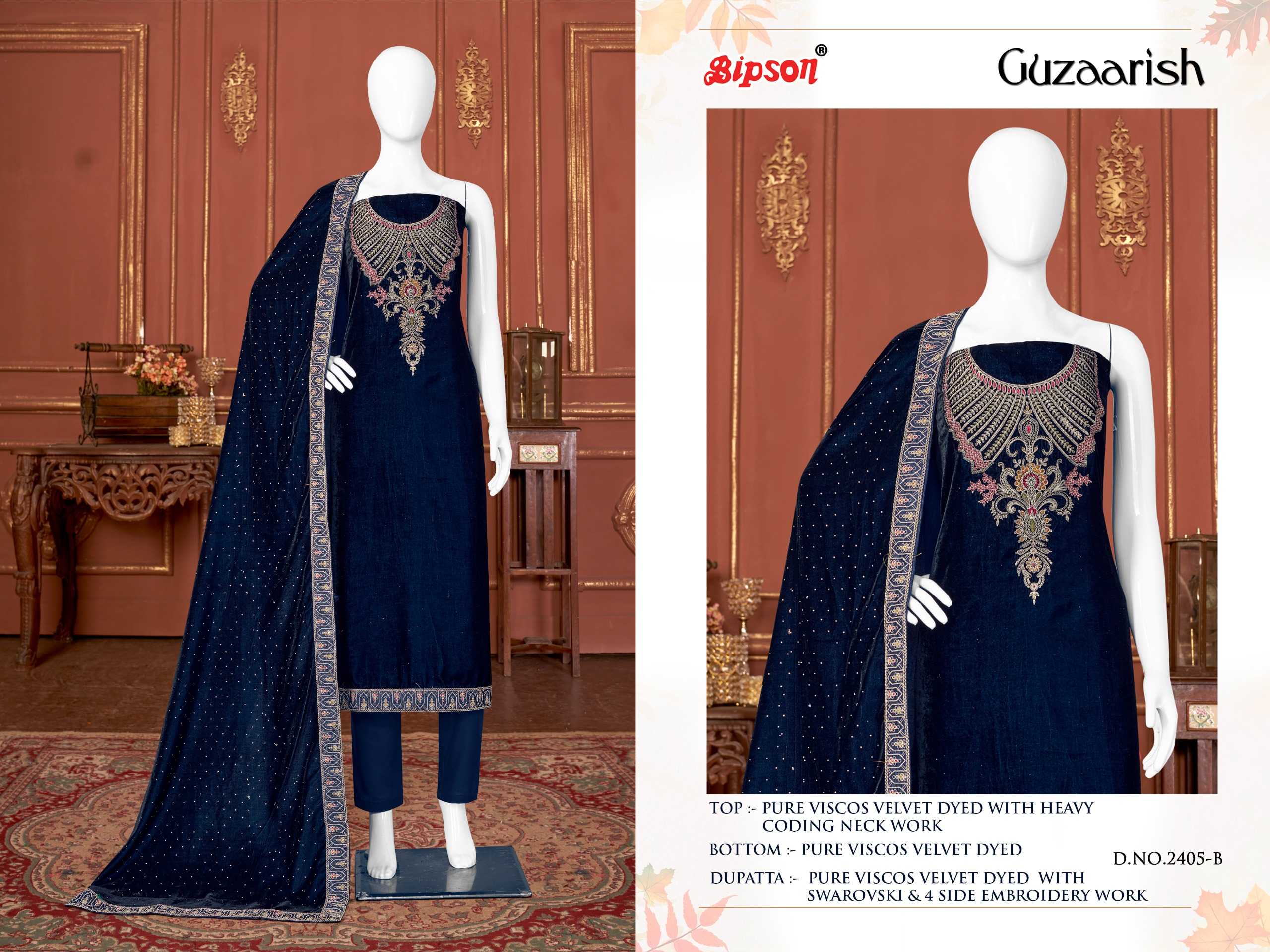 bipson guzaarish 2404-2405 winter wear designer velvet ladies suits