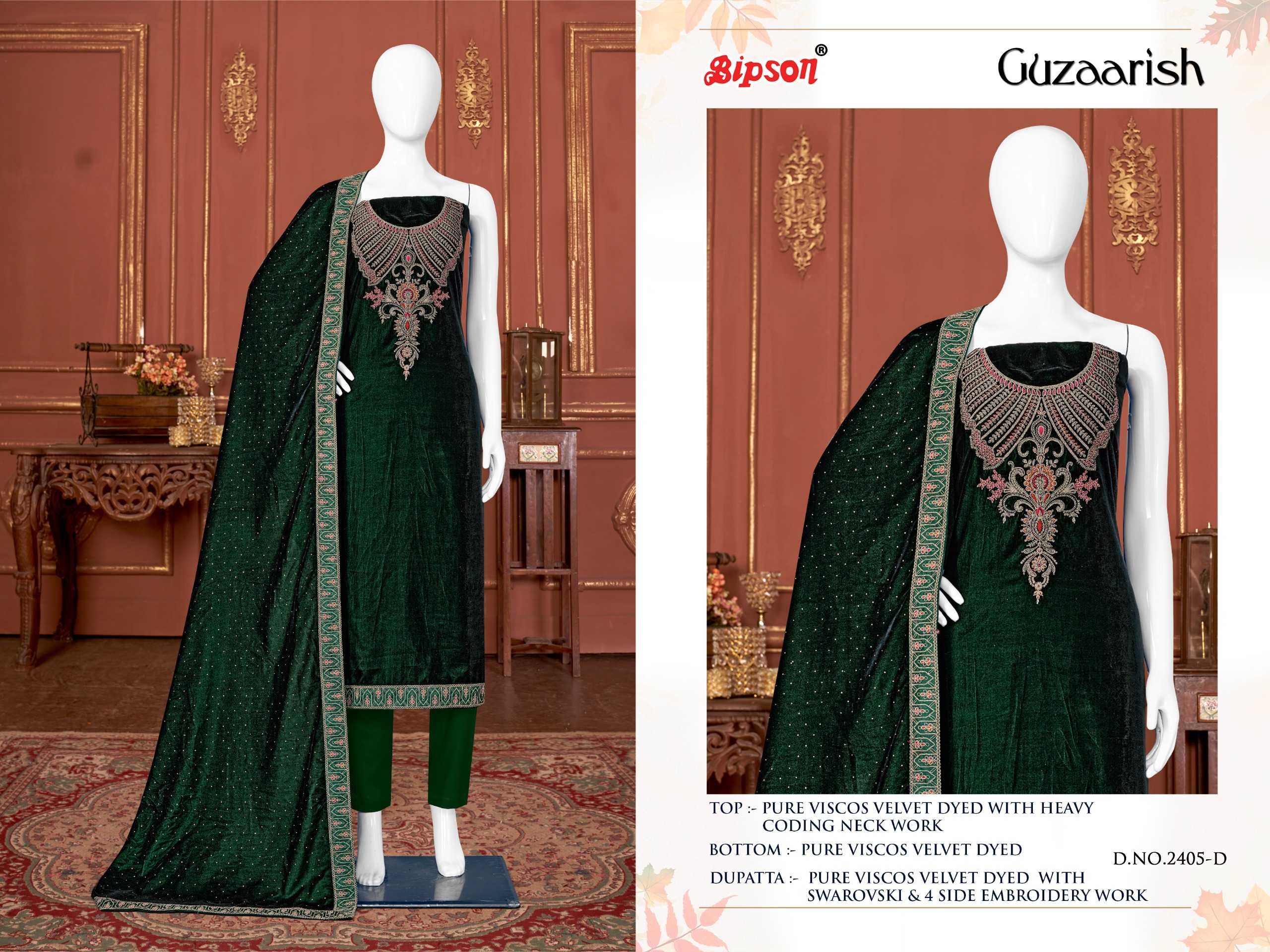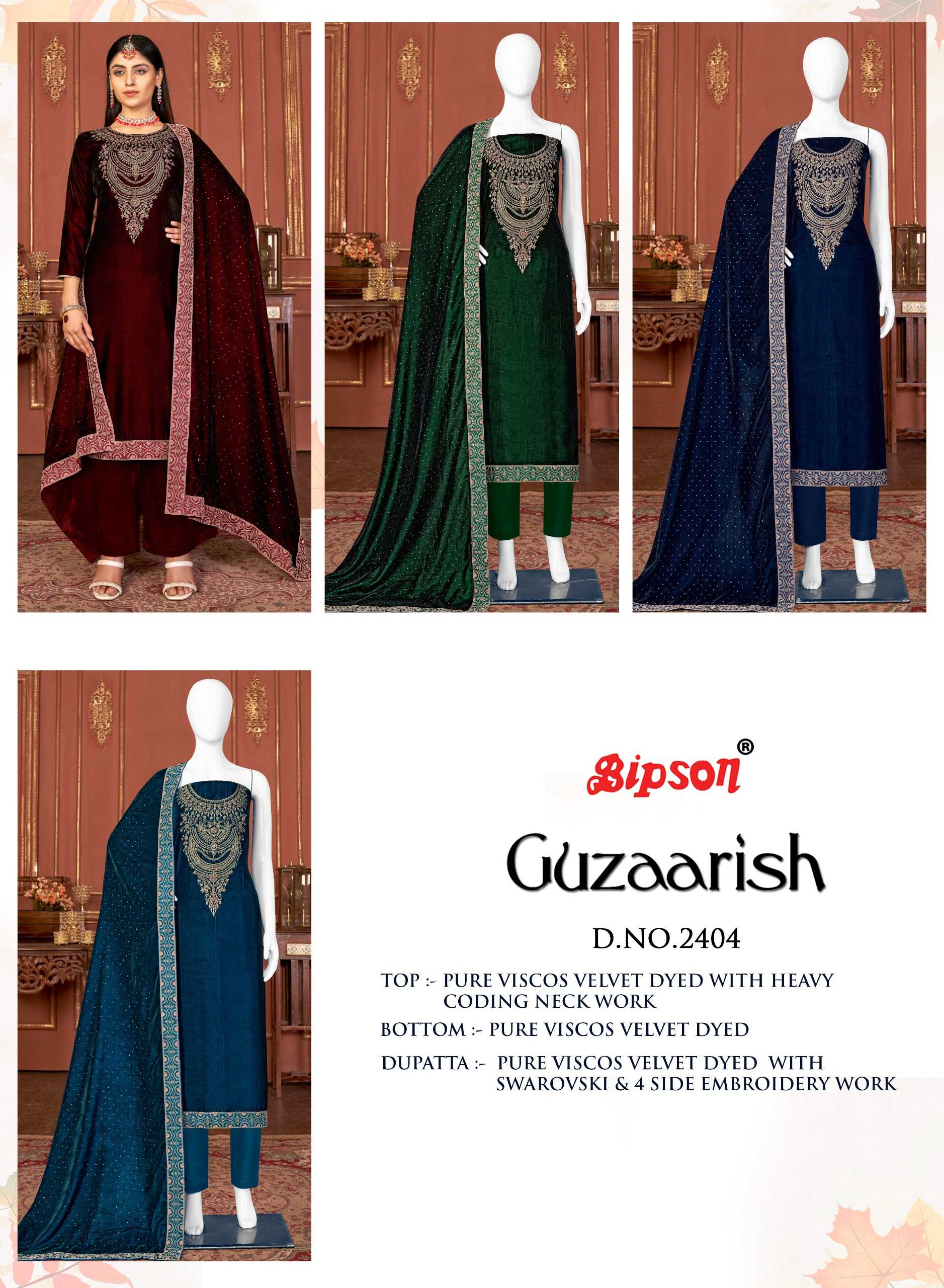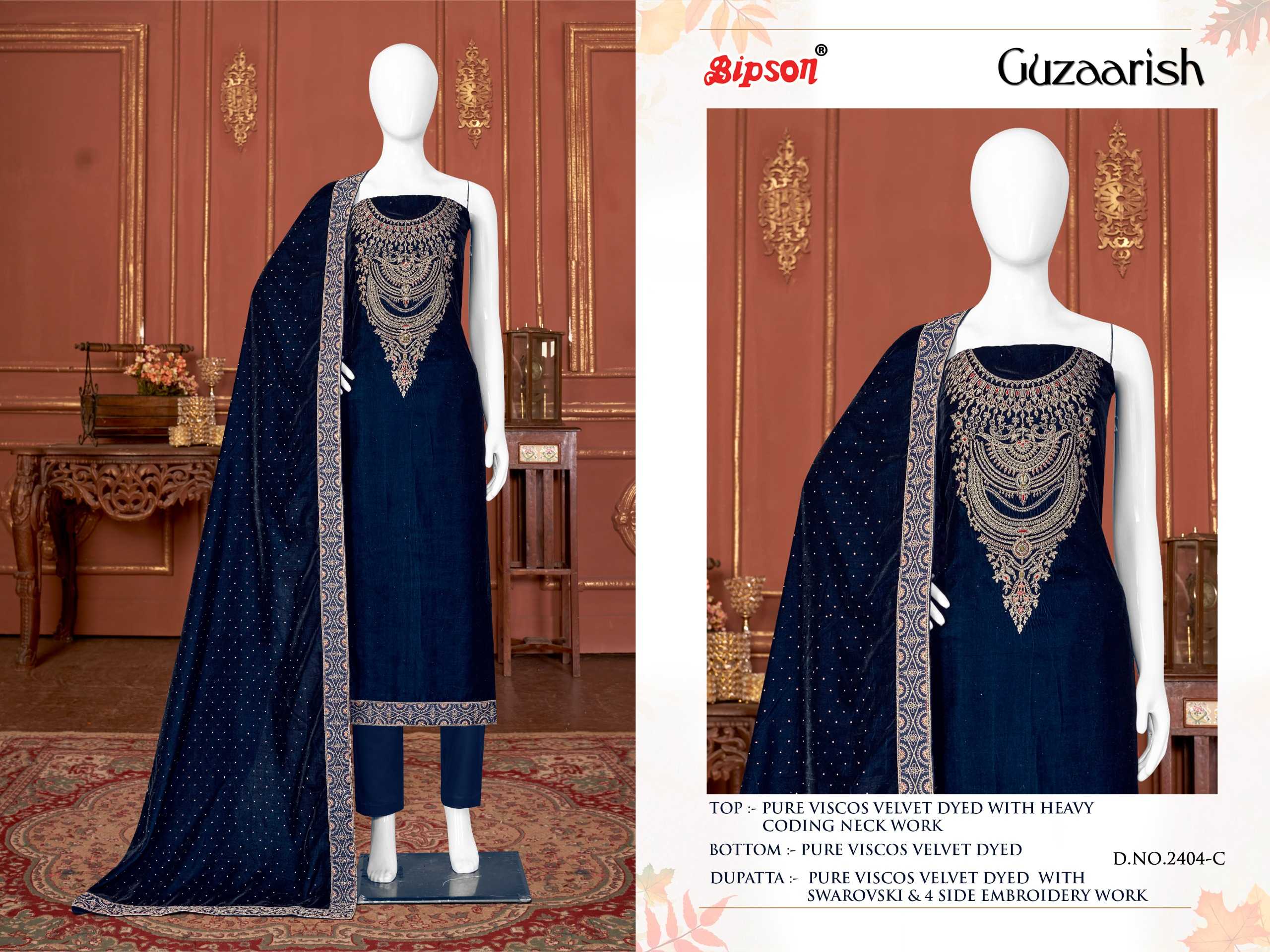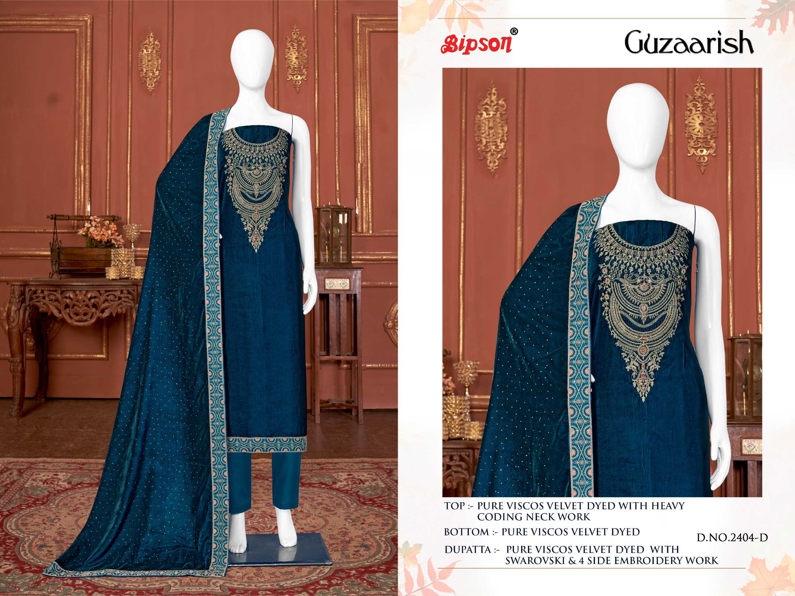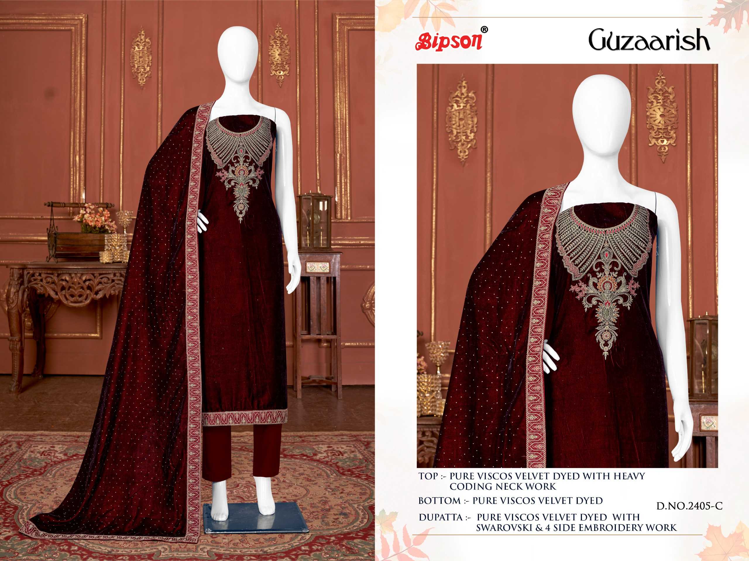 bipson guzaarish 2404-2405 winter wear designer velvet ladies suits