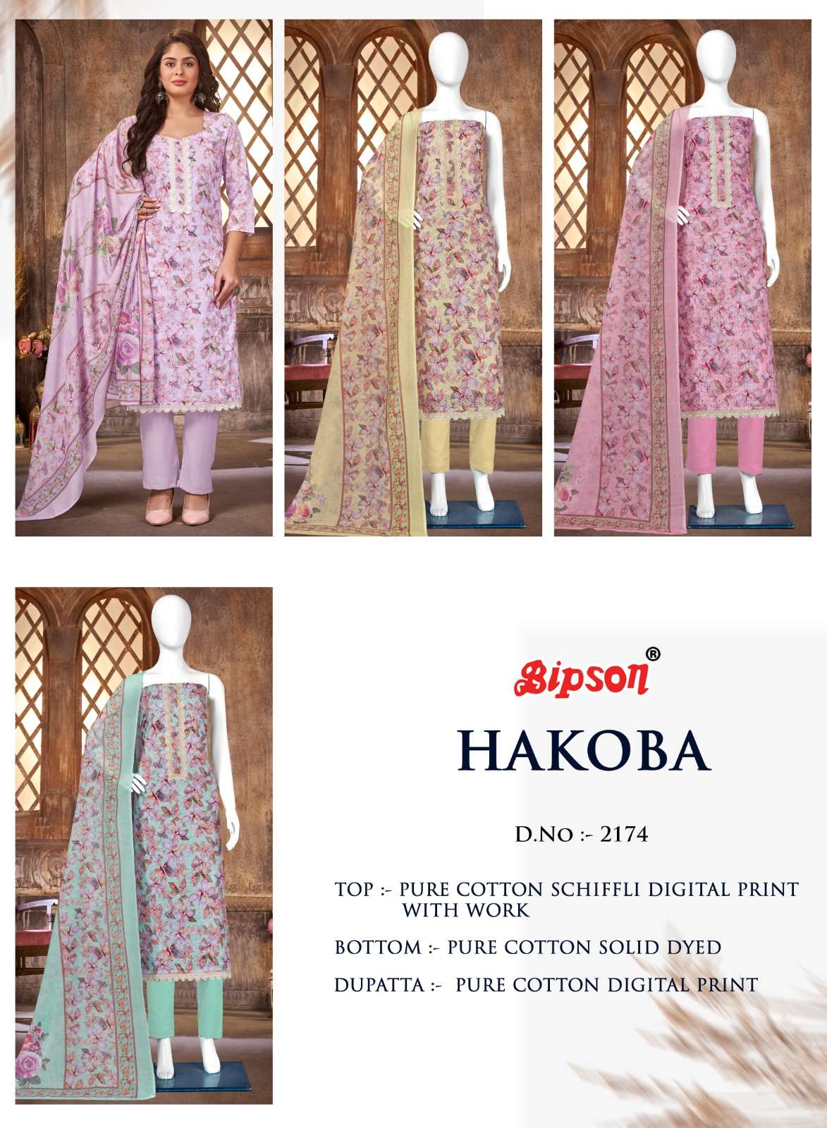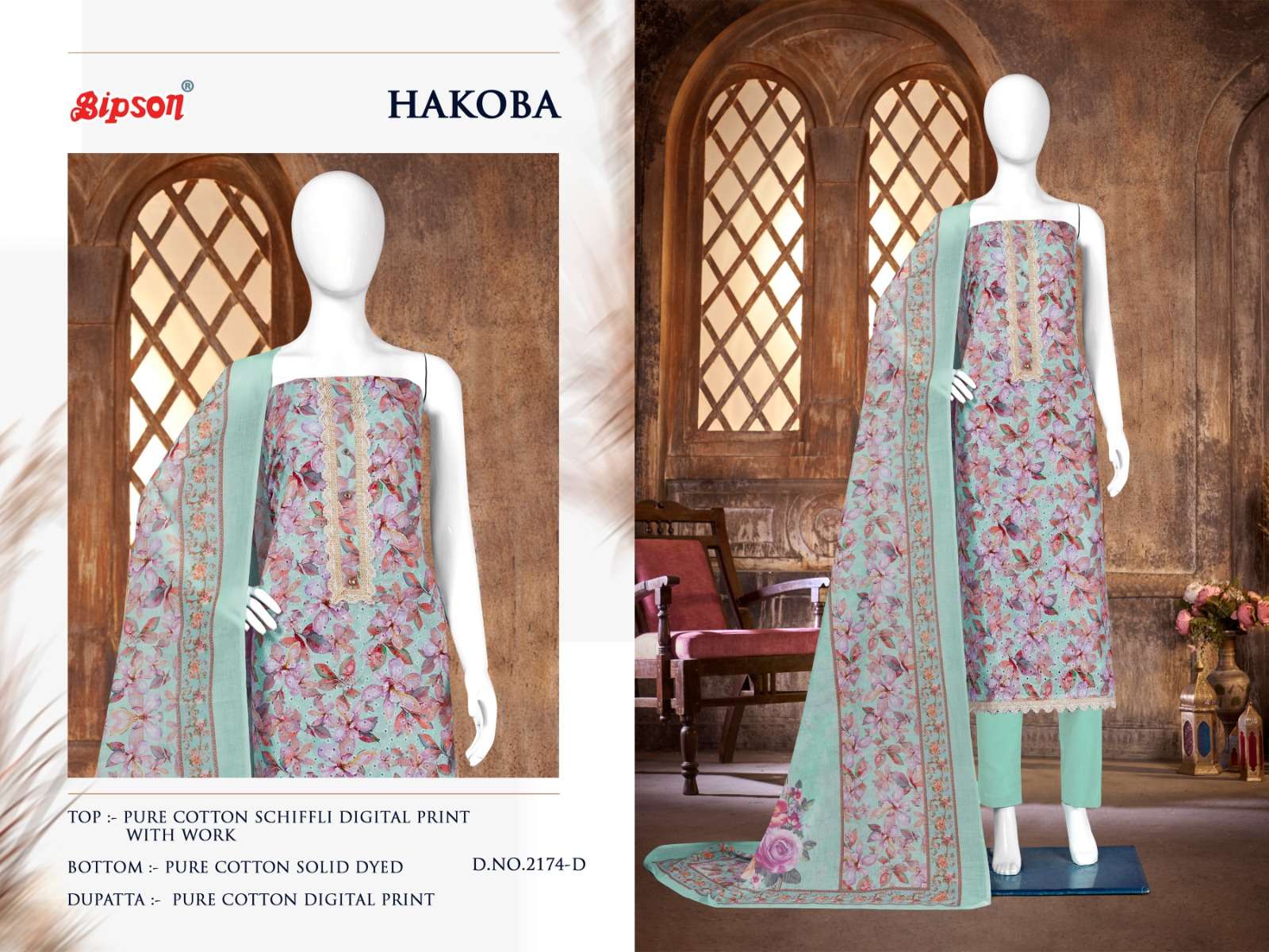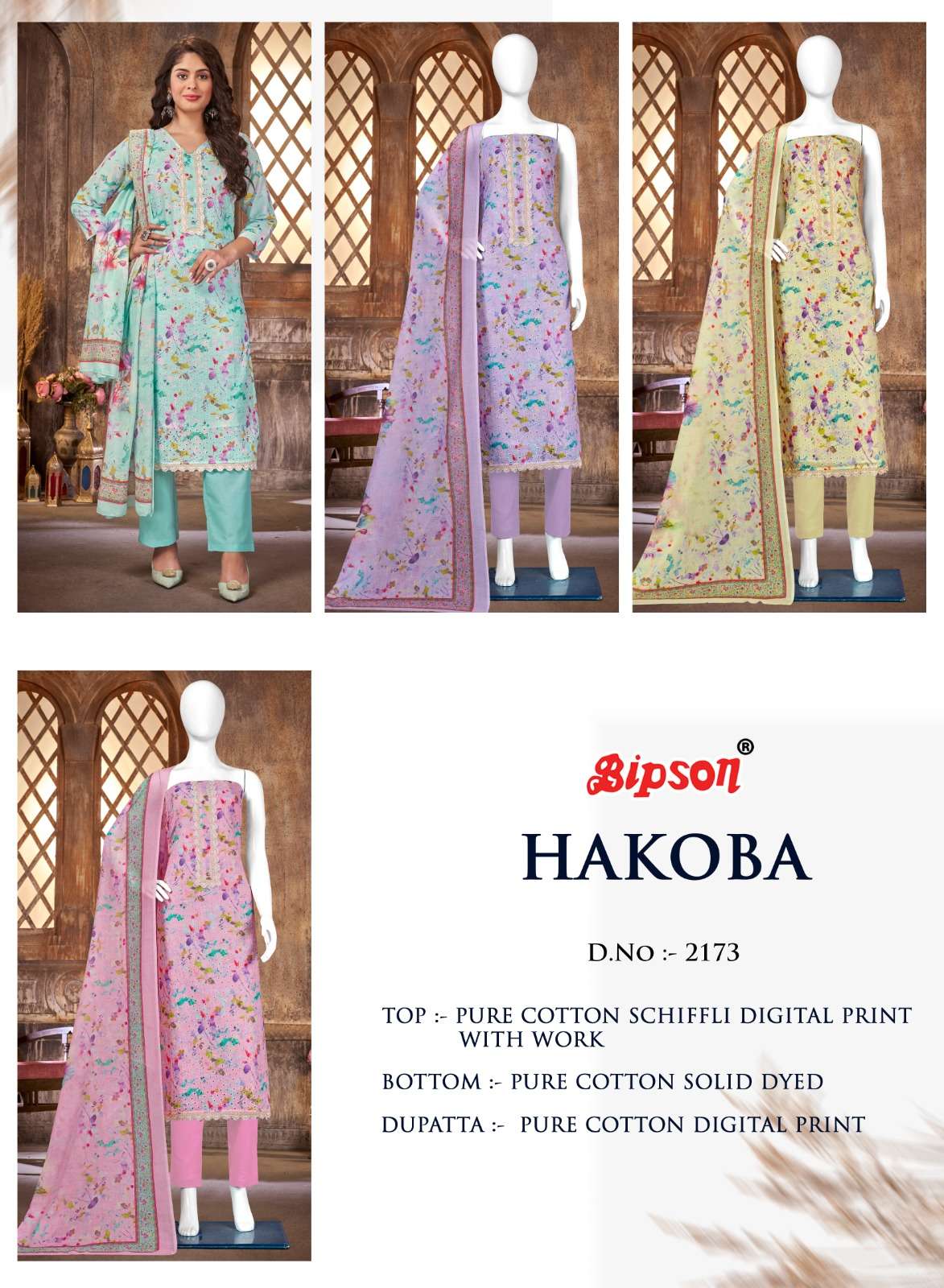 bipson hakoba 2173-2174 schiffli digital printed adorable salwar kameez collection
