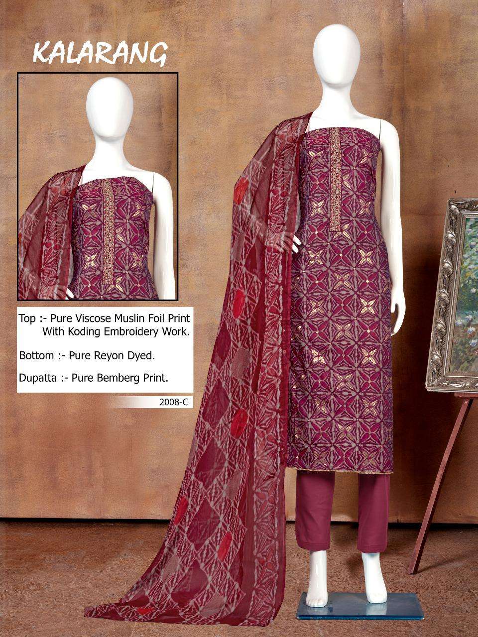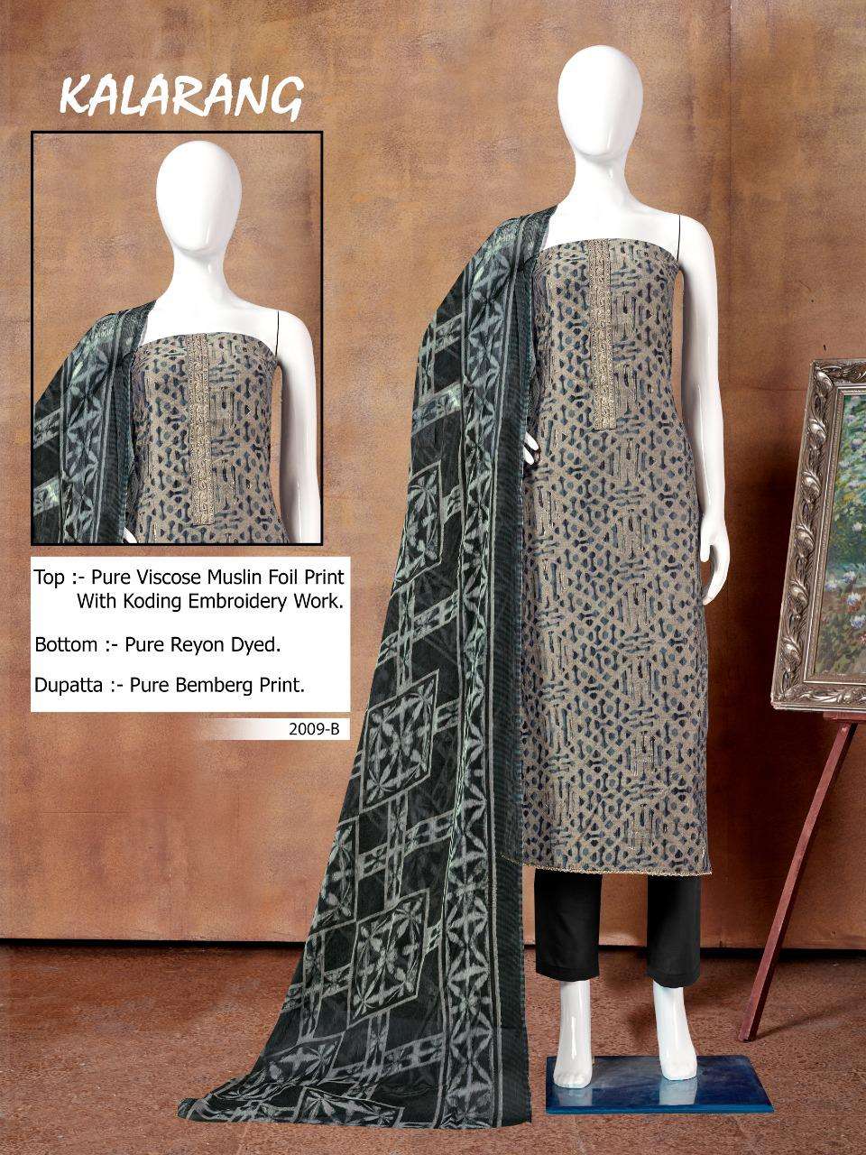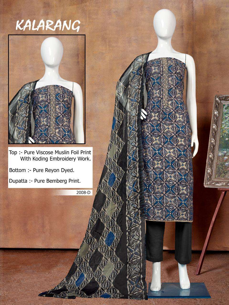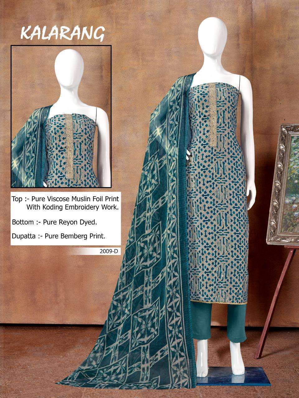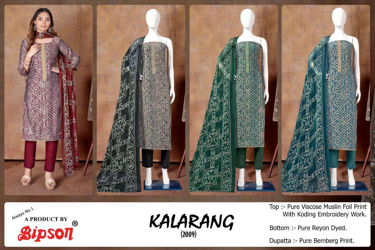 *BIPSON PRINTS PVT LTD * Premium Collection _ KALARANG - 2008 _ 2009 TOP :- _ Pure Vicose Muslin Foil Print With Coding Embroidery Work ._ @ 795 /- |