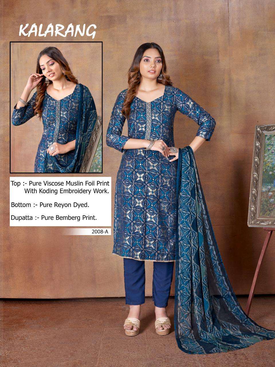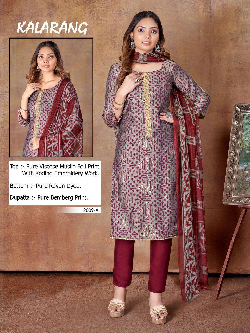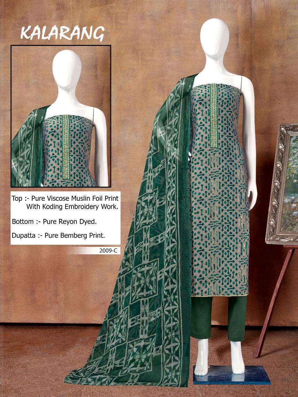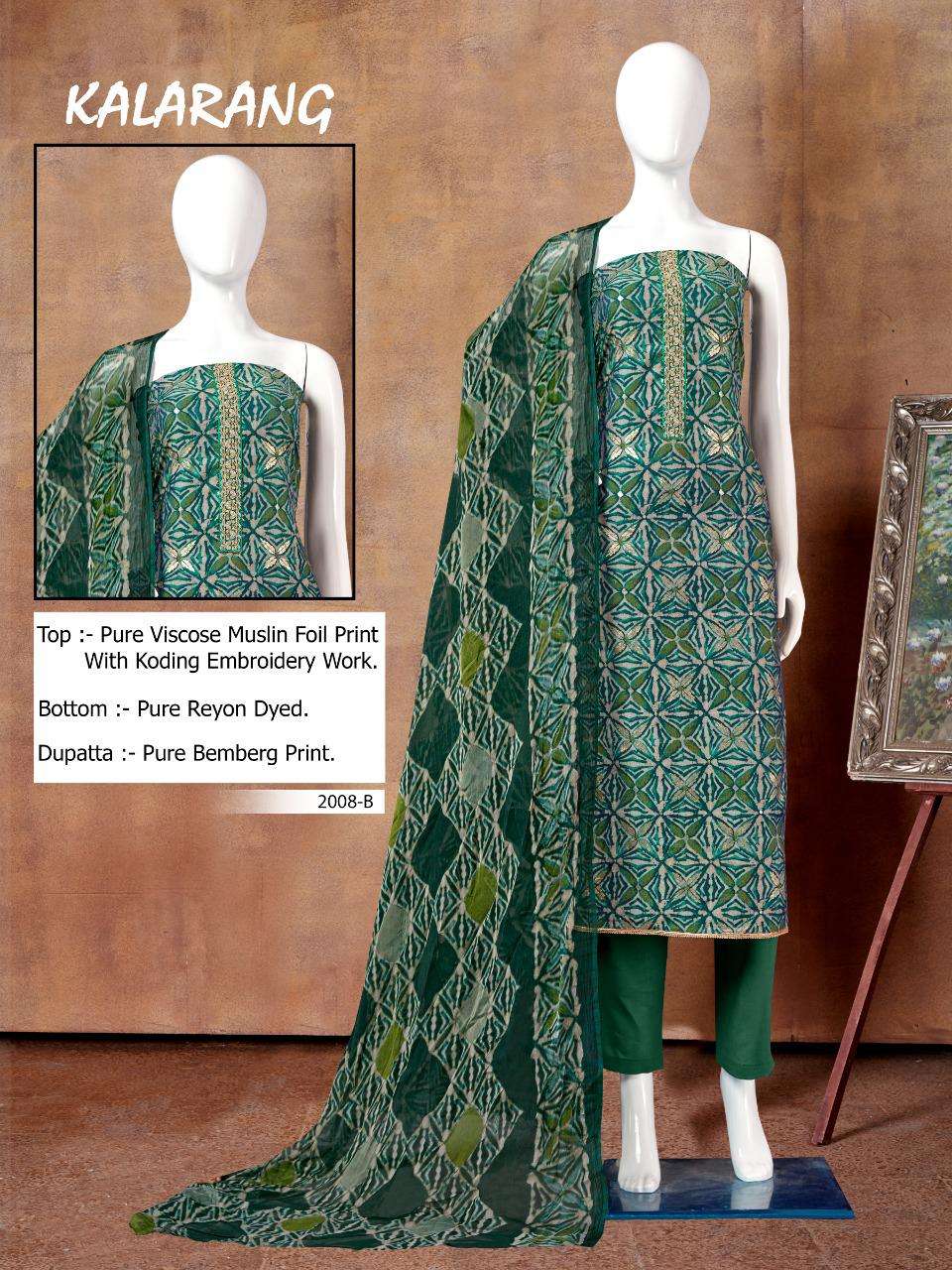 *BIPSON PRINTS PVT LTD * Premium Collection _ KALARANG - 2008 _ 2009 TOP :- _ Pure Vicose Muslin Foil Print With Coding Embroidery Work ._ @ 795 /- |
