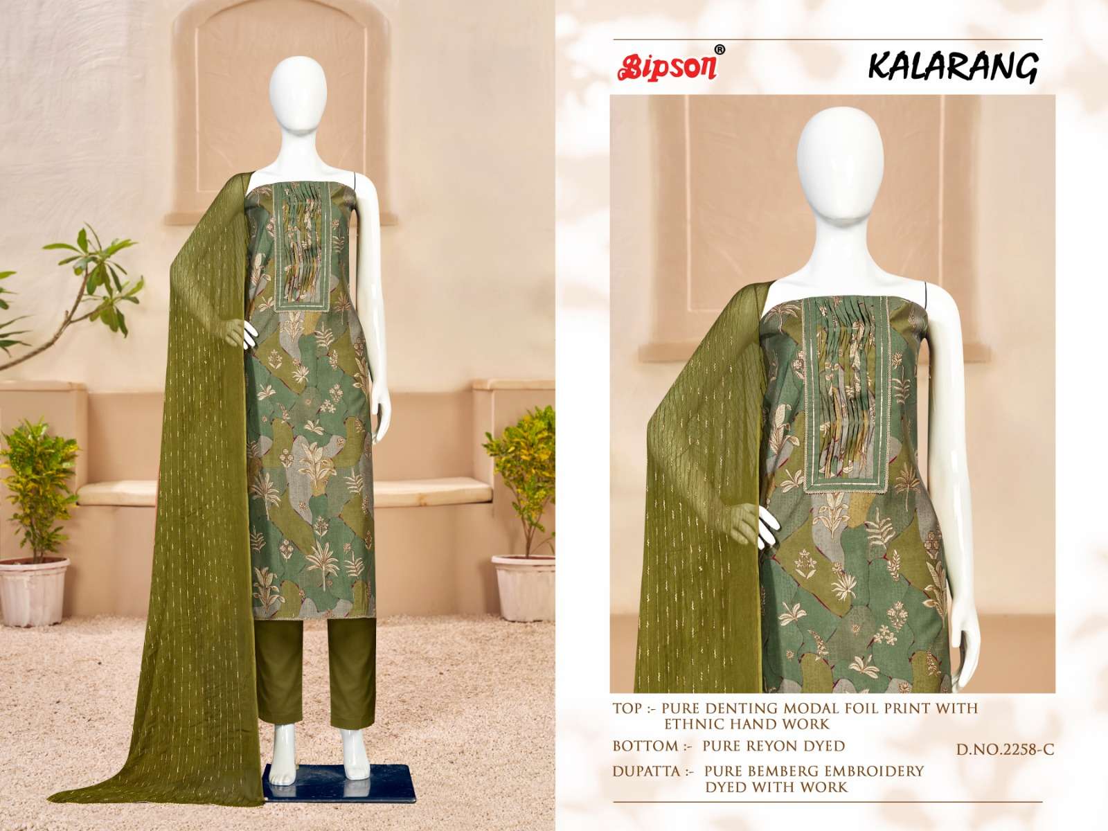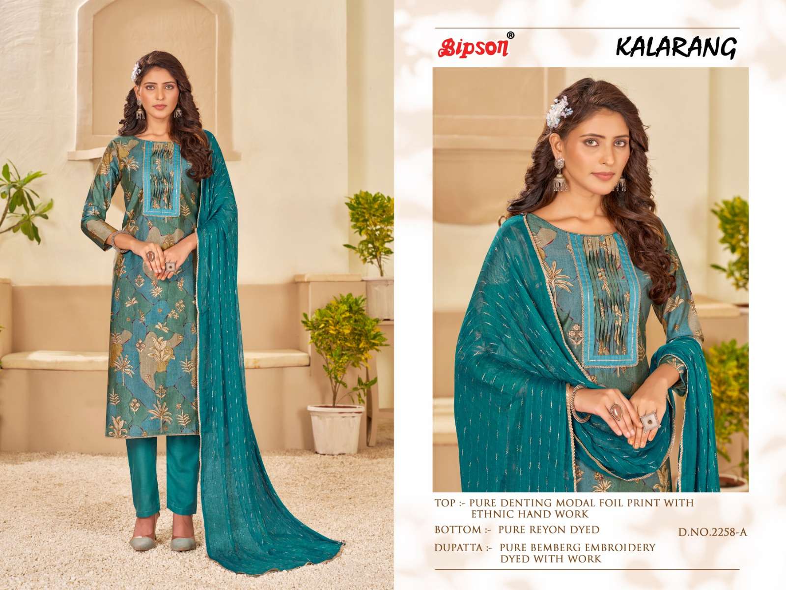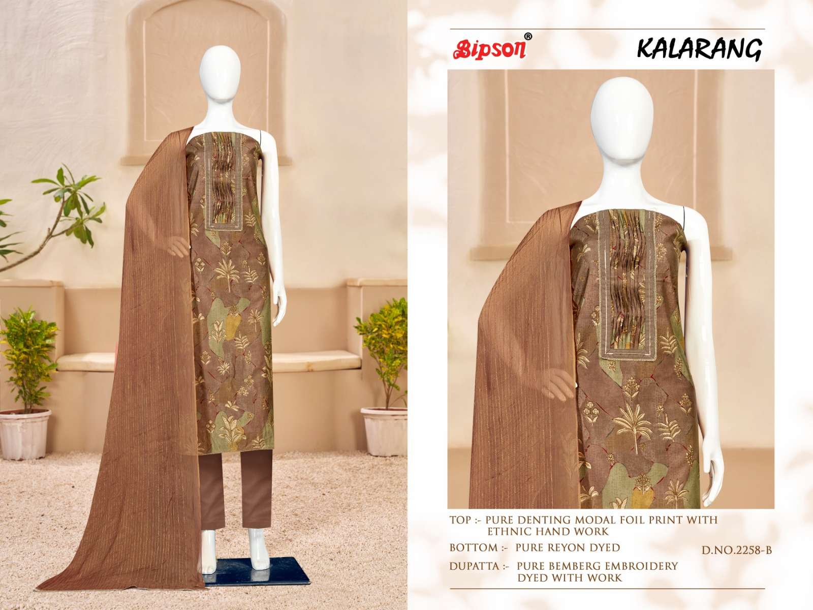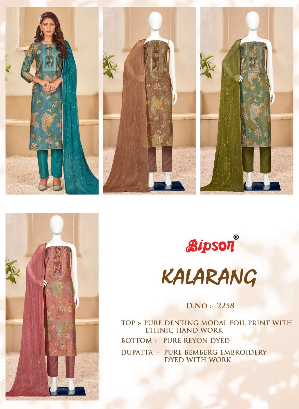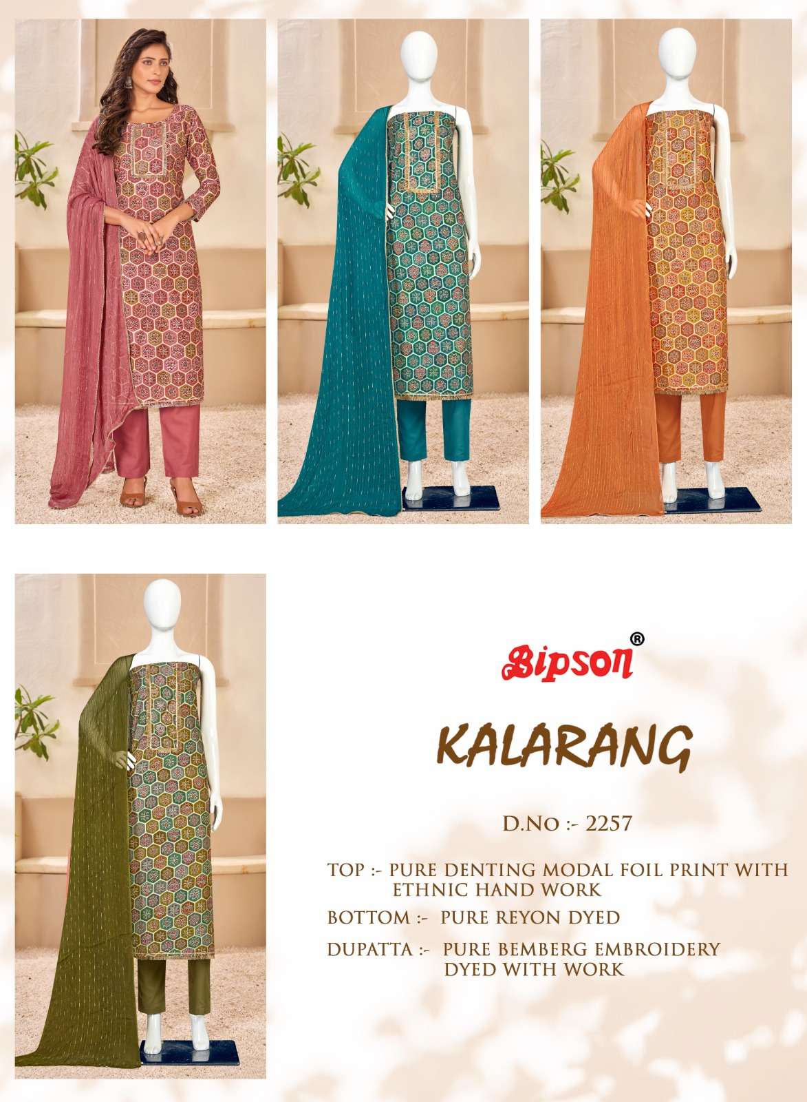 *BIPSON PRINTS PVT LTD * Premium MUSLIN Collection _ KALARANG - 2257 _ 2258 TOP :- _ Pure Denting Modal Foil Print With Ethnic Hand Work ._ @ 795 /- |
