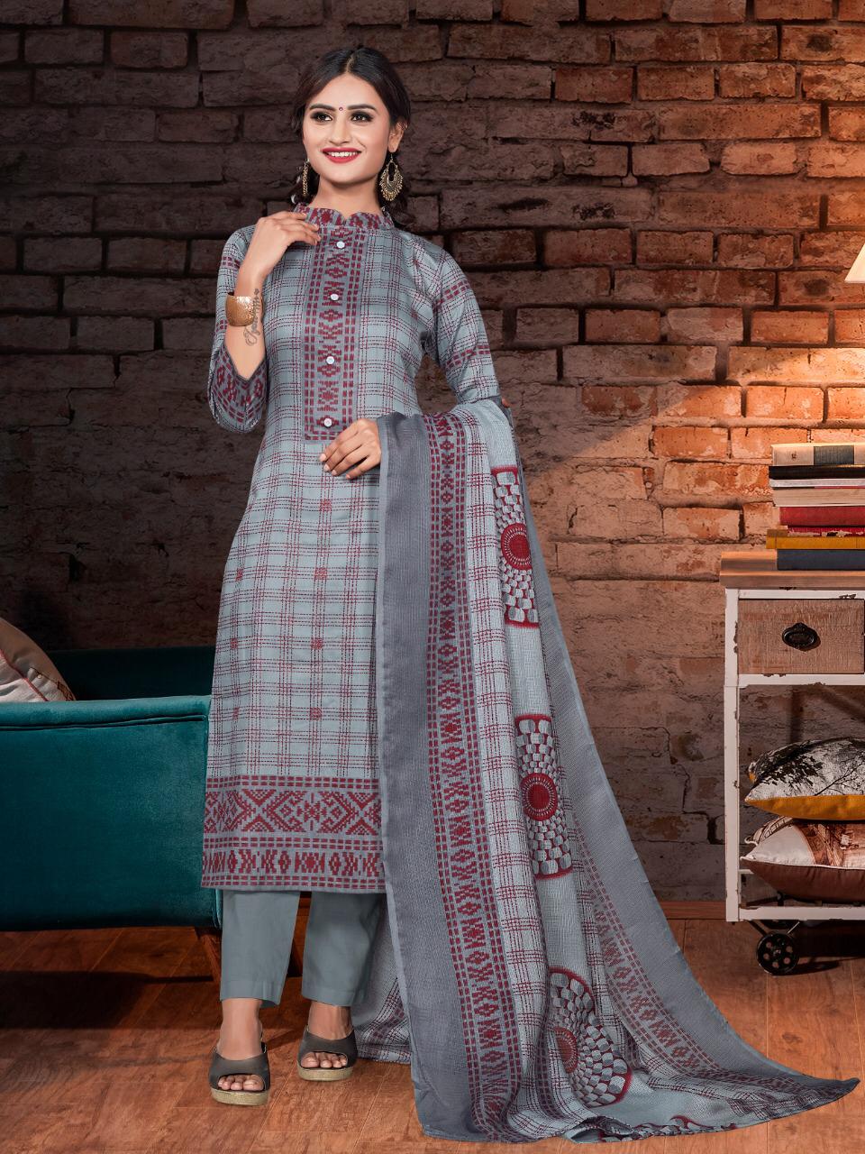 Premium Cotton Collection _ LAJOO - 1245 _ TOP :- _ Glace Cotton Print With Work ._ BOTTOM :- Pure Cotton Dyed . DUPATTA :- _ Kota Chex Print ._ *@ 515 /- * per pcs . Set to set . Delivery from today |
