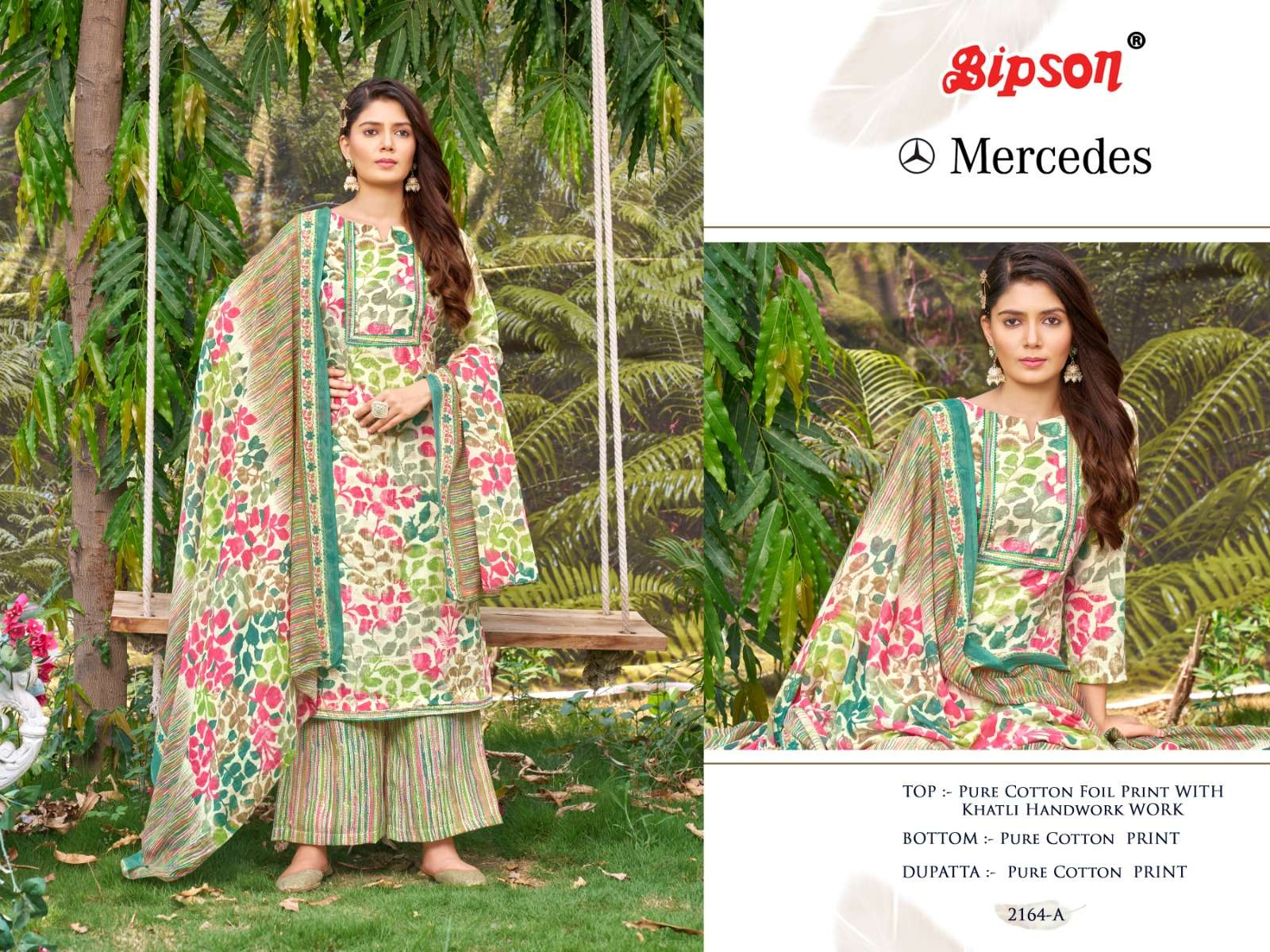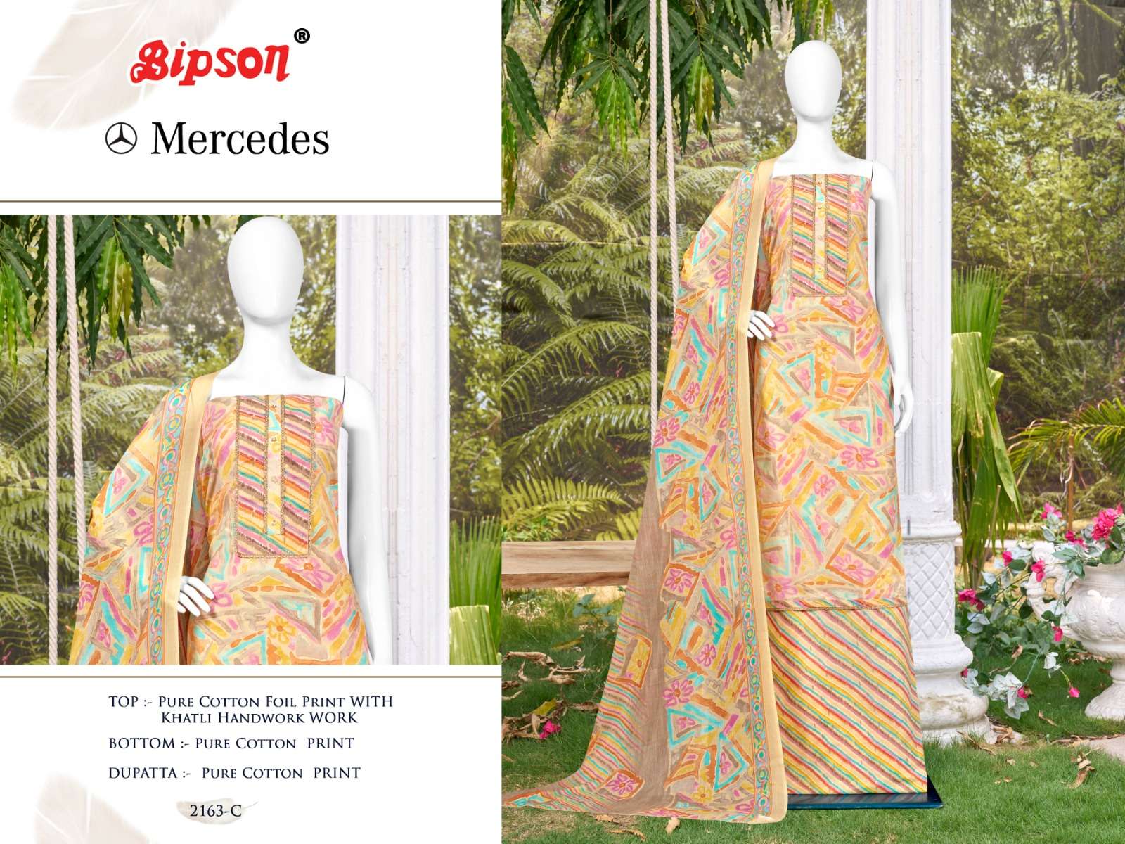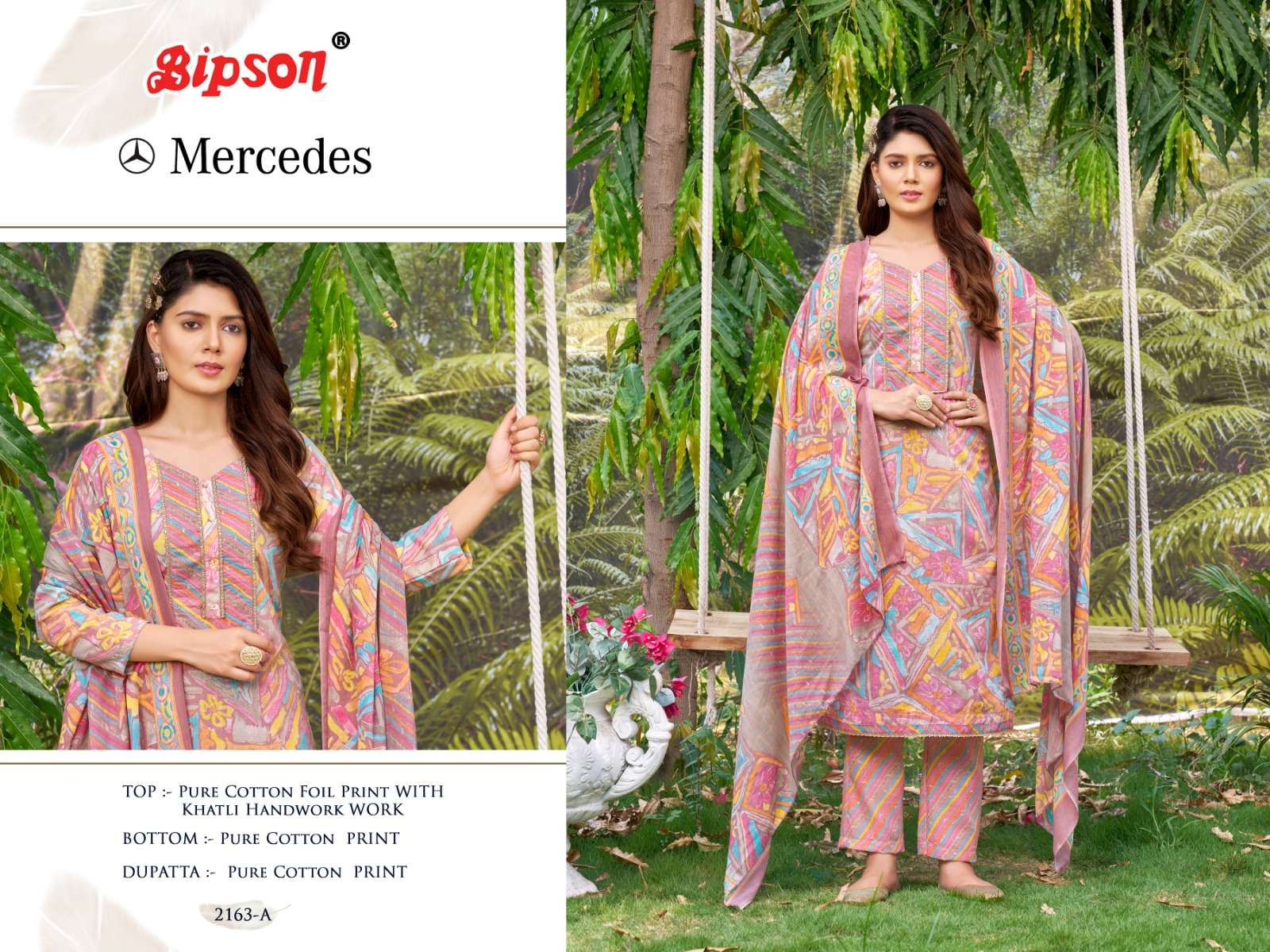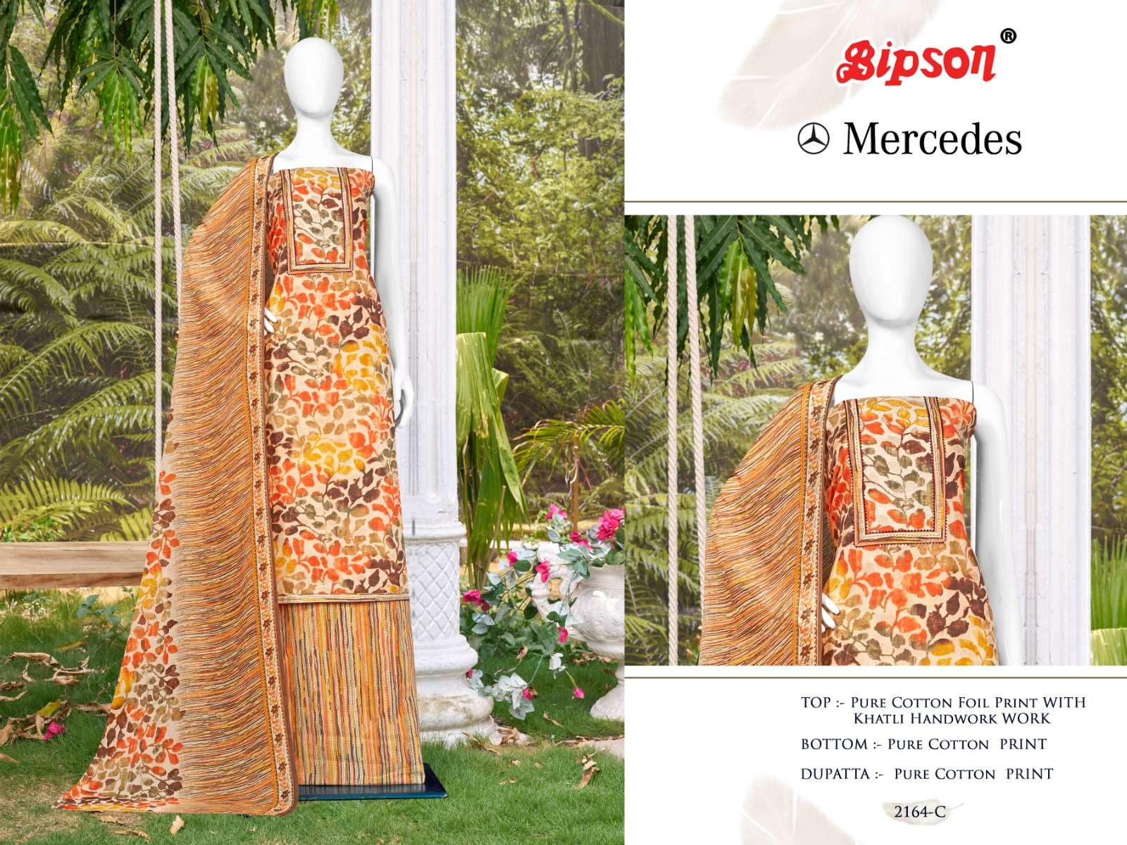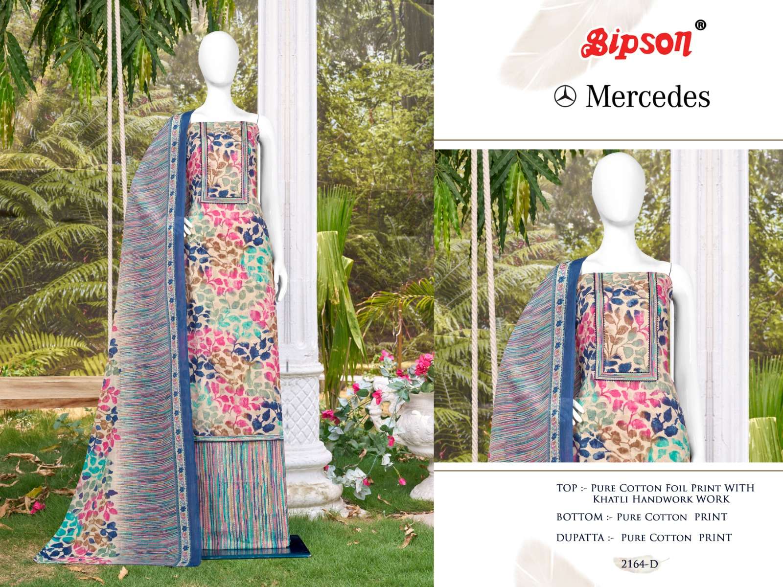 bipson mercedes 2163-2164 foil print khatli handwork adorable dress material