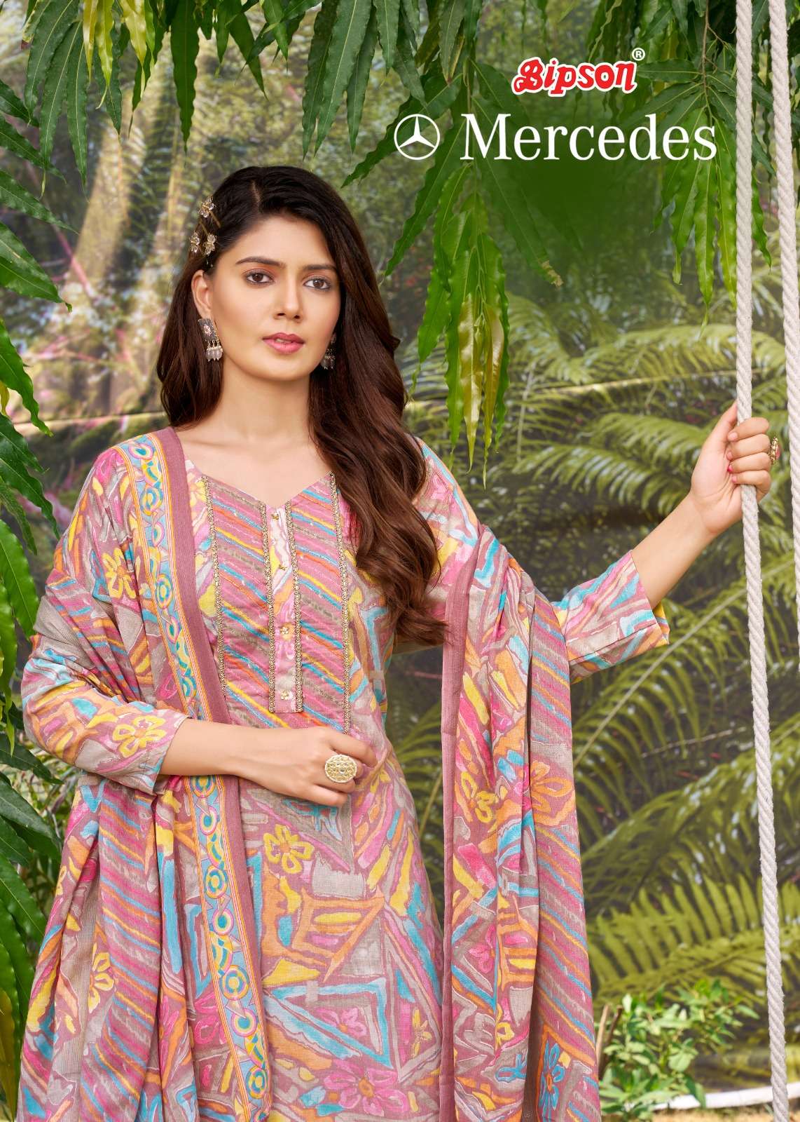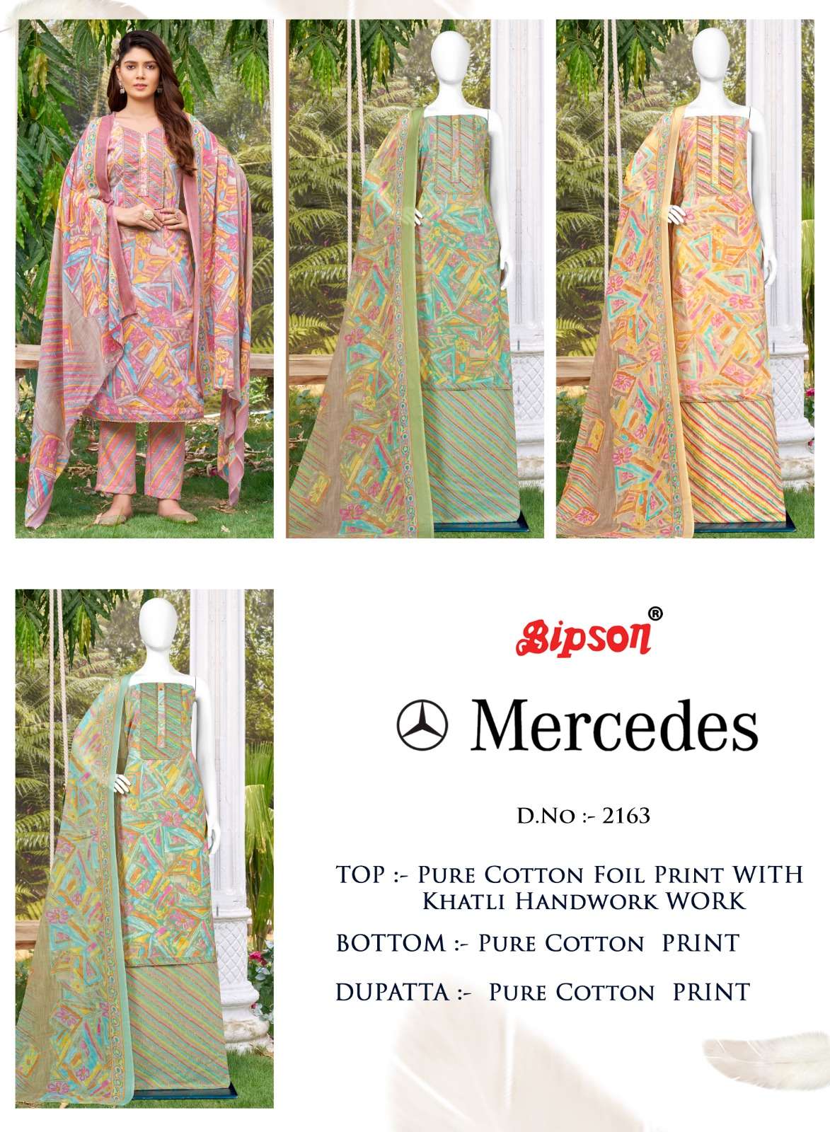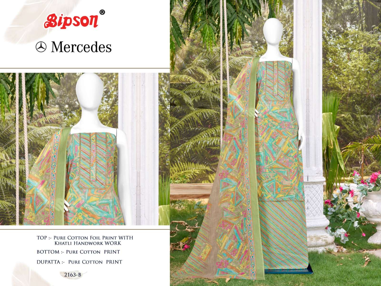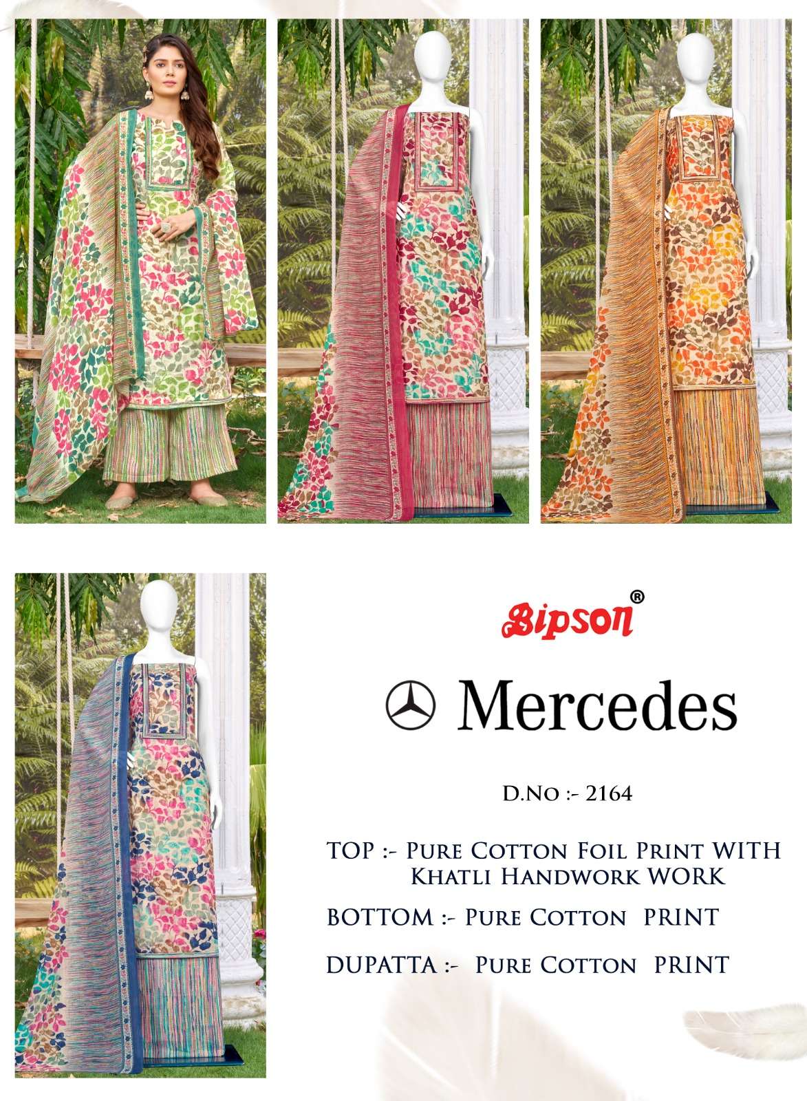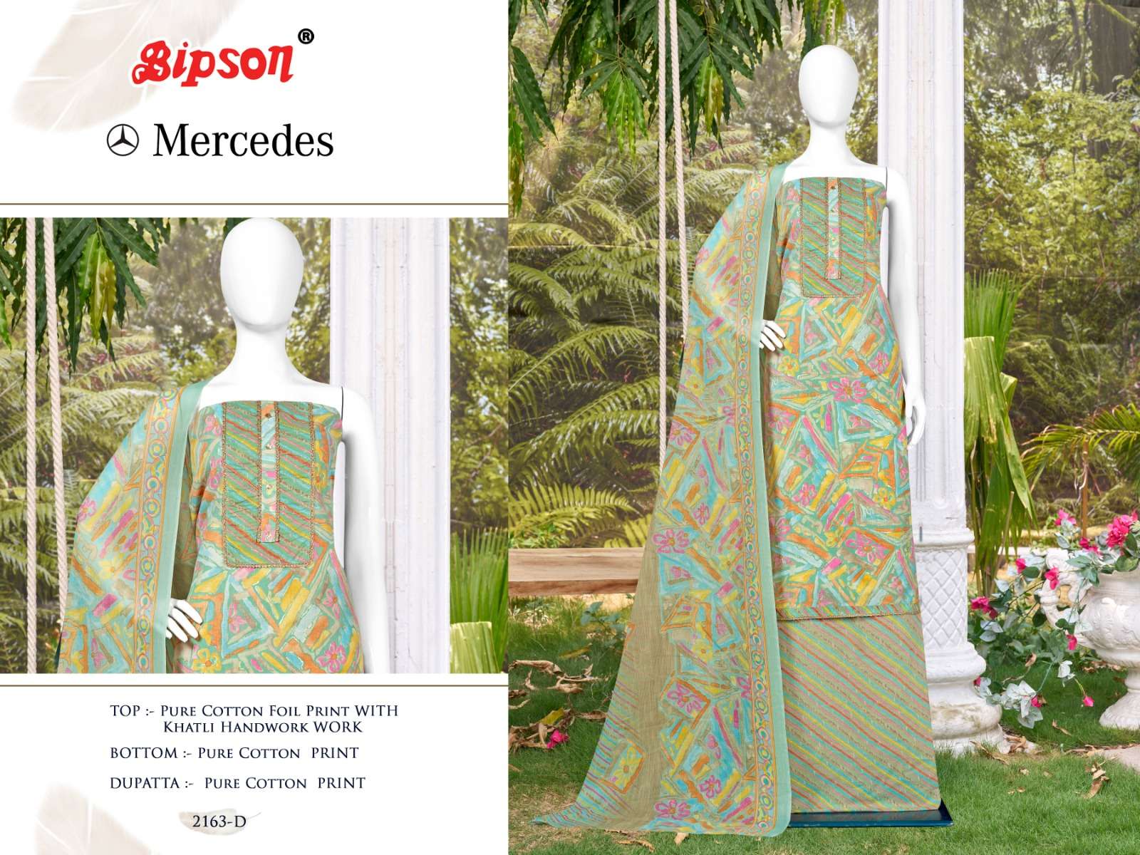 bipson mercedes 2163-2164 foil print khatli handwork adorable dress material