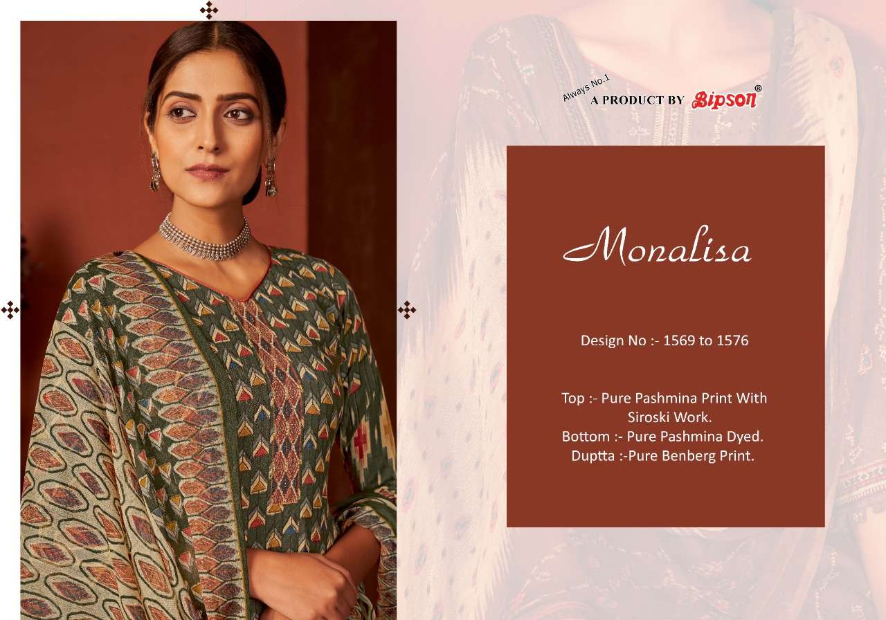 BIPSON Brings ..... TOP :- _ Pure Pashmina Print With SIROSKI Work .2.5 MTR BOTTOM :- _Pure Pashmina Dyed 2.75 MTR DUPATTA :- _ Pure BEMBERG Beautiful' Print 2.25 MTR 8 PS Catalog in Leather Bag @ 645 /- |