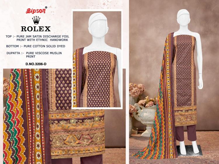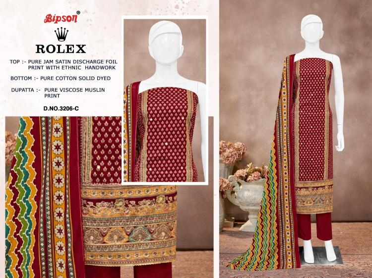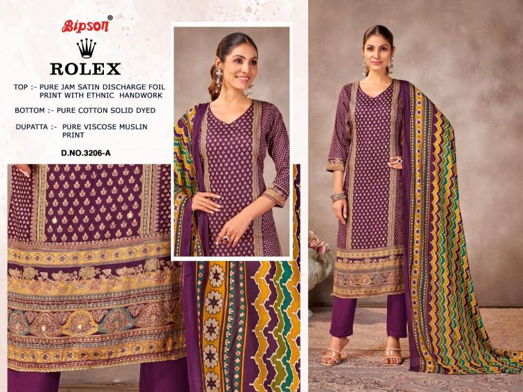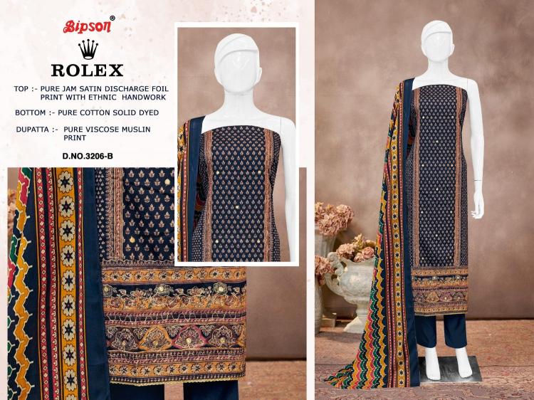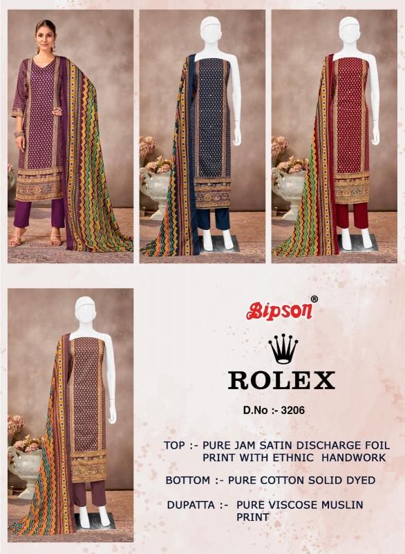 bipson print rolex 3206 jam satin gorgeous look salwar suits