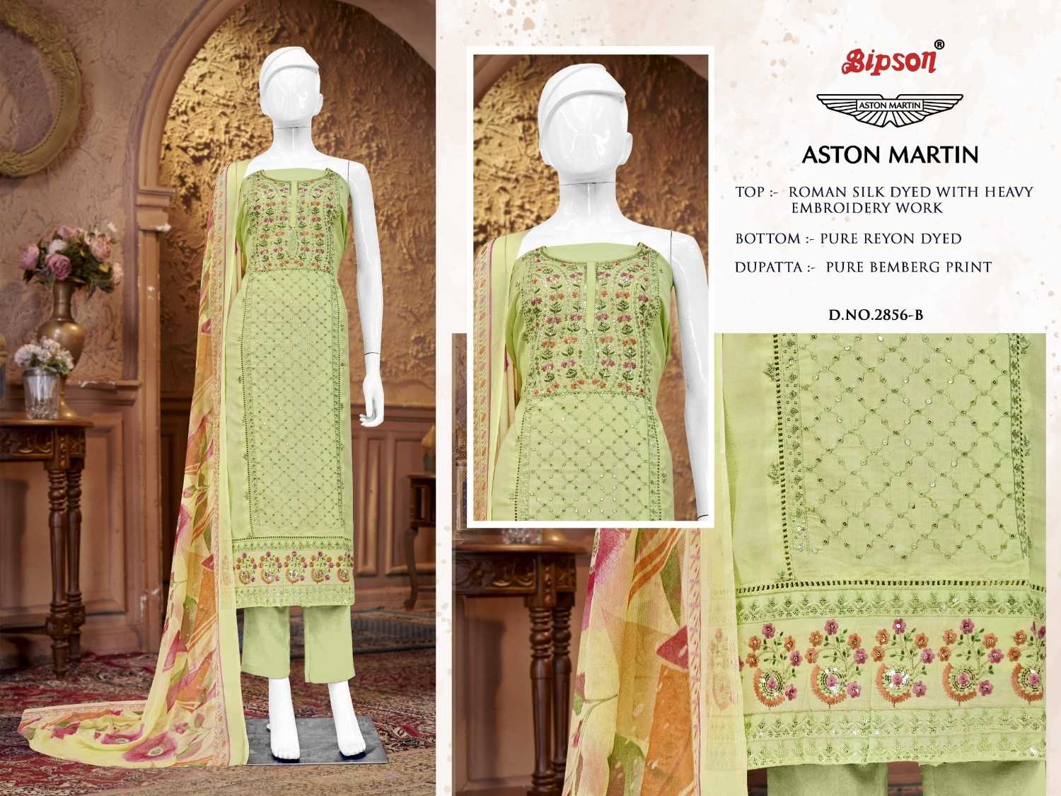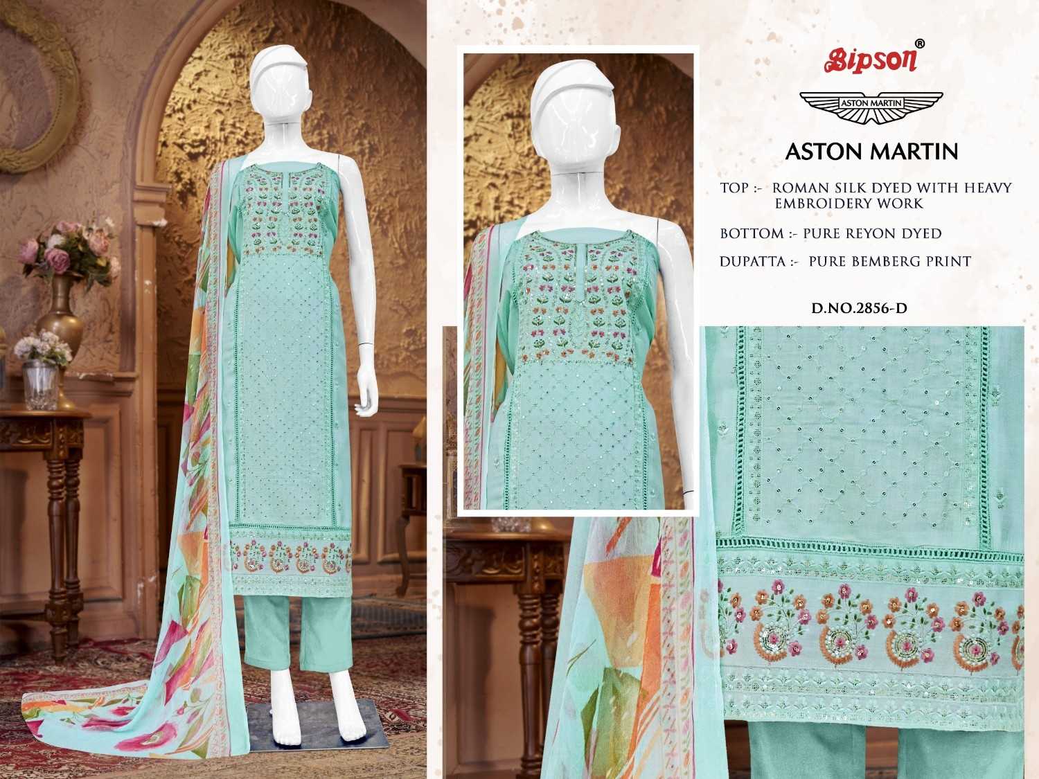 BIPSON PRINTS PVT PLT TOP :- Pure Roman Silk Dyed With Heavy Embroidery Work . Price @ 875 /- per pcs GST EXTRA Set to set |