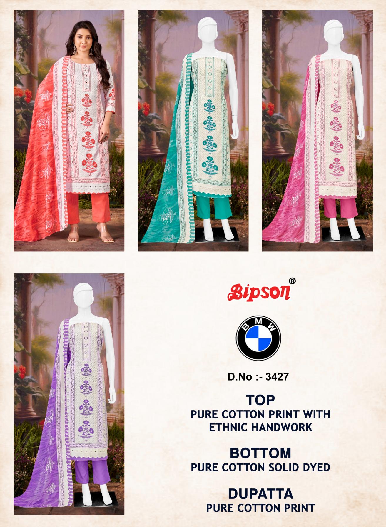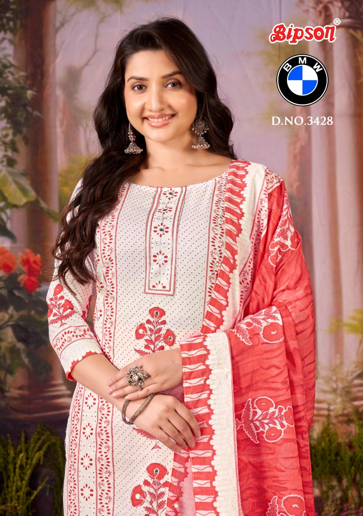 bipson prints bmw 3427 cotton daily wear unstitch 3pcs dress