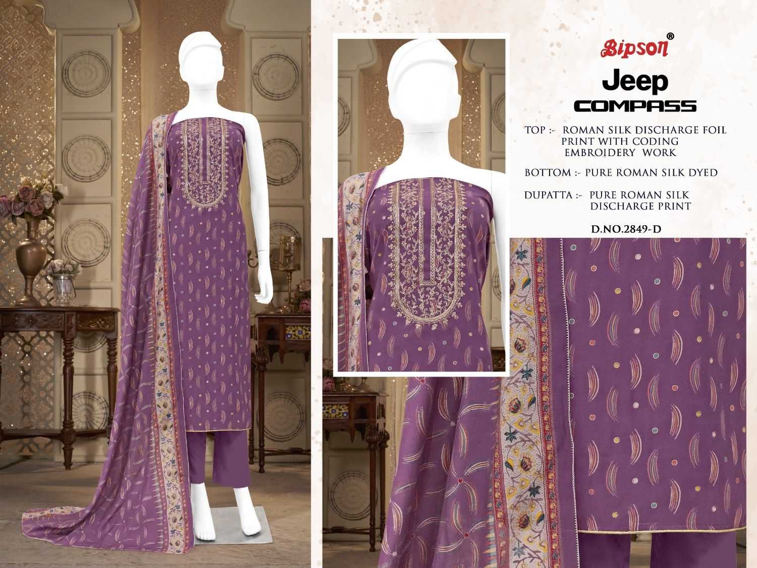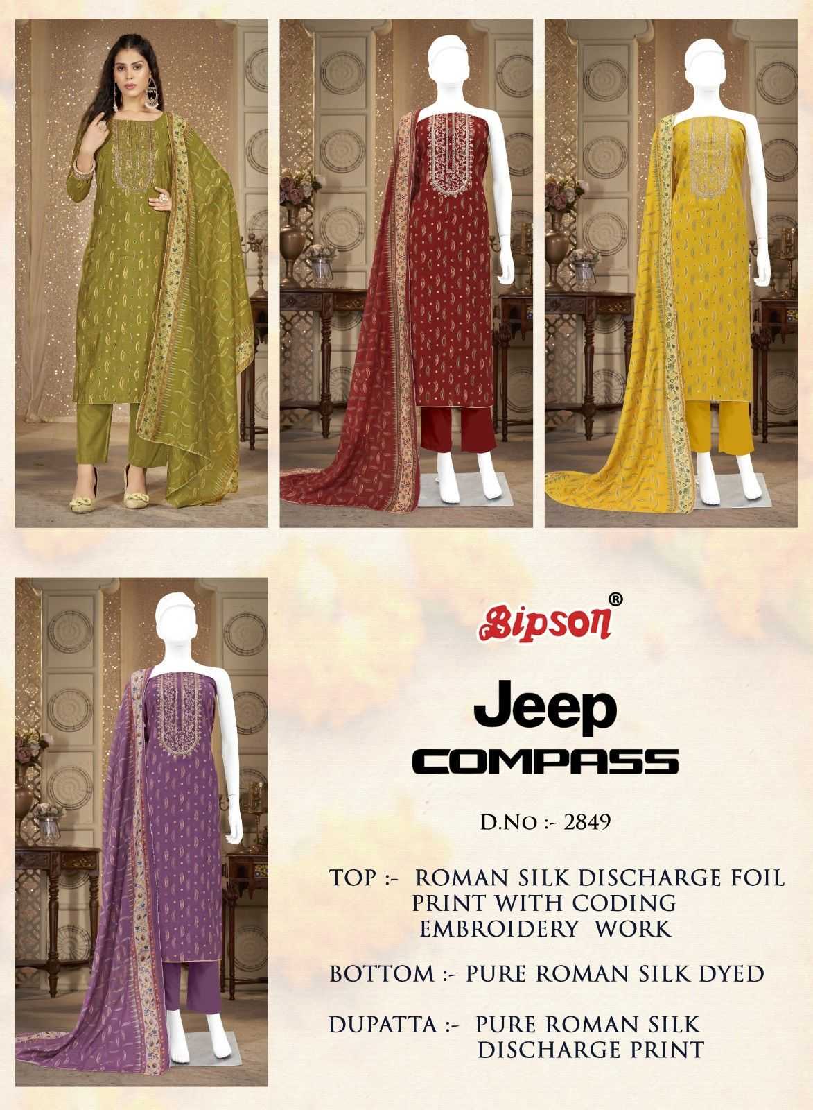 bipson prints jeep compass 2849 roman silk traditional wear dress material