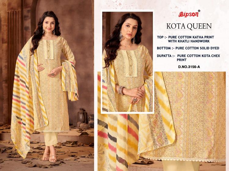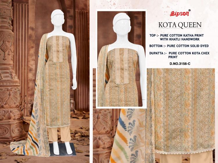 bipson prints kota queen 3156 cotton katha print latest saree design suits