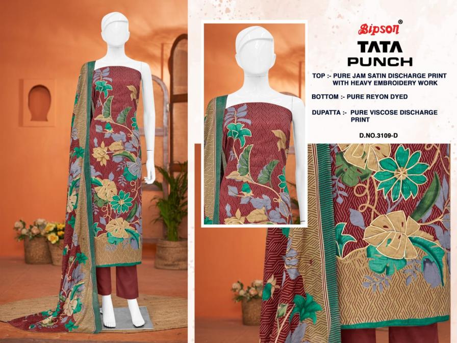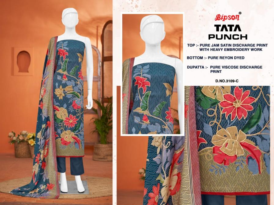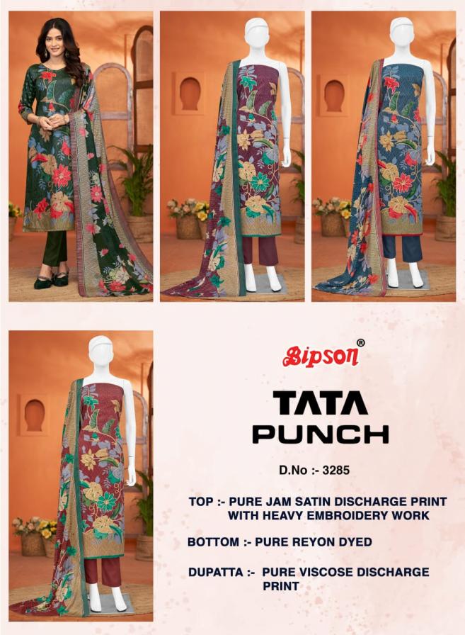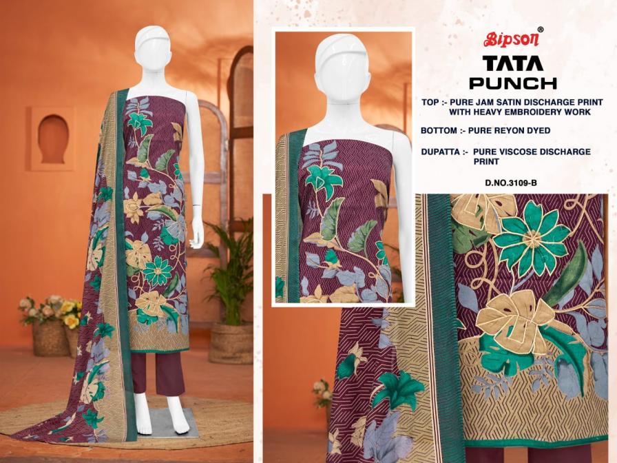 bipson prints launch tata punch 3285 satin unstitched fancy suits
