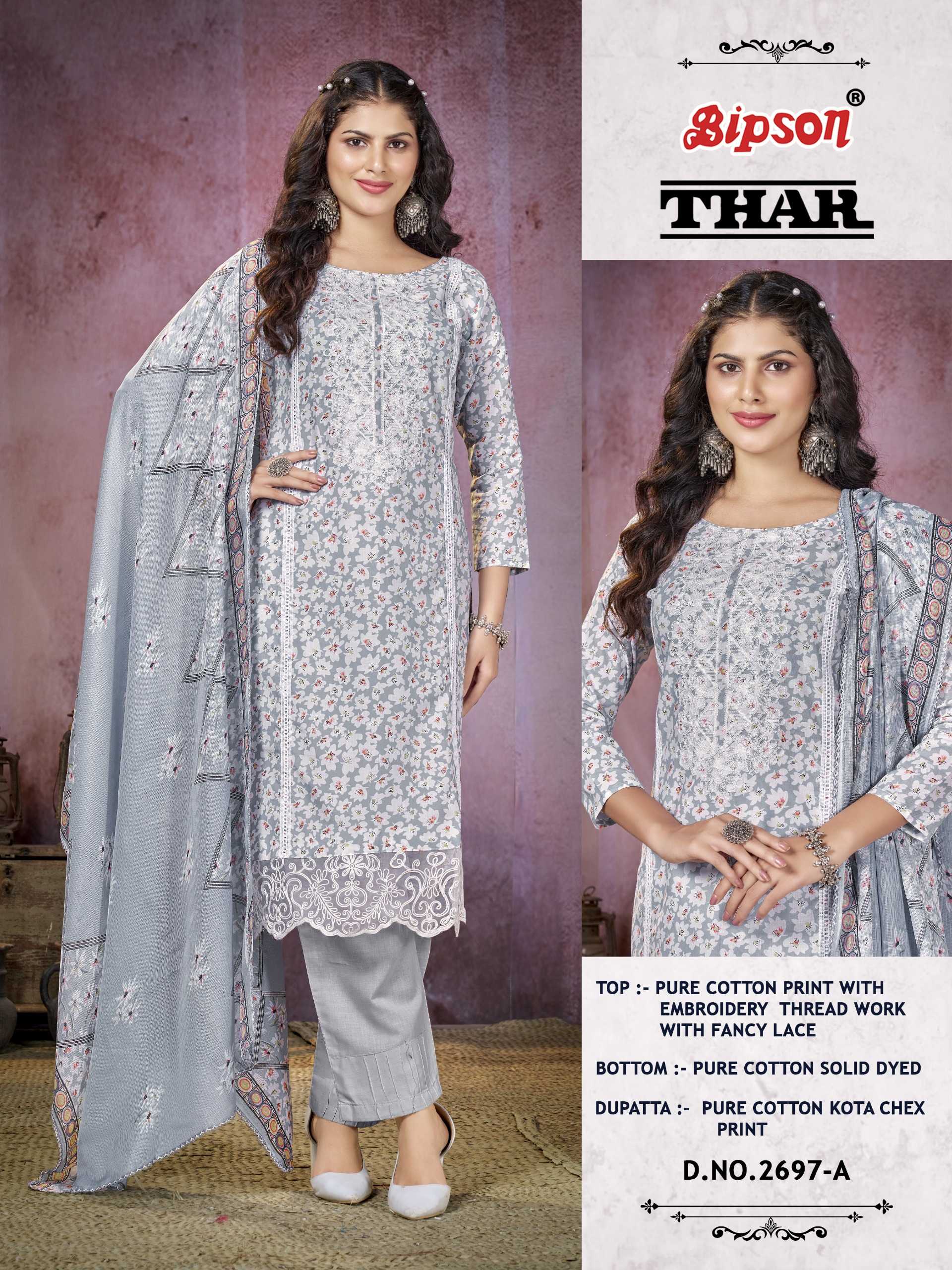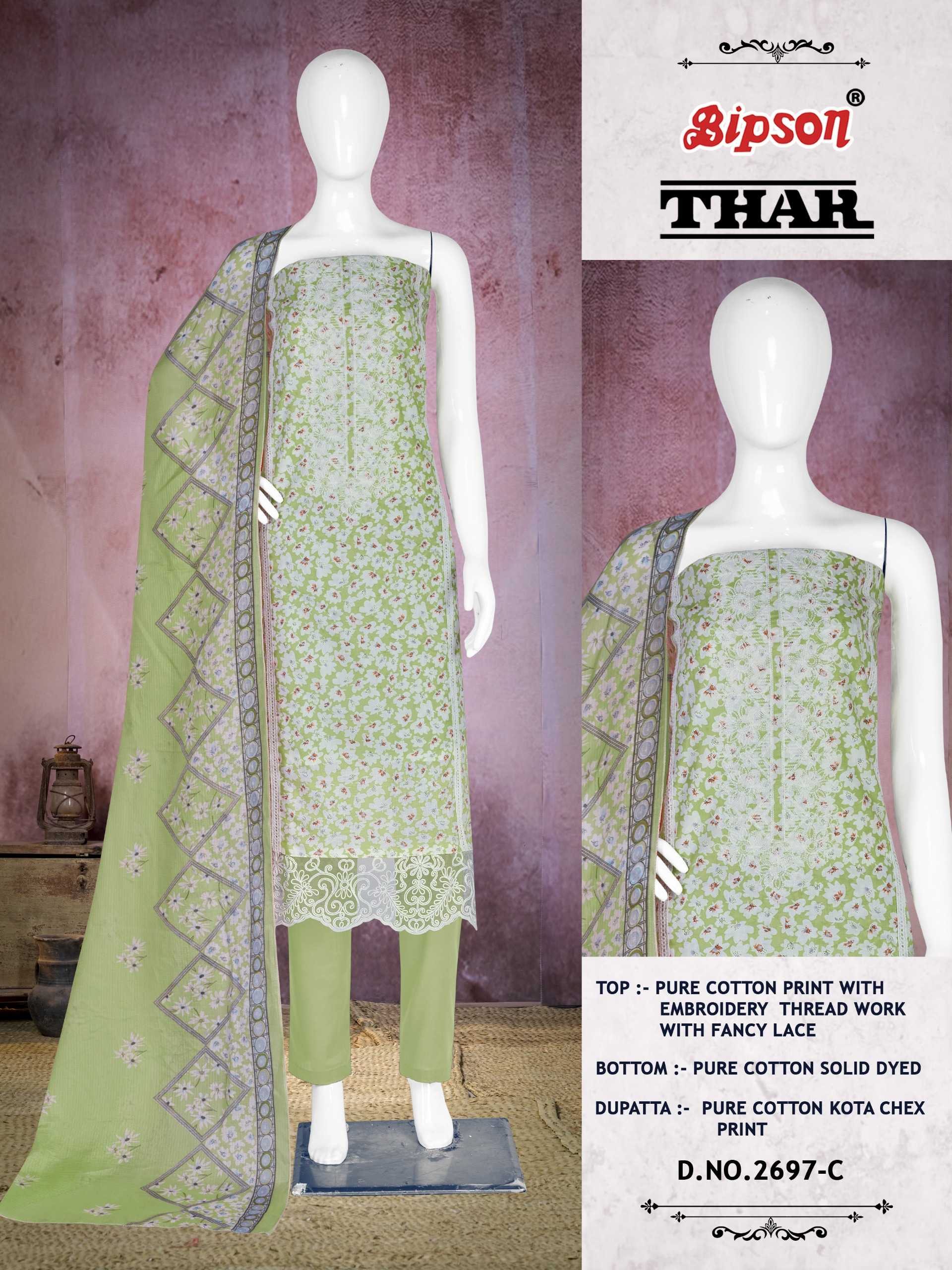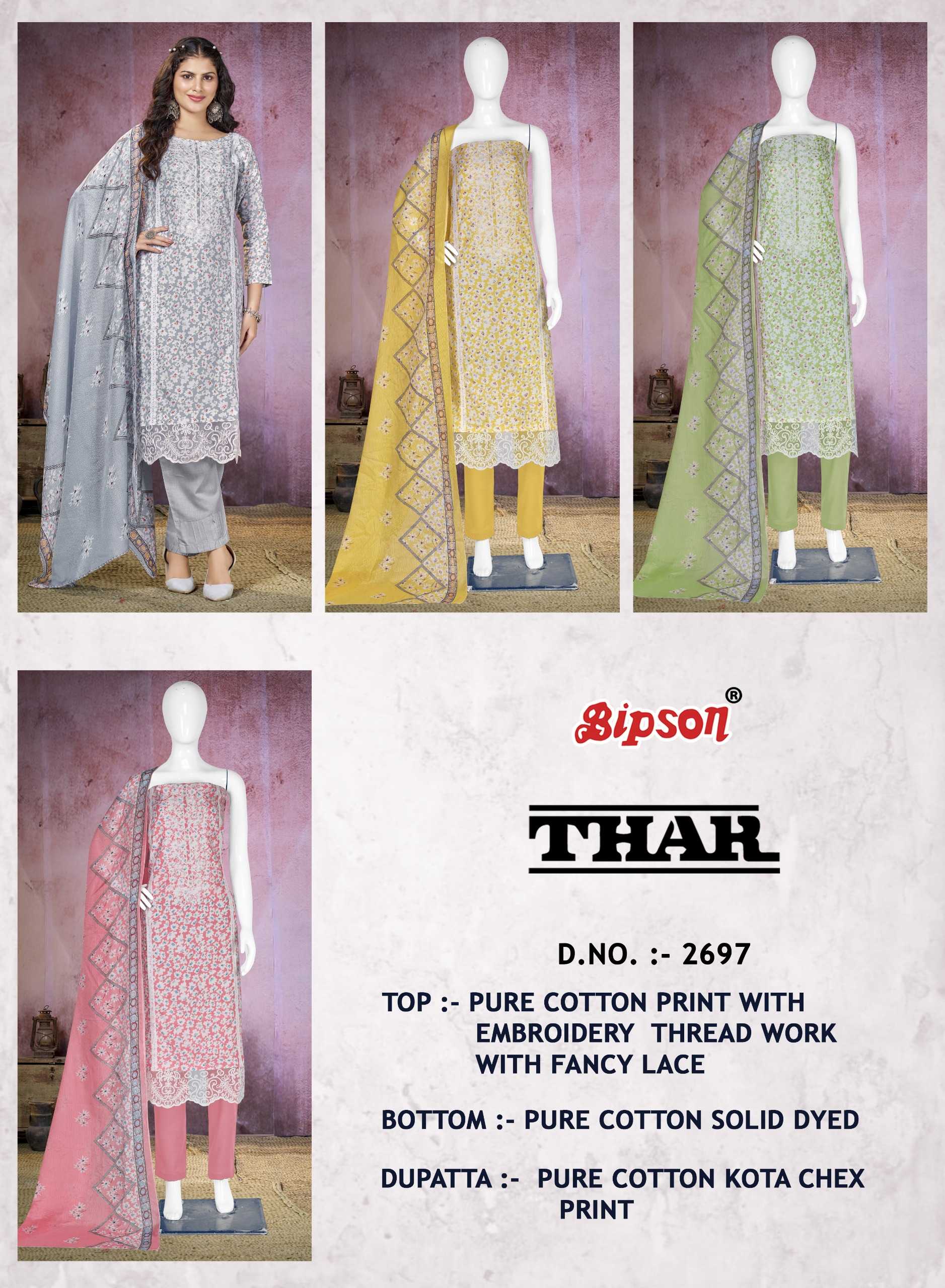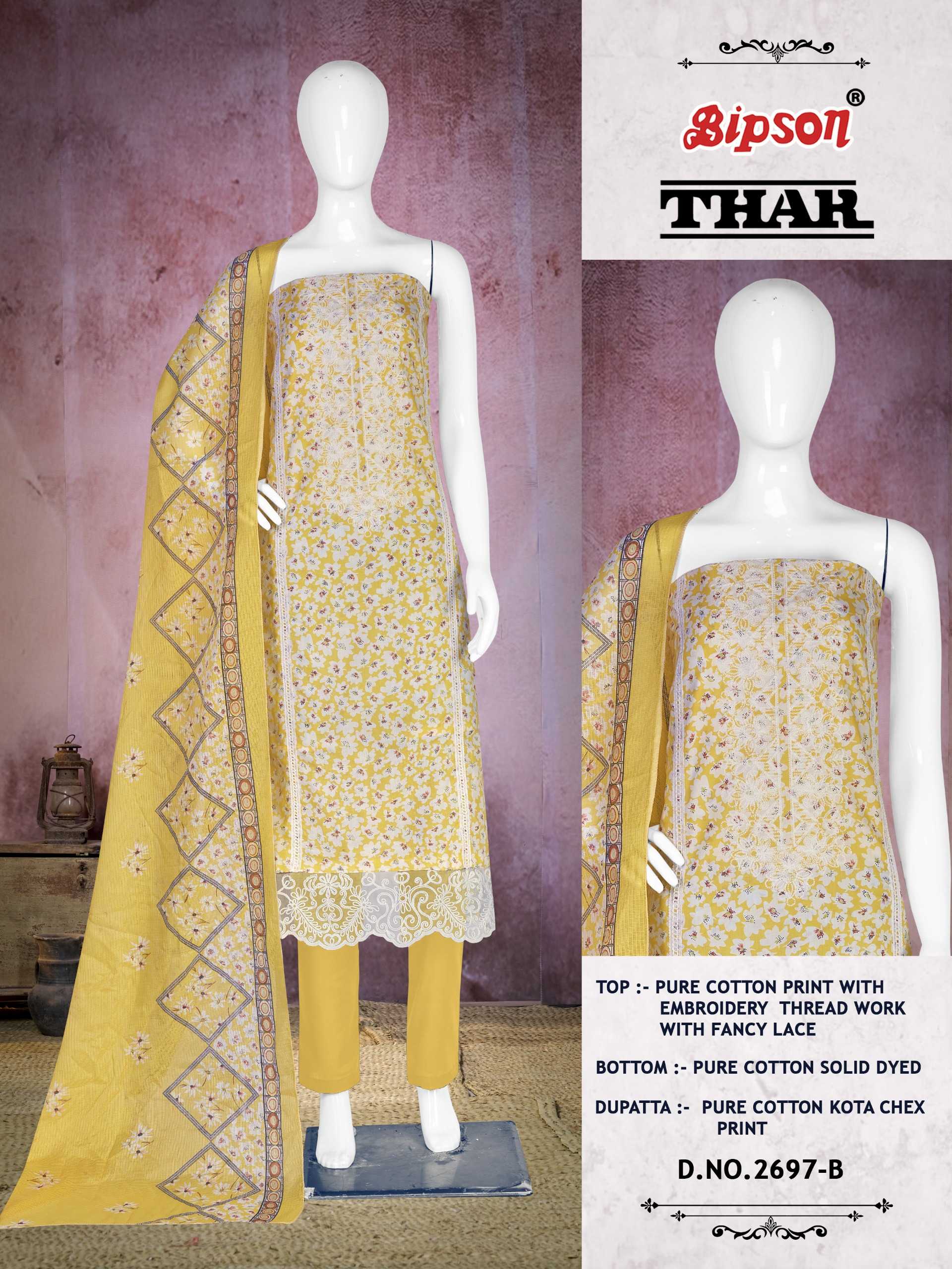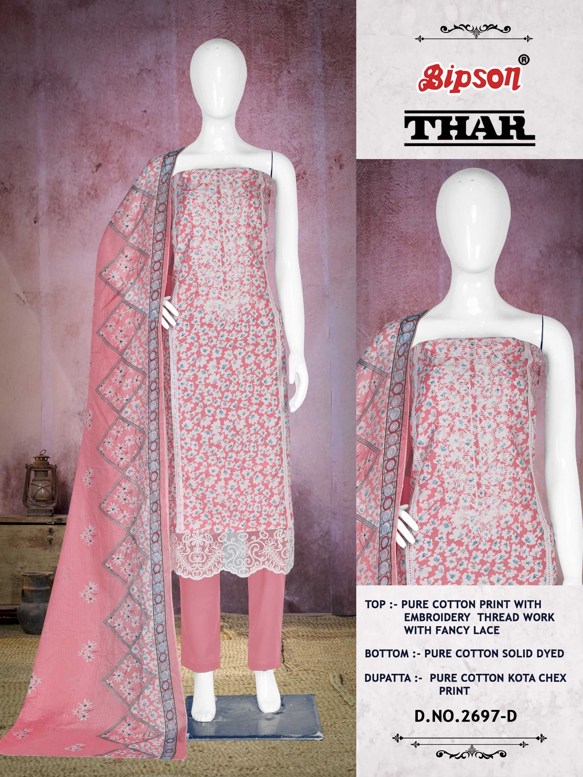 bipson prints thar 2697 latest cotton print 3pcs kurti pant dupatta material