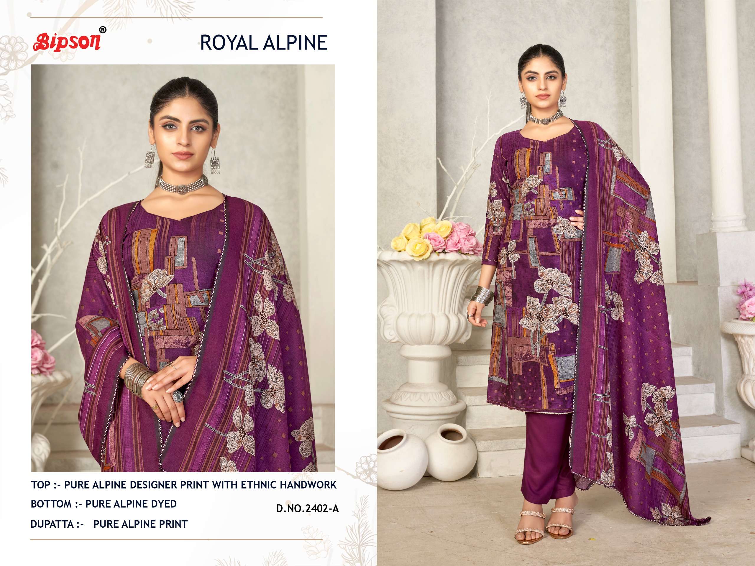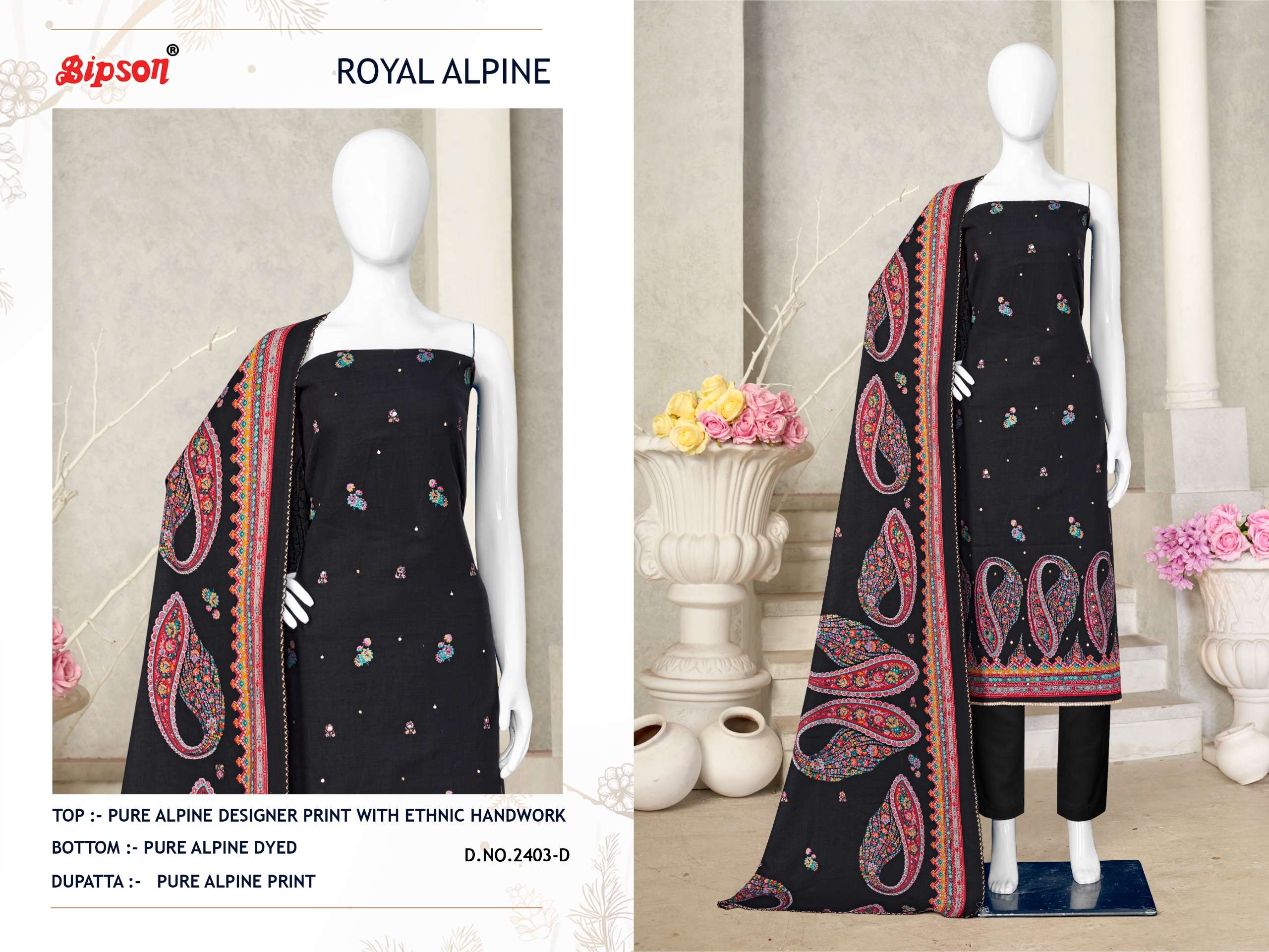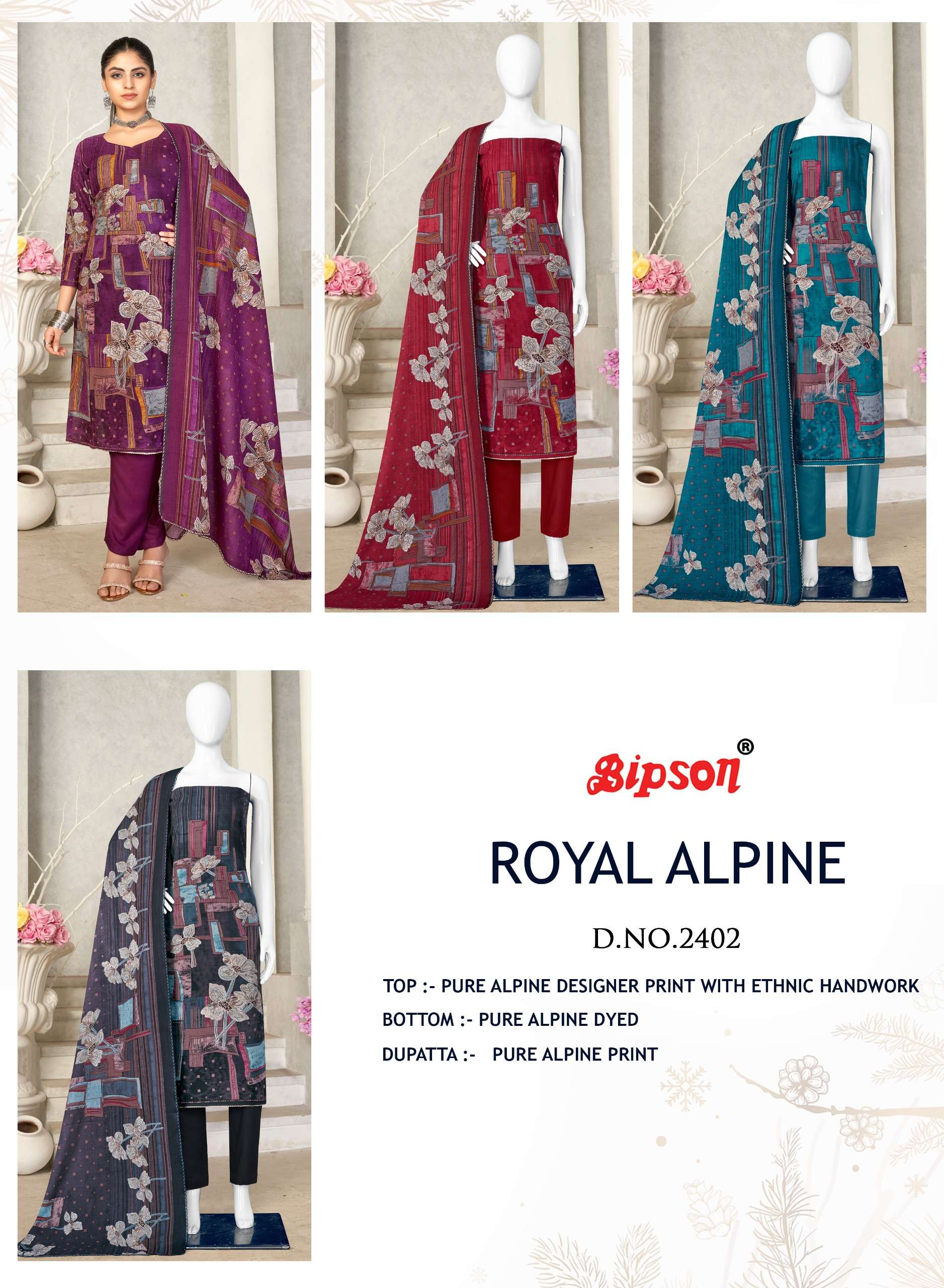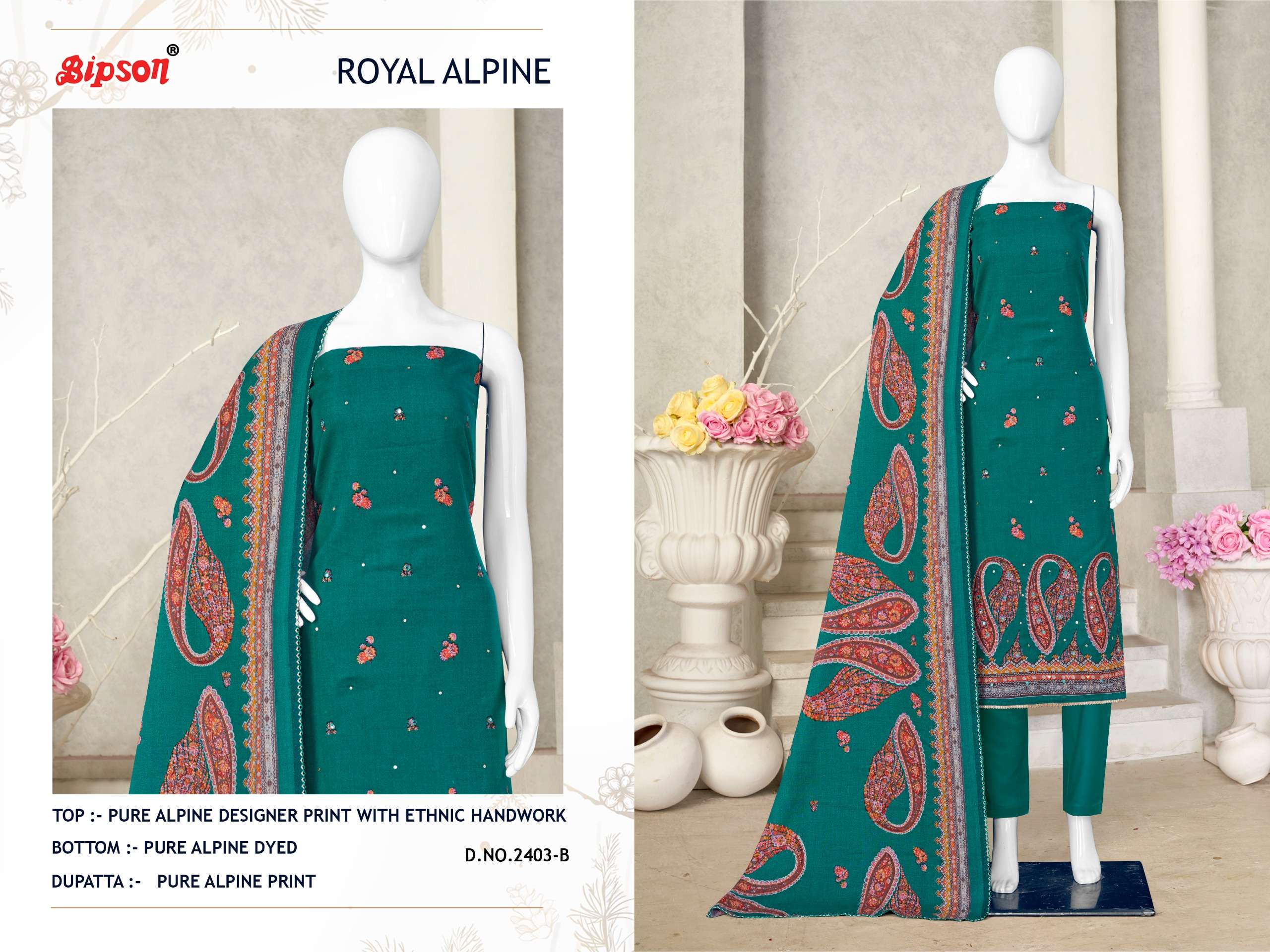 bipson royal alpine 2402-2403 printed winter wear unstitch salwar kameez