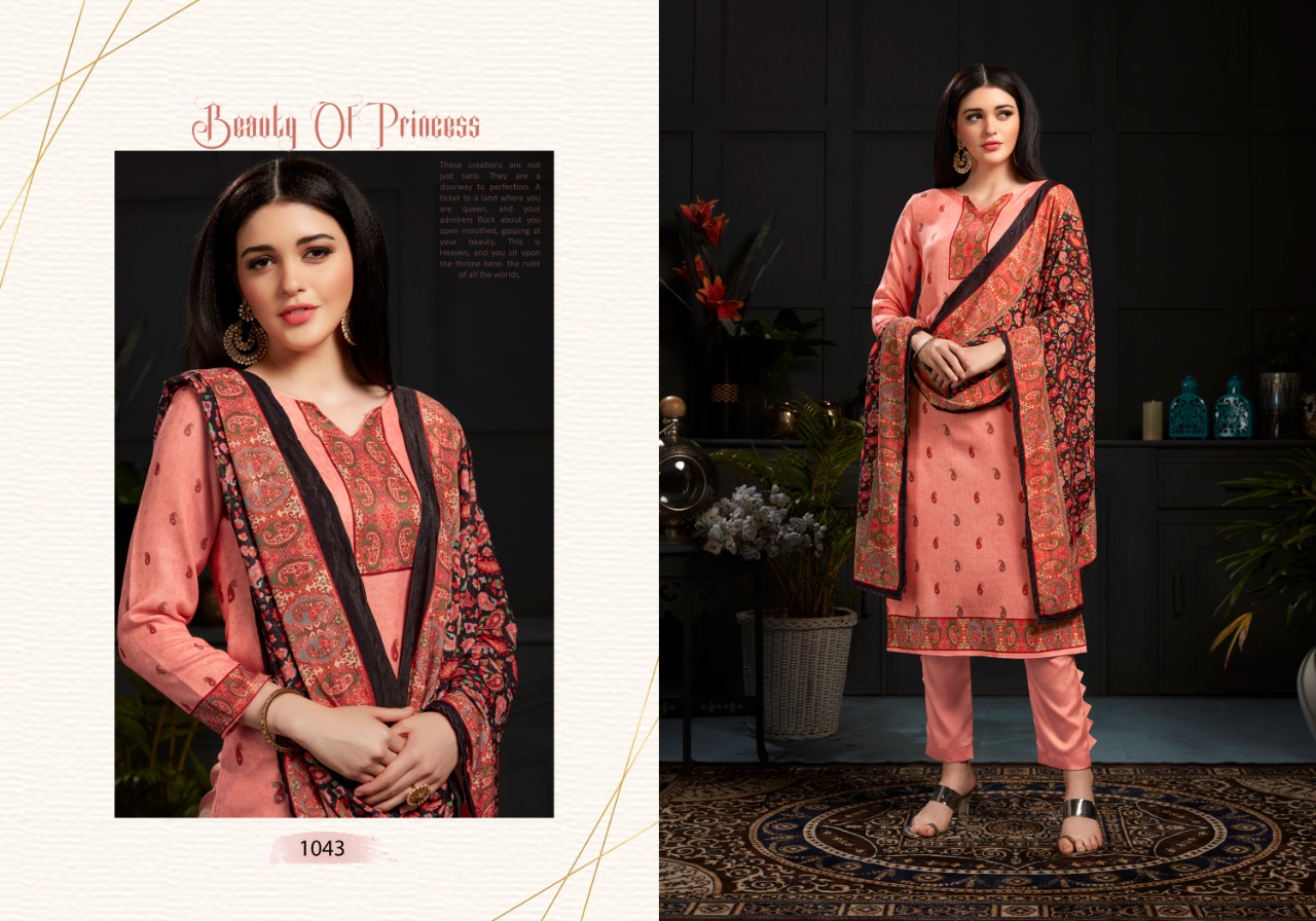 WINTER COLLECTION _ SHANEEL 1041-1044 _ TOP :- Woollen Pashmina Digital Print . Bottom :- Pure Pashmina Dyed . Dupatta :- _ Pure Velvet Digital Print . _ *@ 925 /- * Set to set. GST 5 Percent Extra. Delivery from tomorrow |
