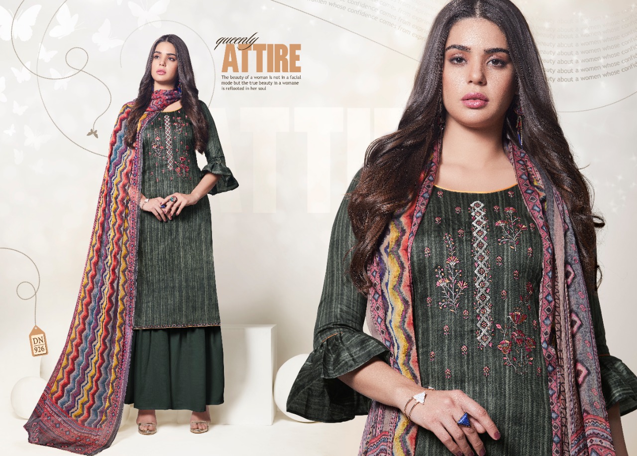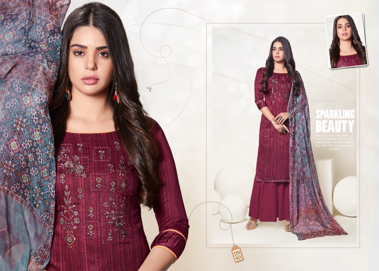BIPSON Brings ..... _SIMRAN _ TOP :- _ Jam Satin Print With Embroidery Work ._ BOTTOM :- Pure Cotton Dyed . DUPATTA :- Pure Bemberg Digital Print . *@ 845 /- * Set to set. GST 5 Percent Extra. Delivery from today |