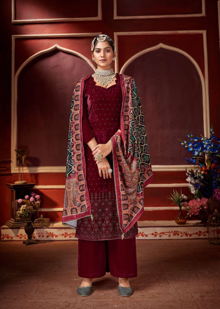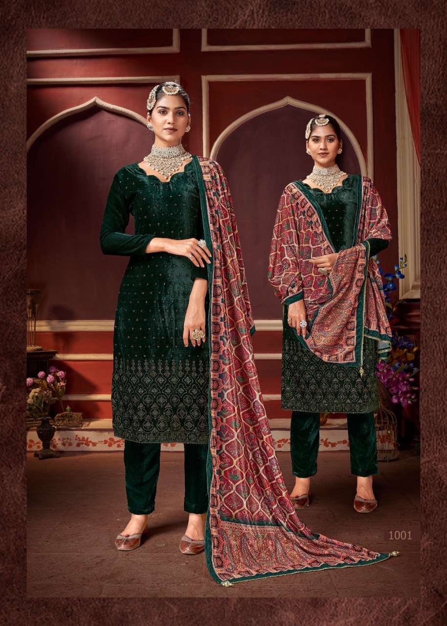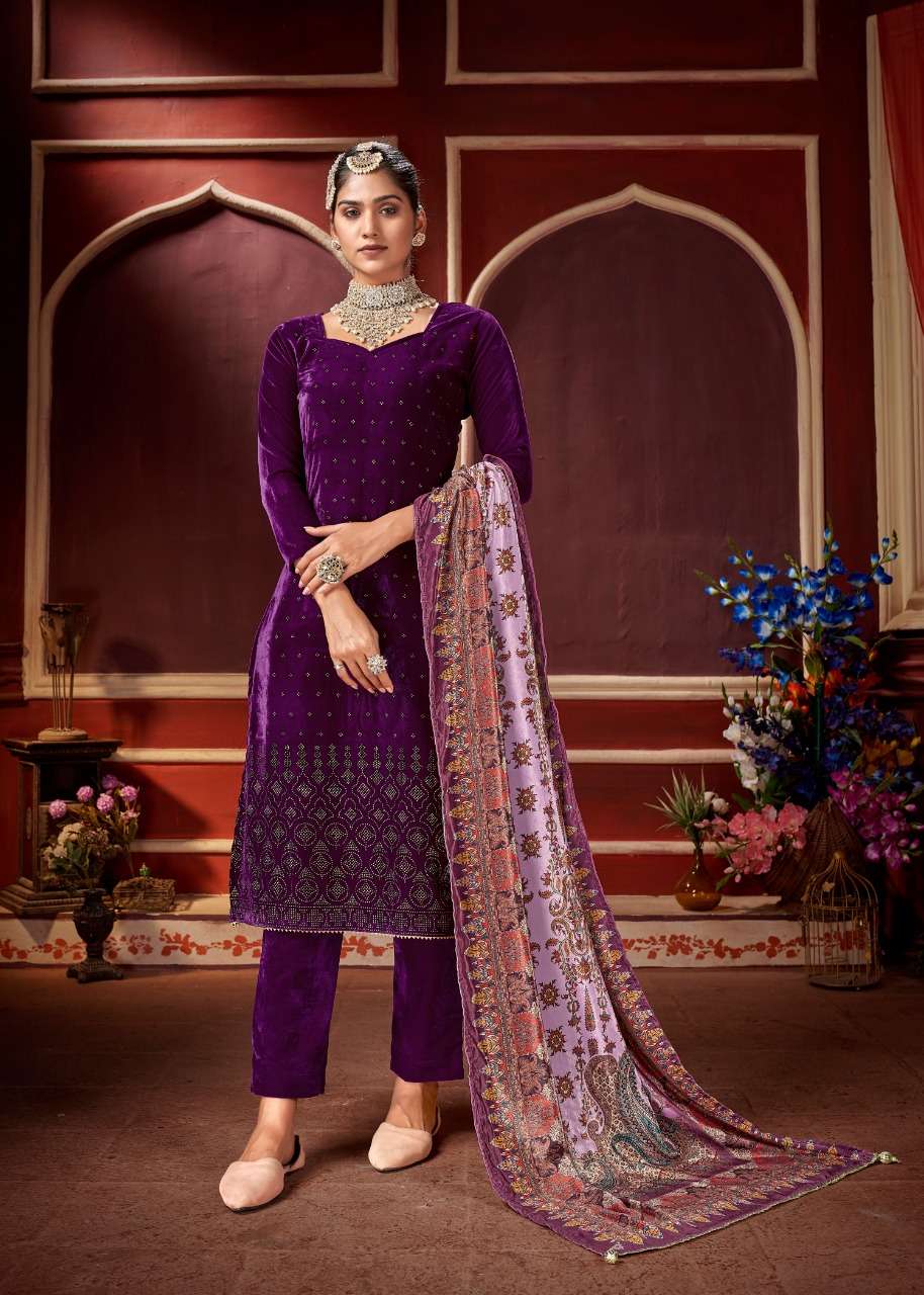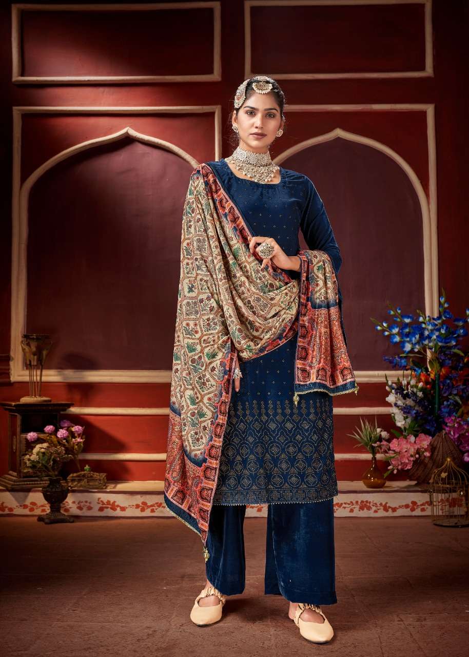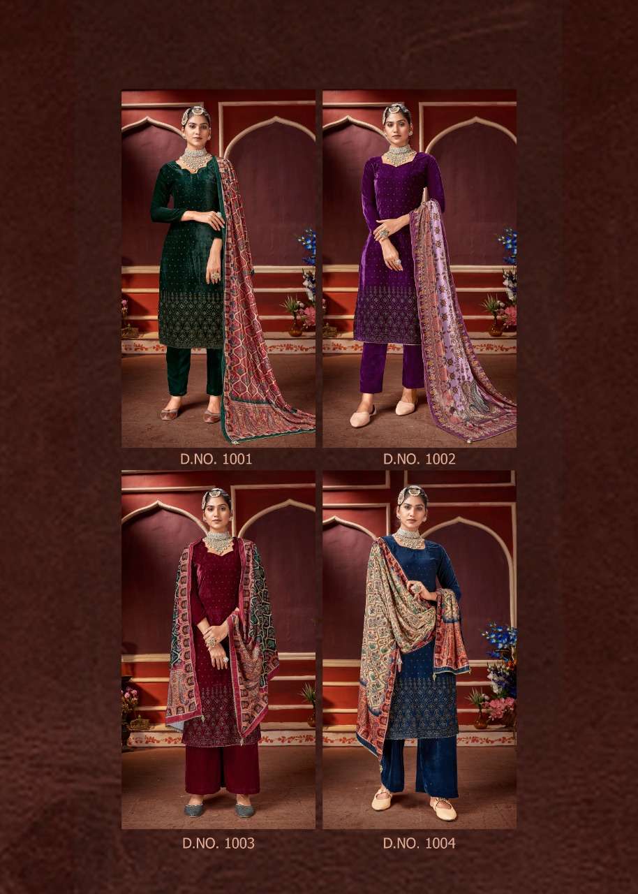 bipson swarovski 1001-1004 series velvet winter dress materials