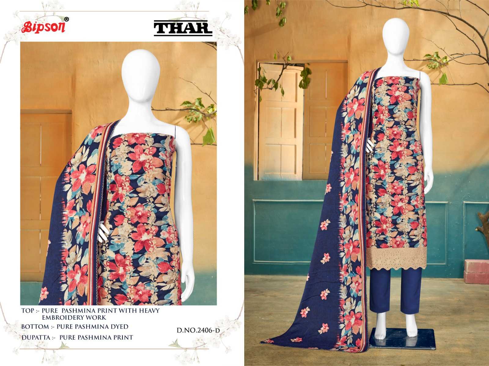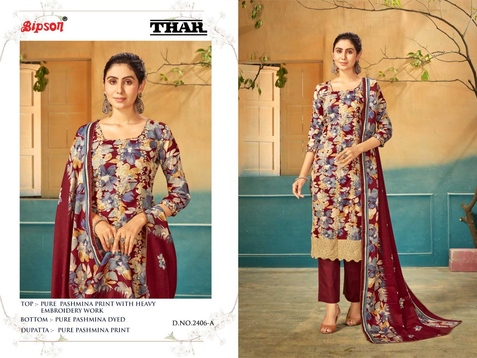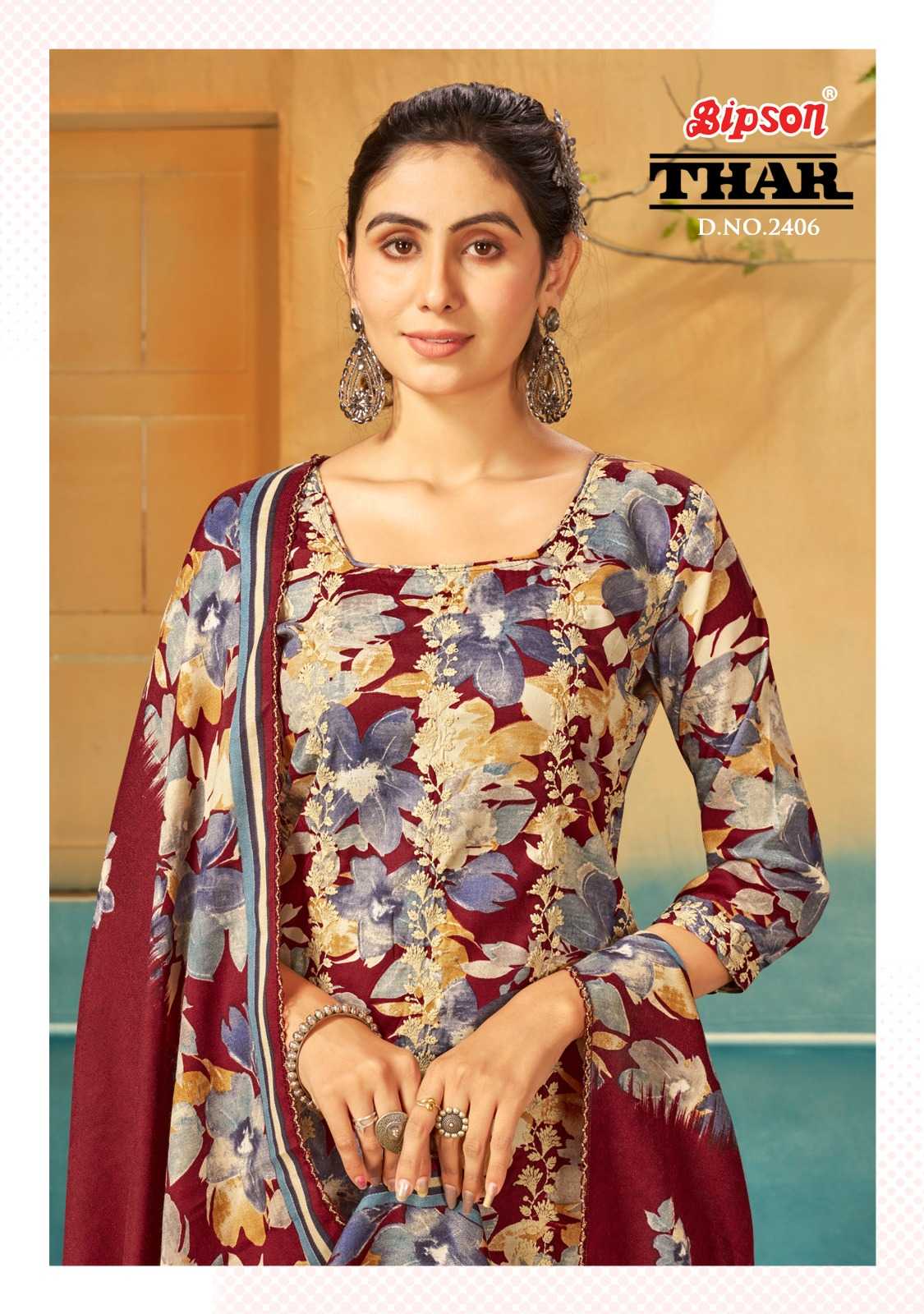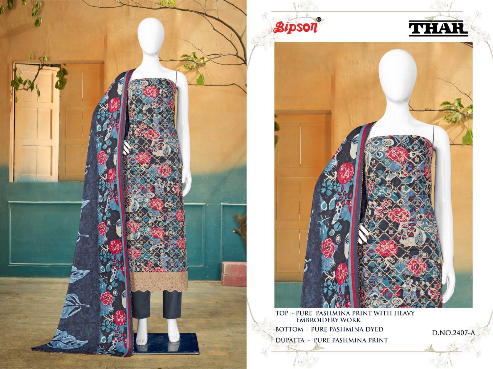 Bipson thar 2406-2407-2408 premium winter collection pashmina printed dress material