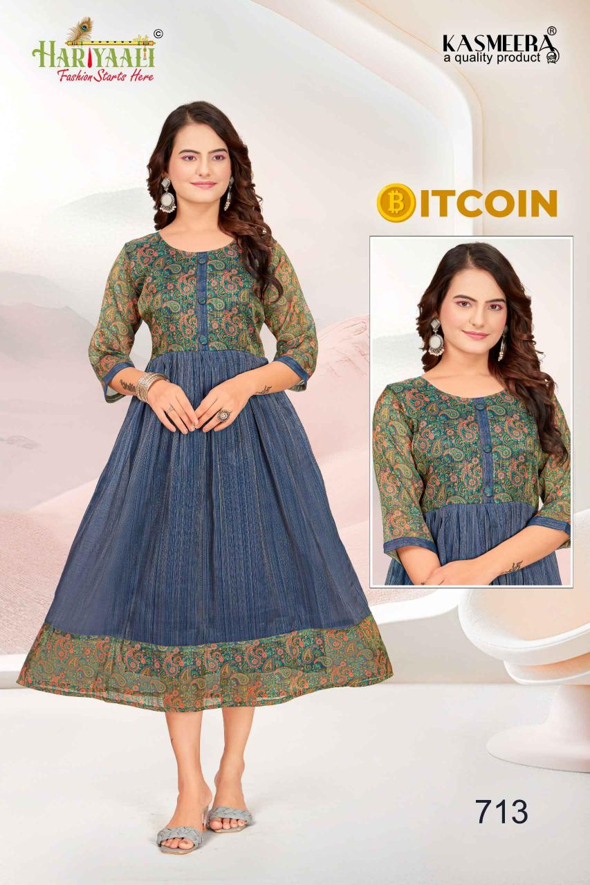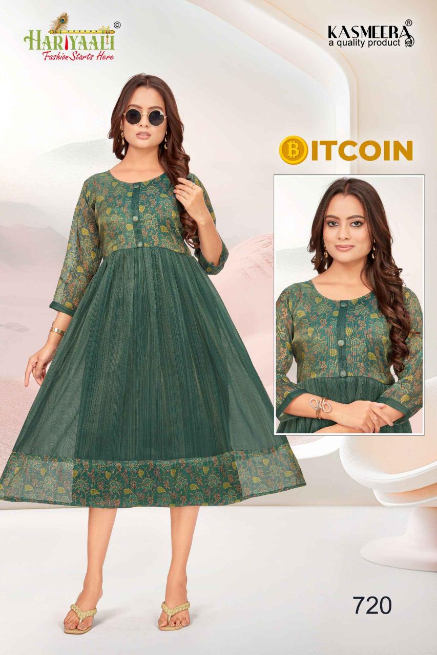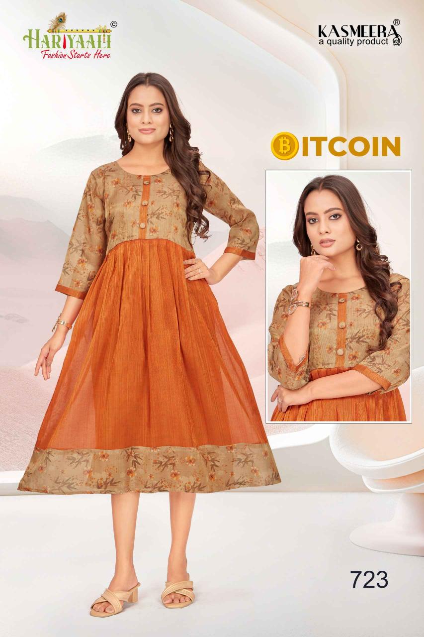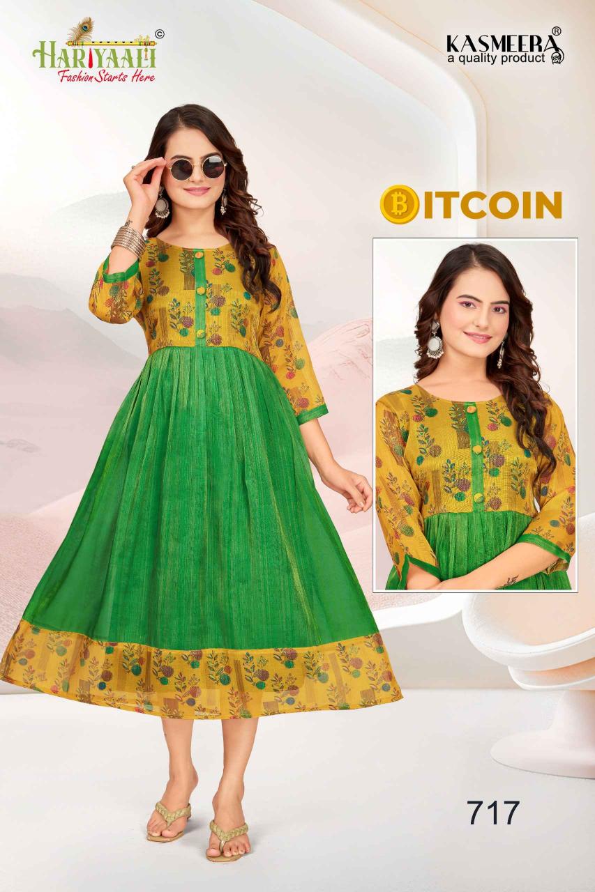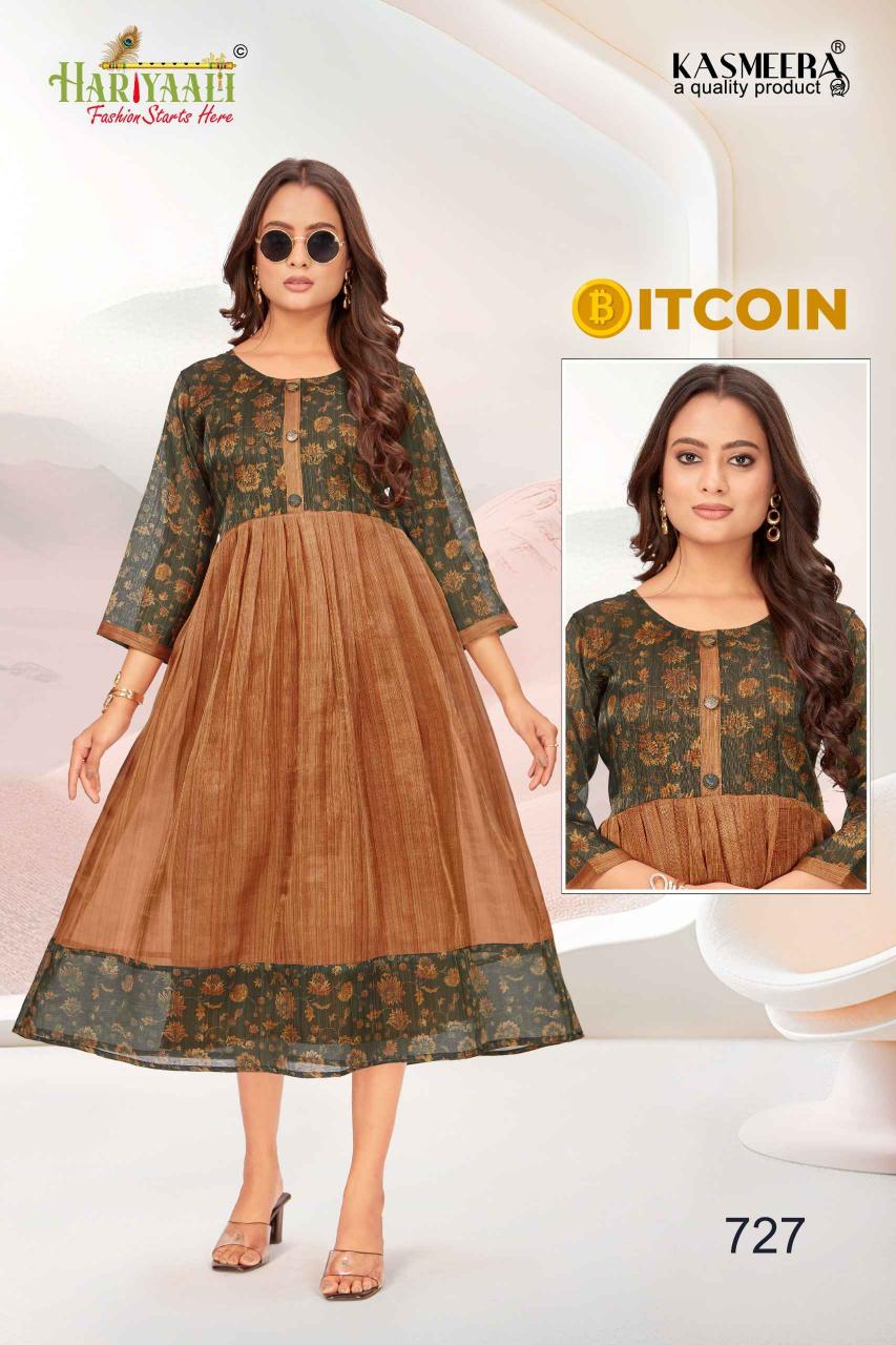 bitcoin vol 7 by hariyaali tissue erode silk combo readymade flair kurti