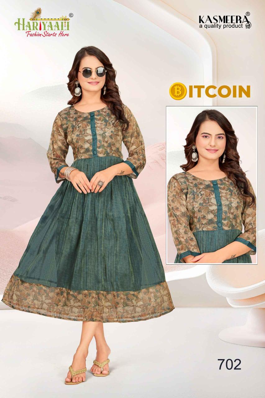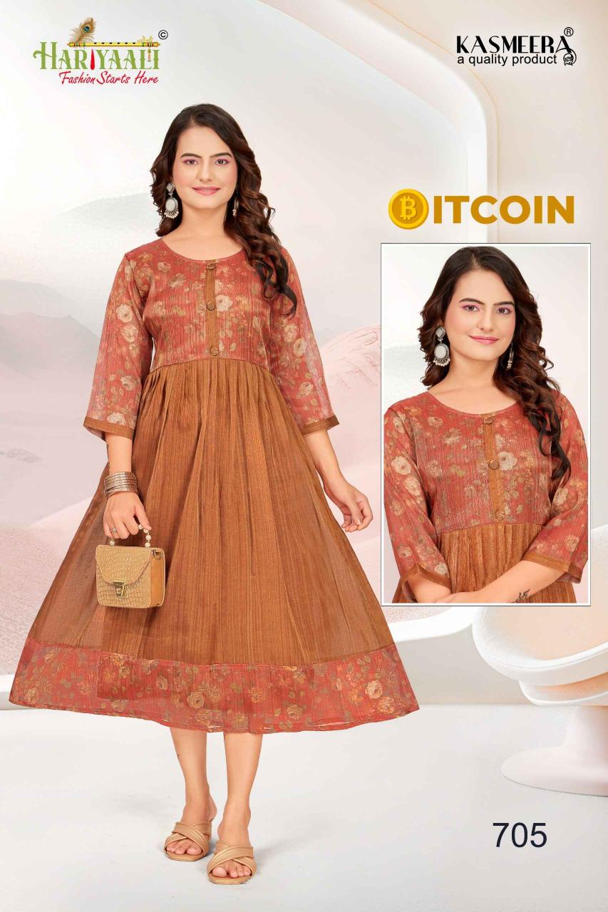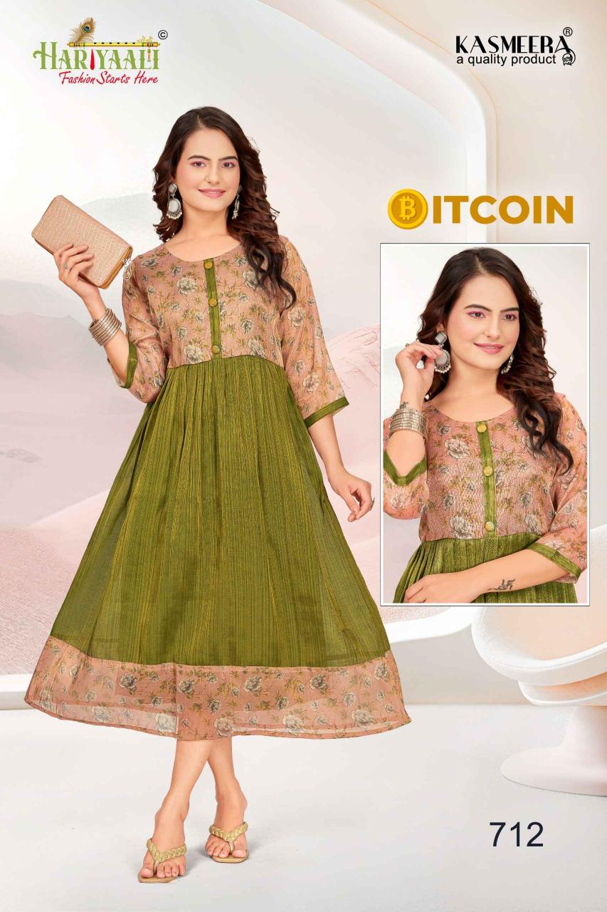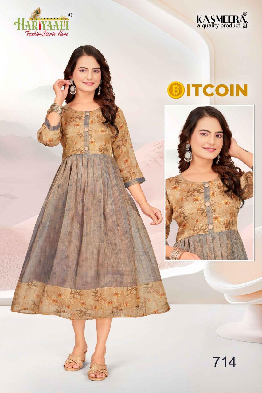 bitcoin vol 7 by hariyaali tissue erode silk combo readymade flair kurti