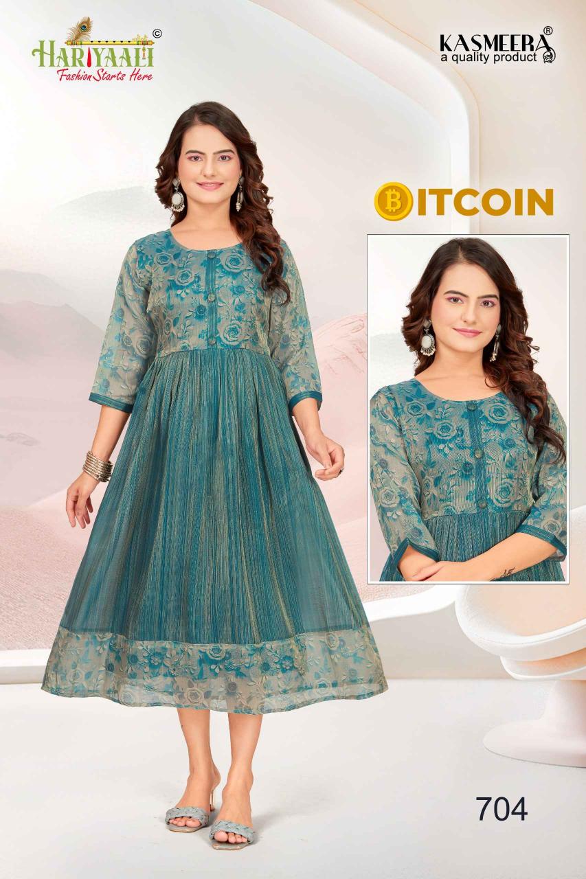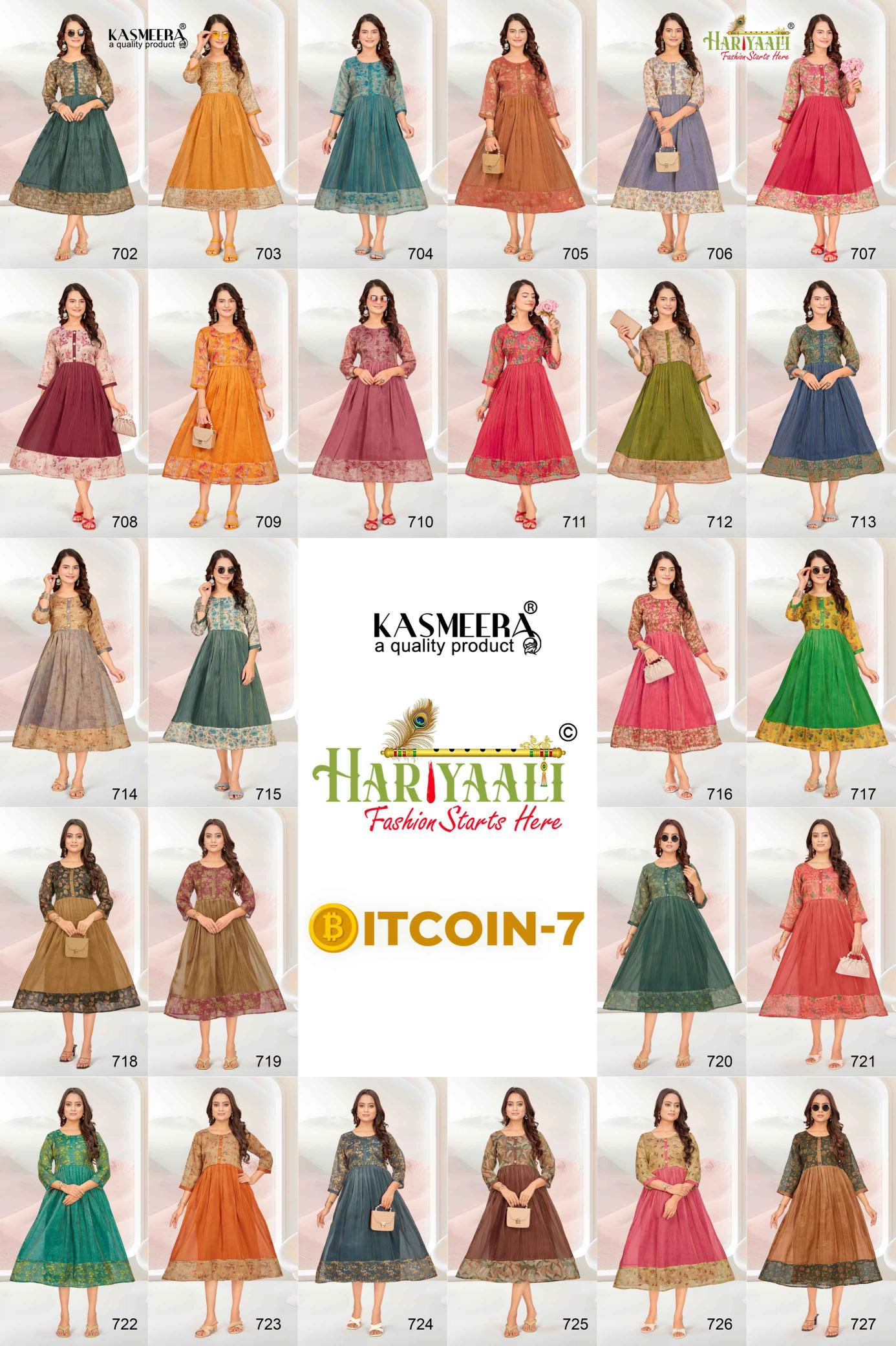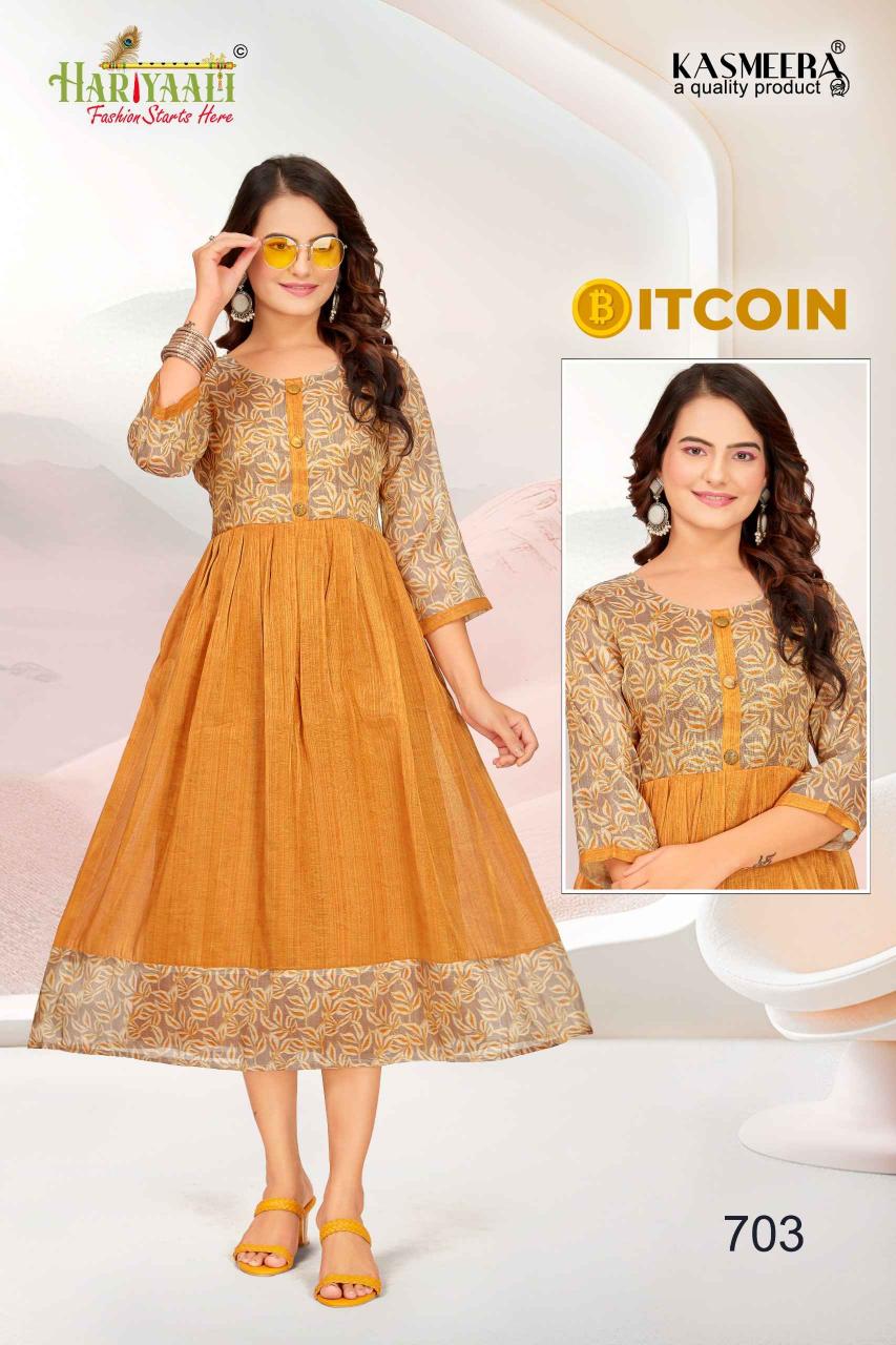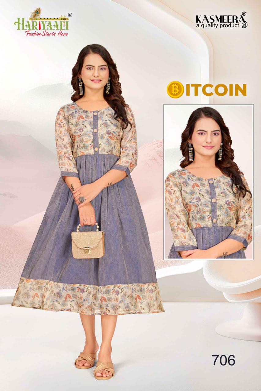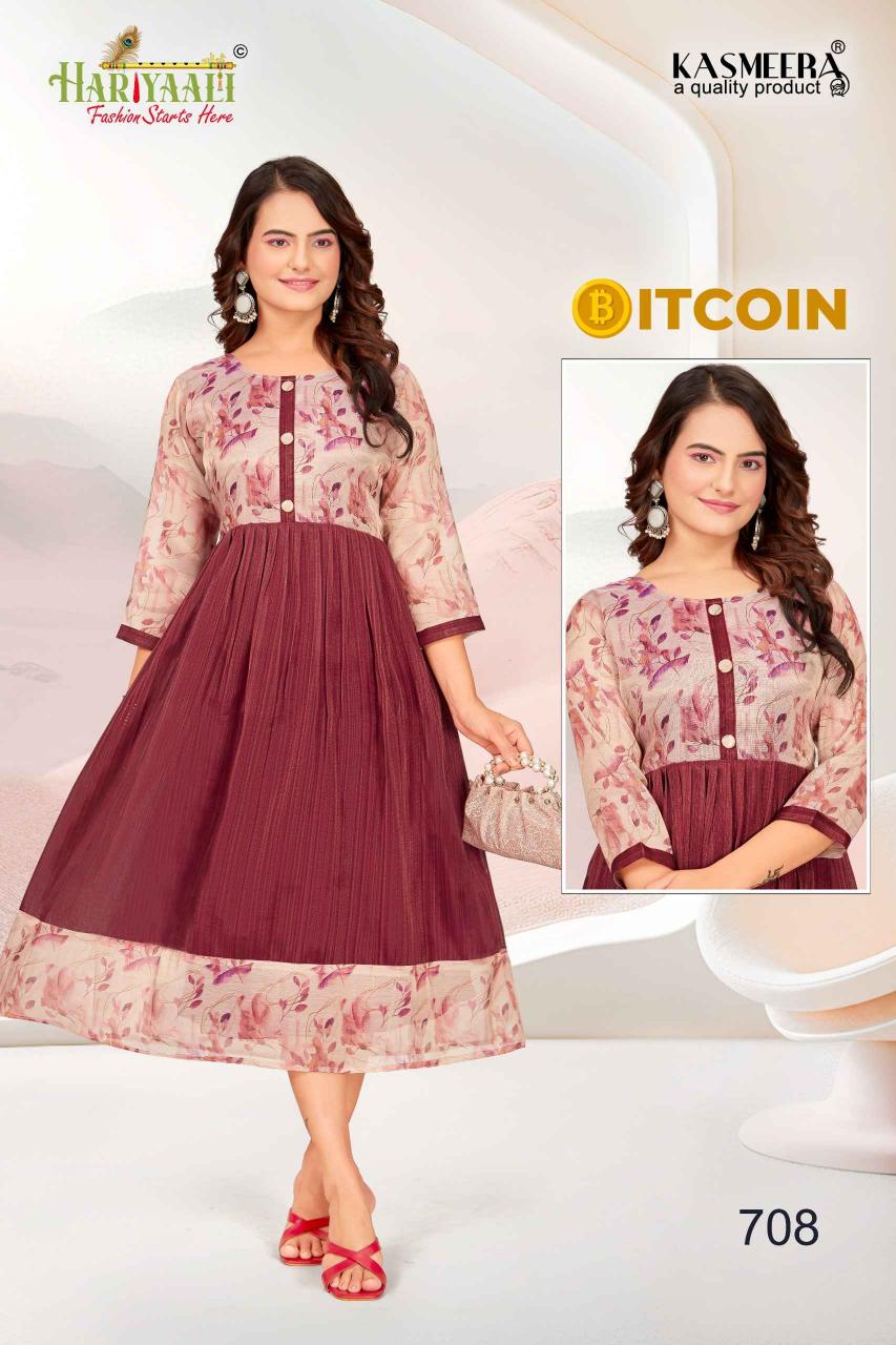 bitcoin vol 7 by hariyaali tissue erode silk combo readymade flair kurti