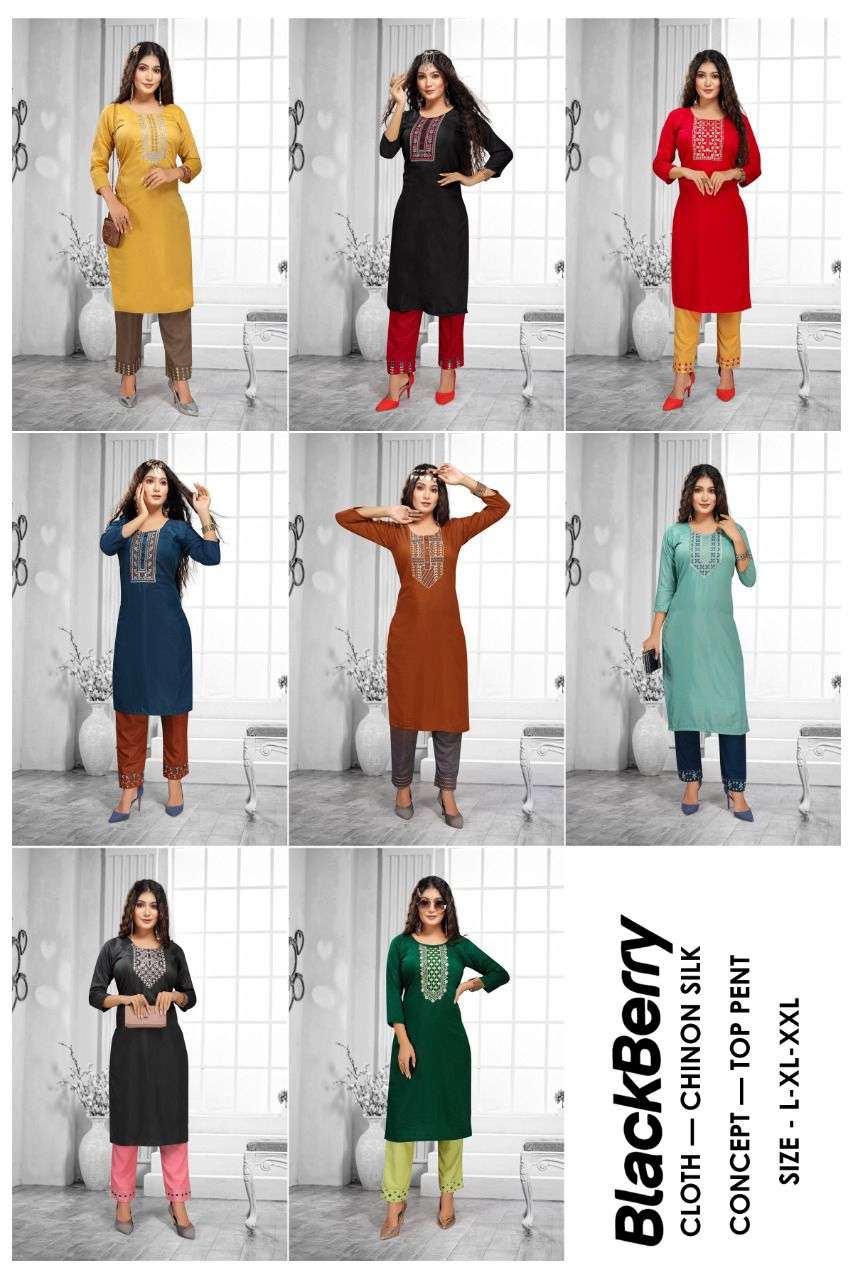 BLACK BERRY BY BEAUTY QUEEN HEAVY CHINON SILK ( WITH INNER ) TOP PANT EMBROIDERY WORK CATLOG WHOLESALER BEST RATE