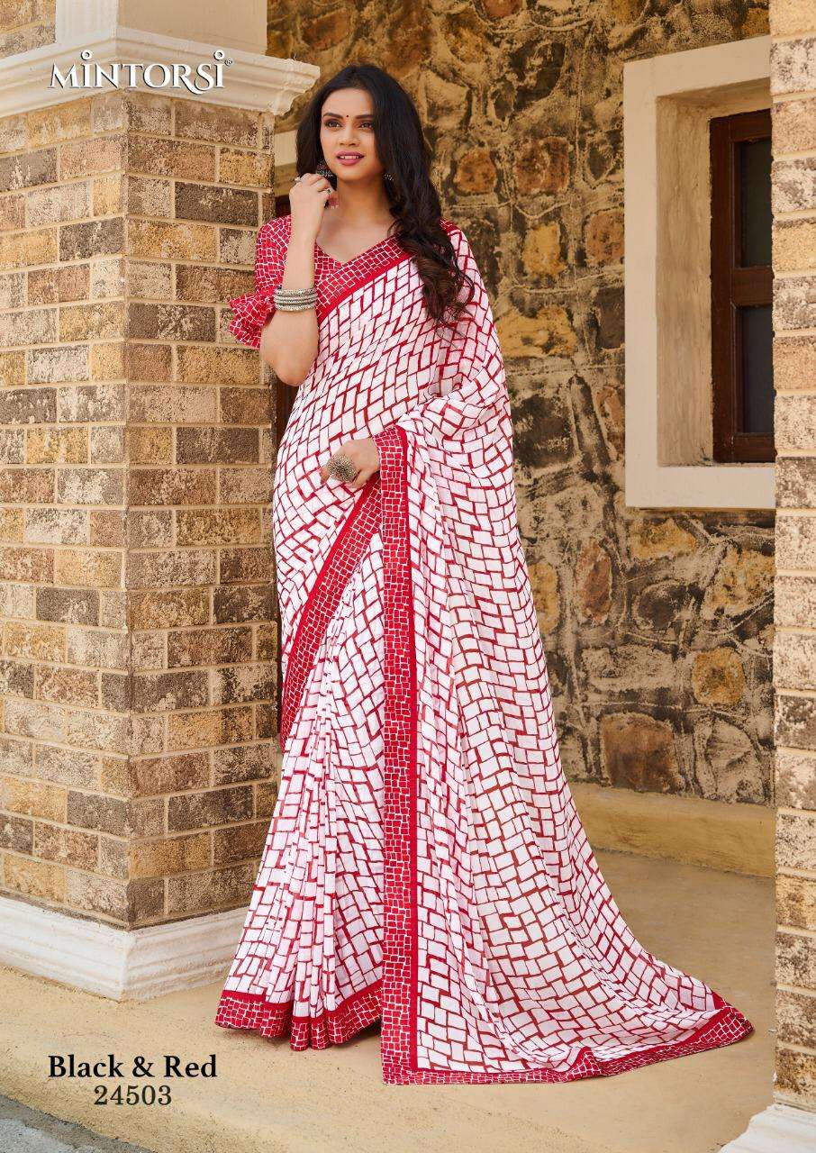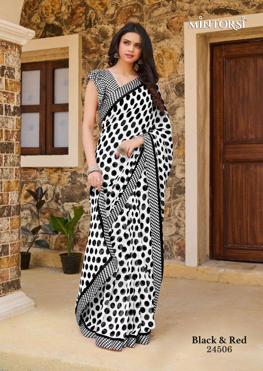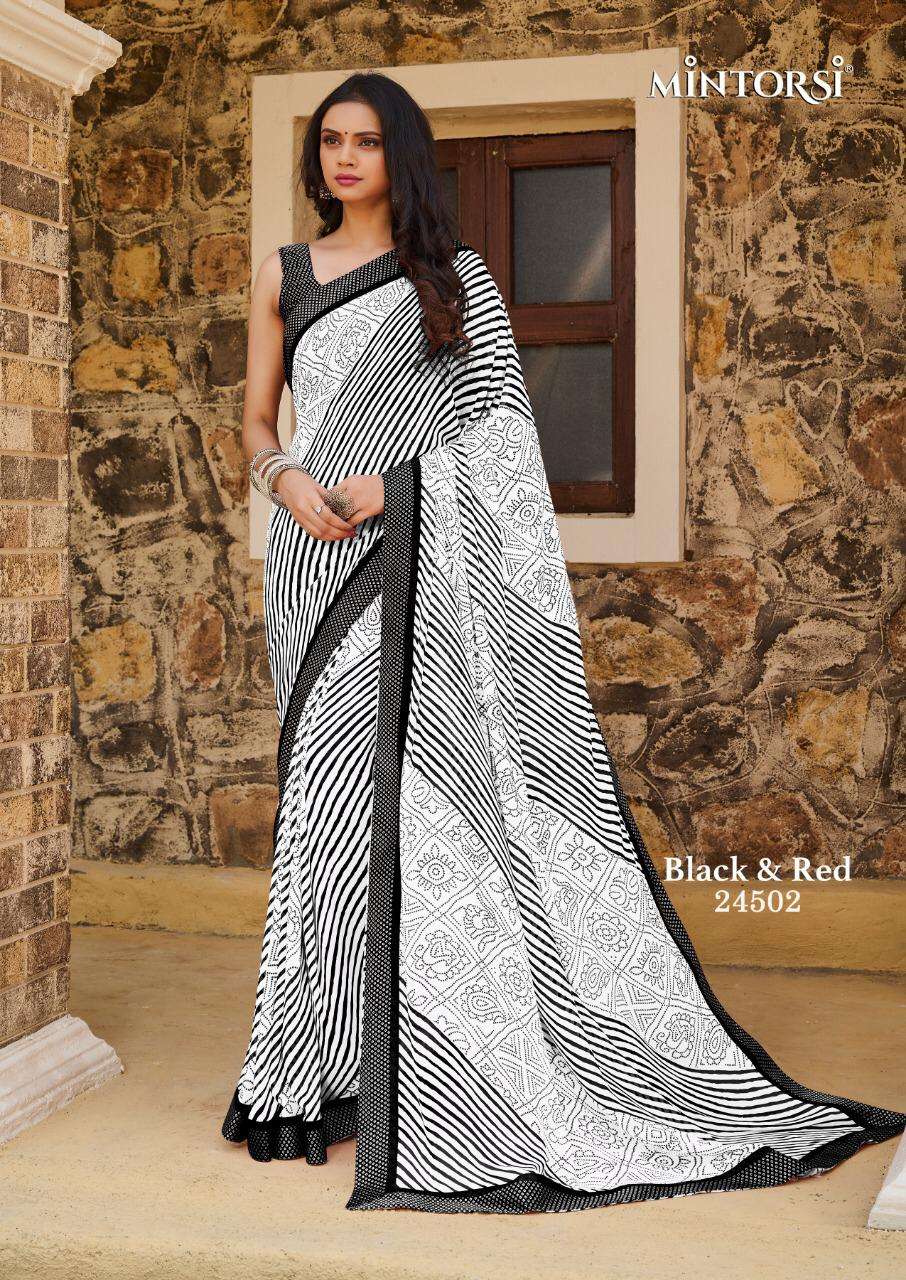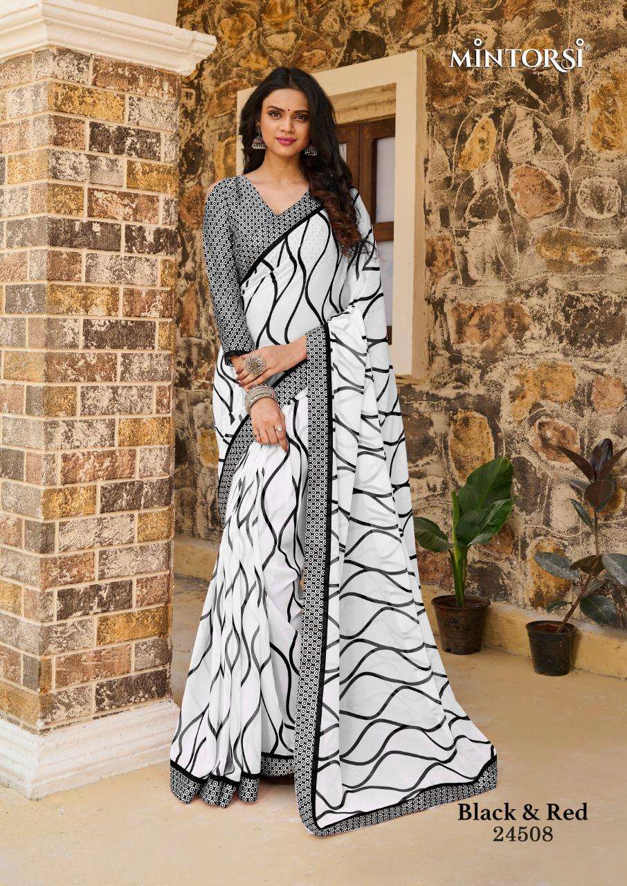 black & red vol 2 by mintorsi weightless satin printed saree wholesaler
