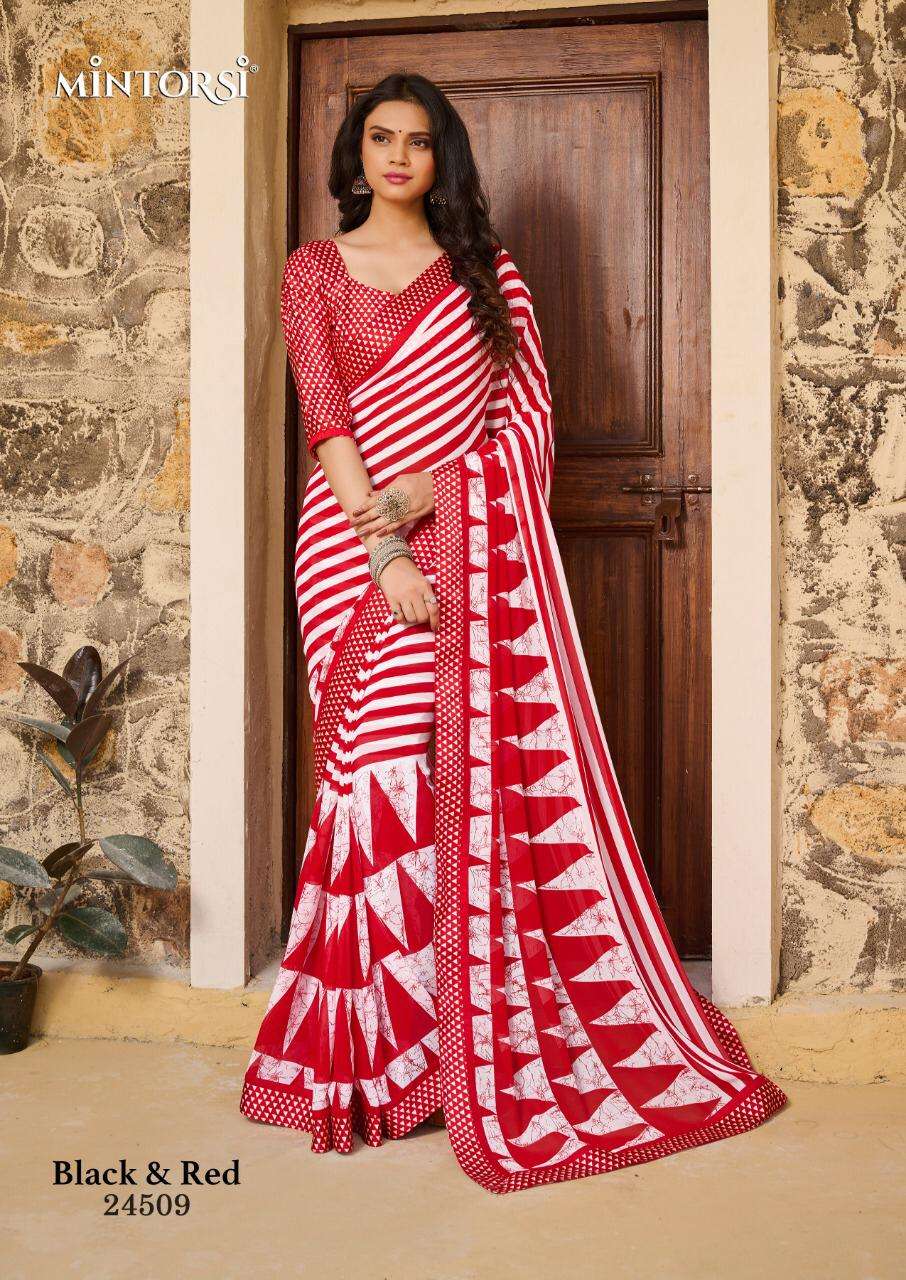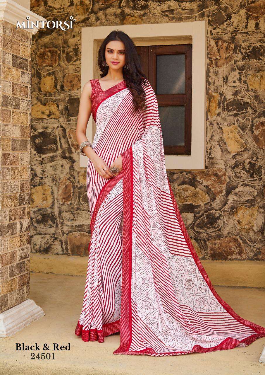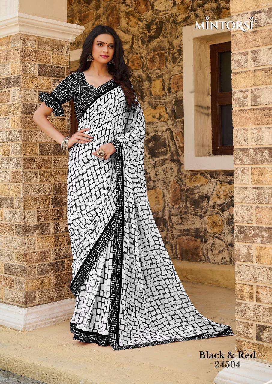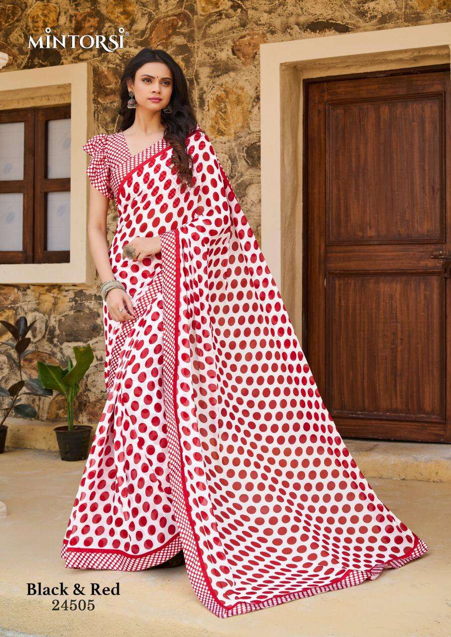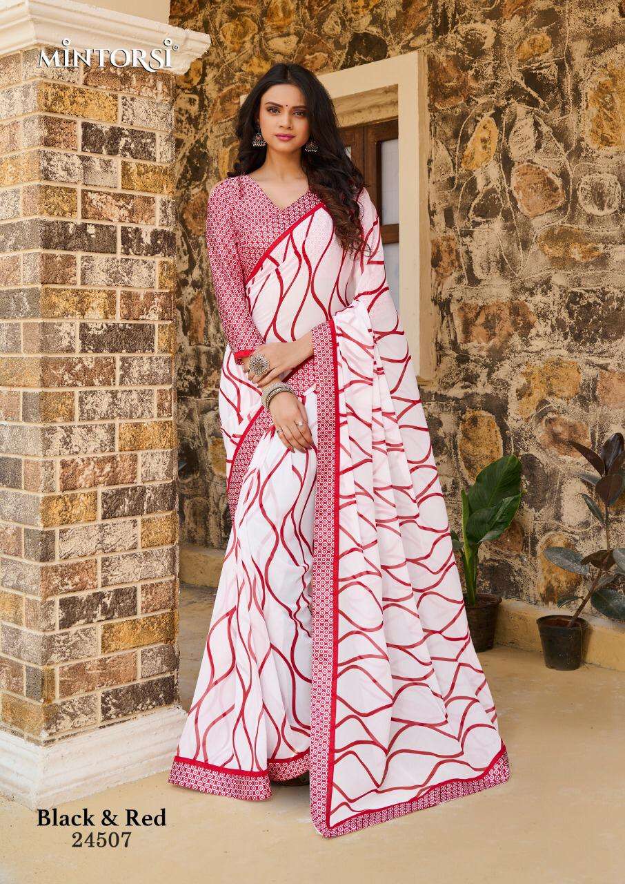 black & red vol 2 by mintorsi weightless satin printed saree wholesaler