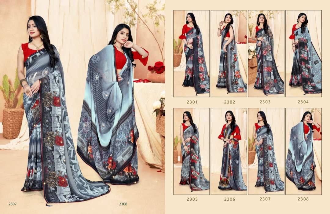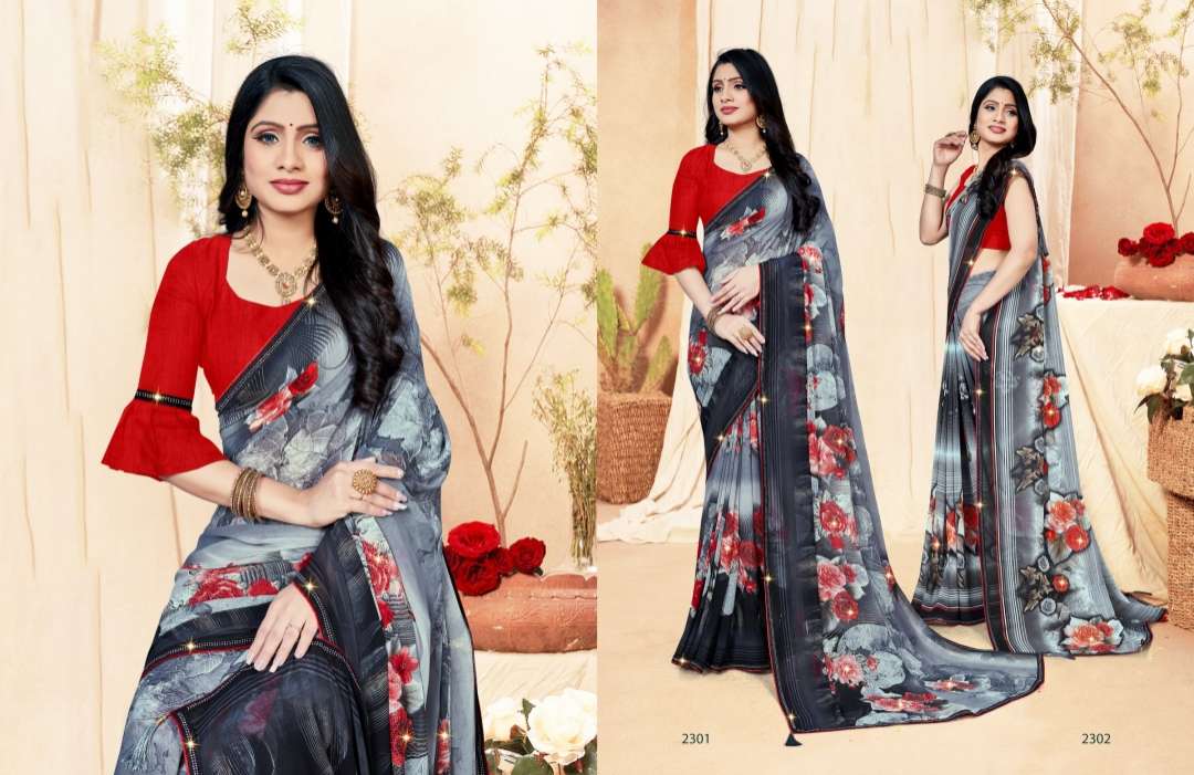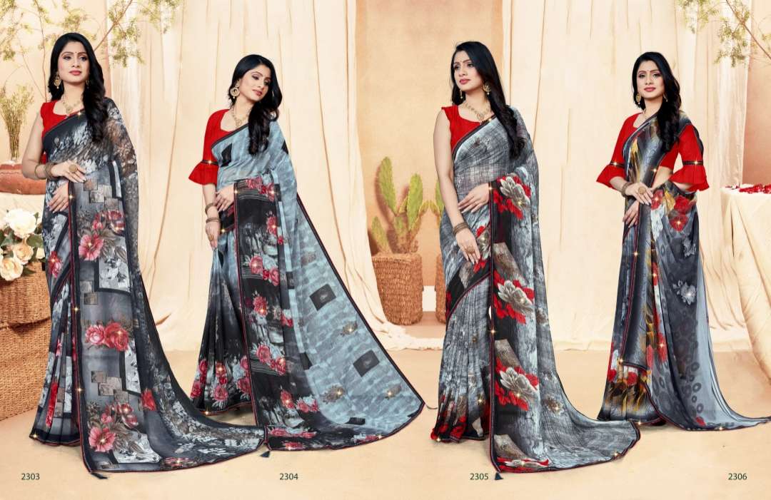 black & white by saroj printed georgette casual wear sarees