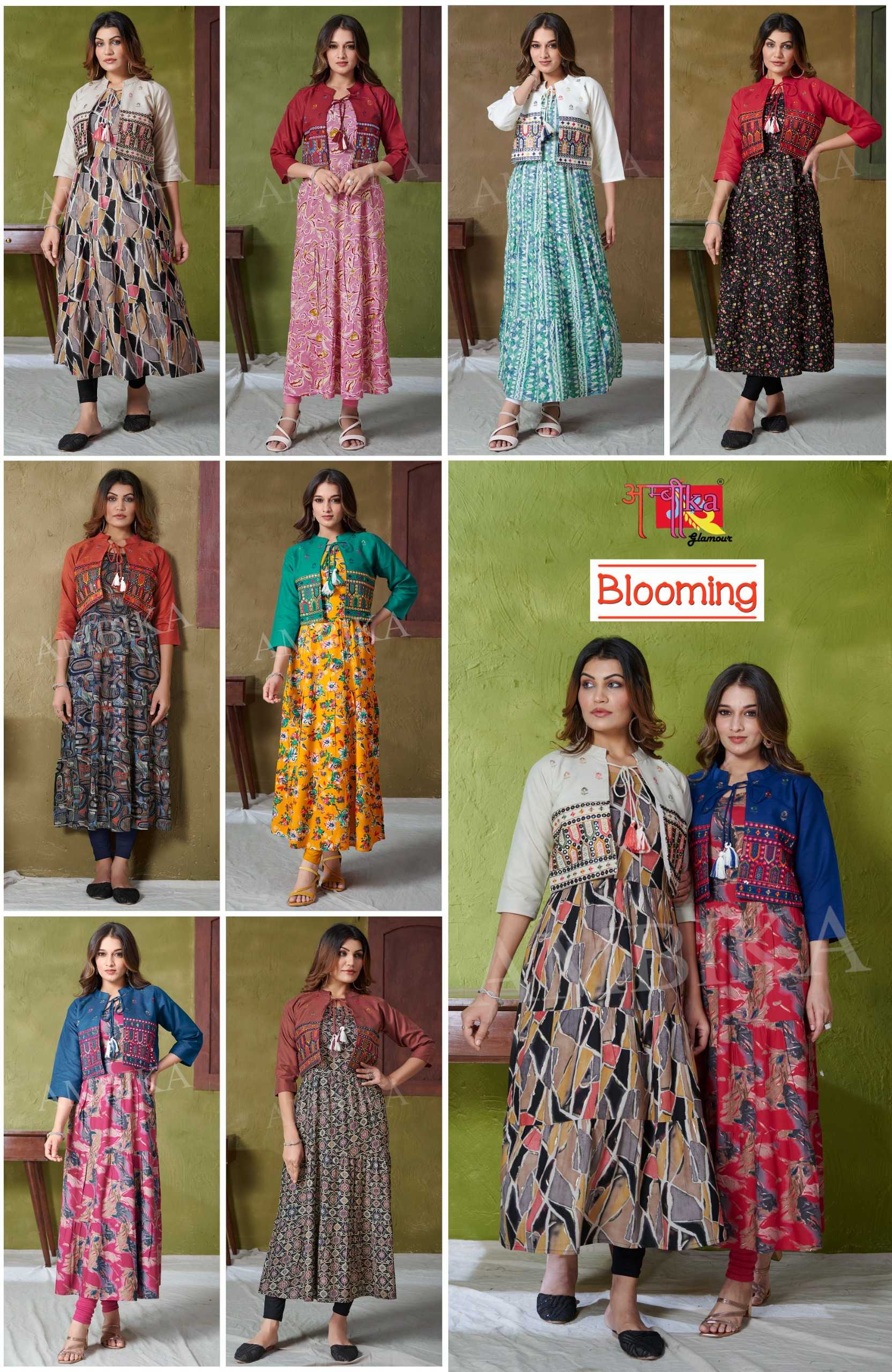 *🟪Ambika kurtis🟦* Design name: *Blooming 🤹♀️* rate 570/- |