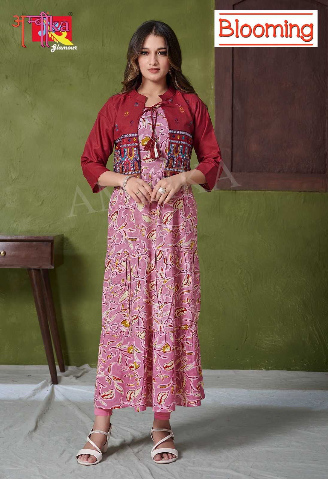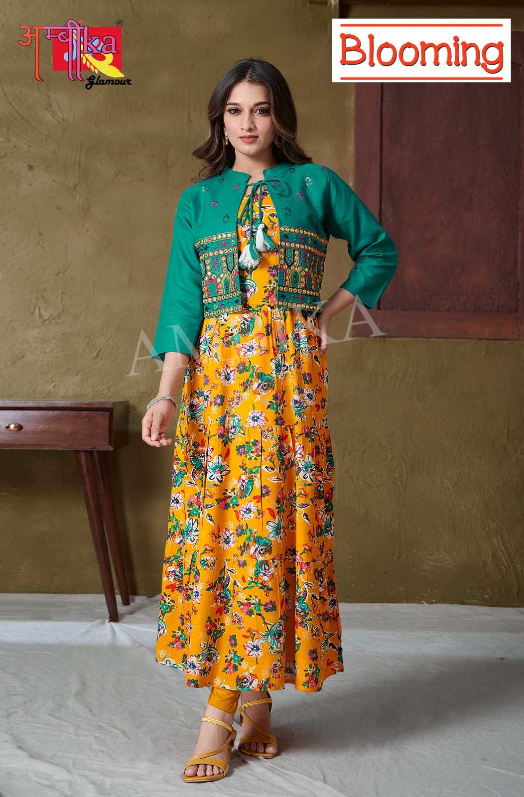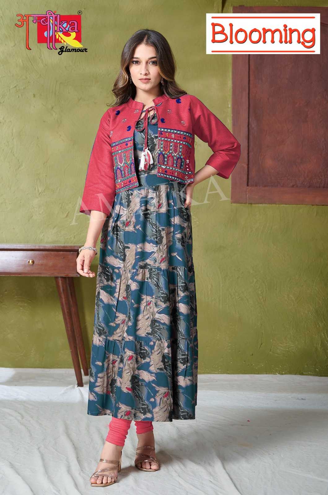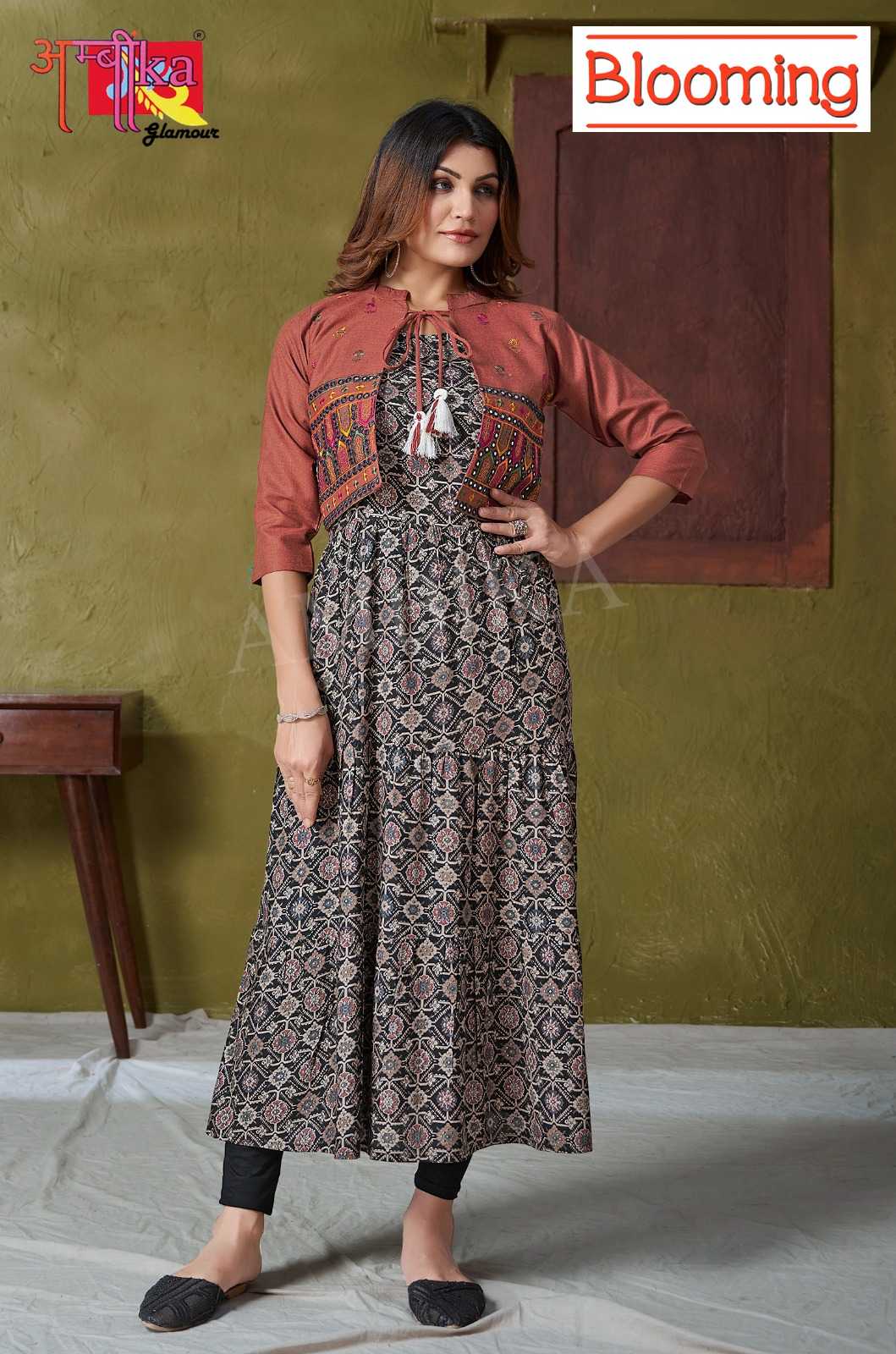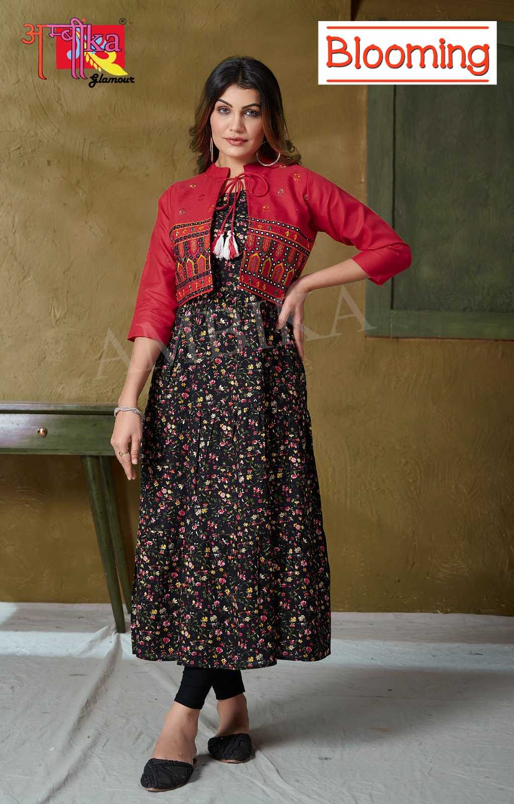 blooming by ambika readymade embroidery work separate jacket combo set flair kurti