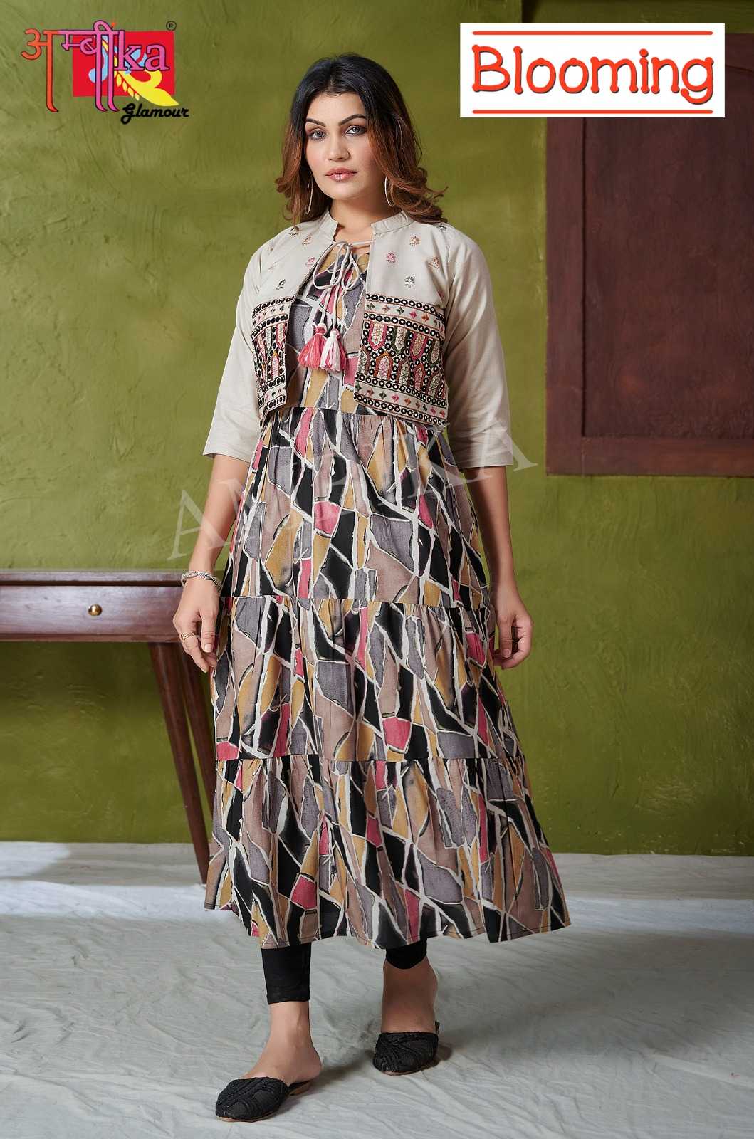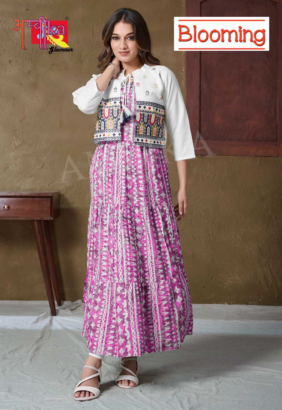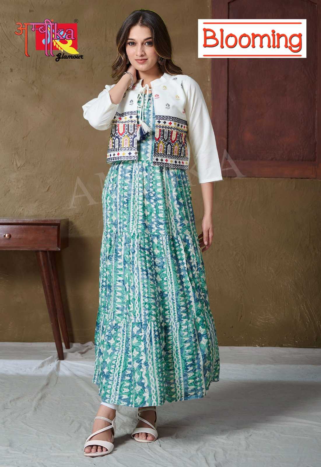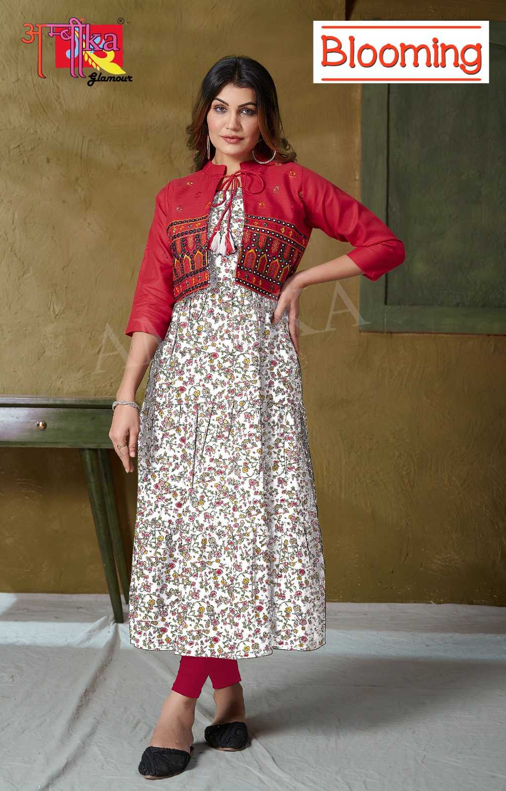 blooming by ambika readymade embroidery work separate jacket combo set flair kurti