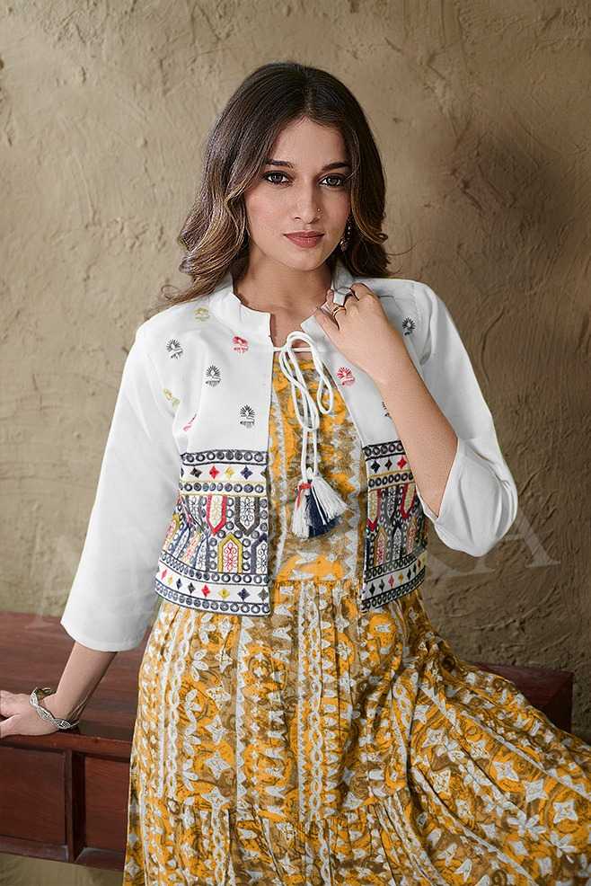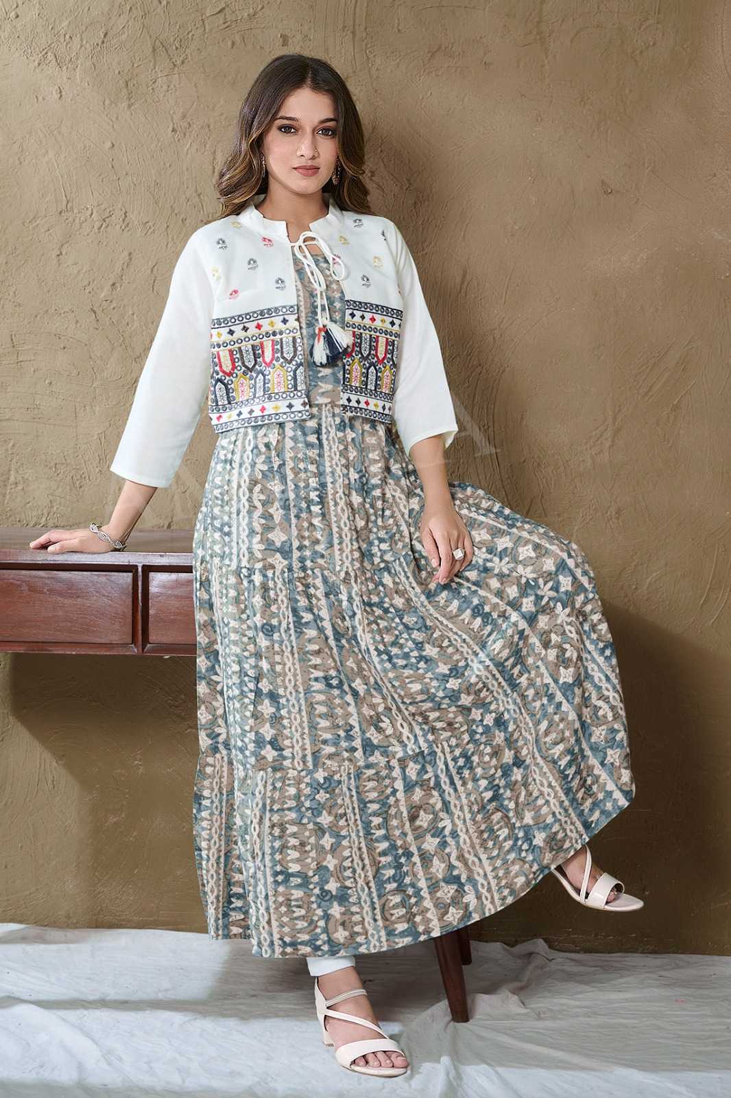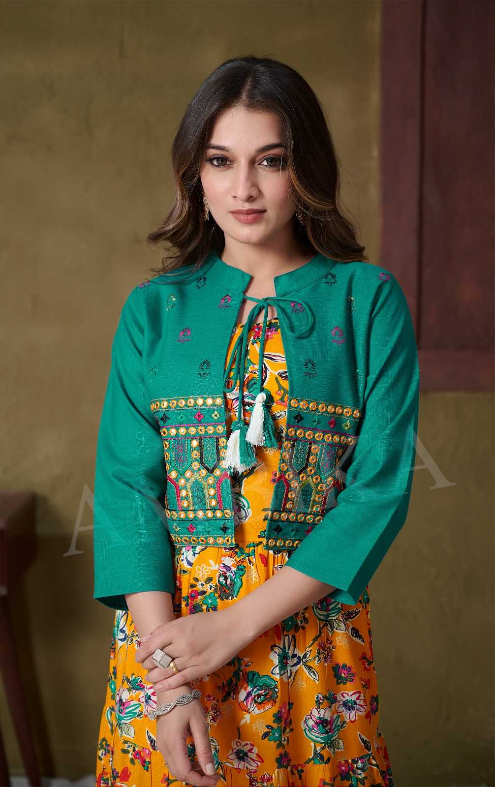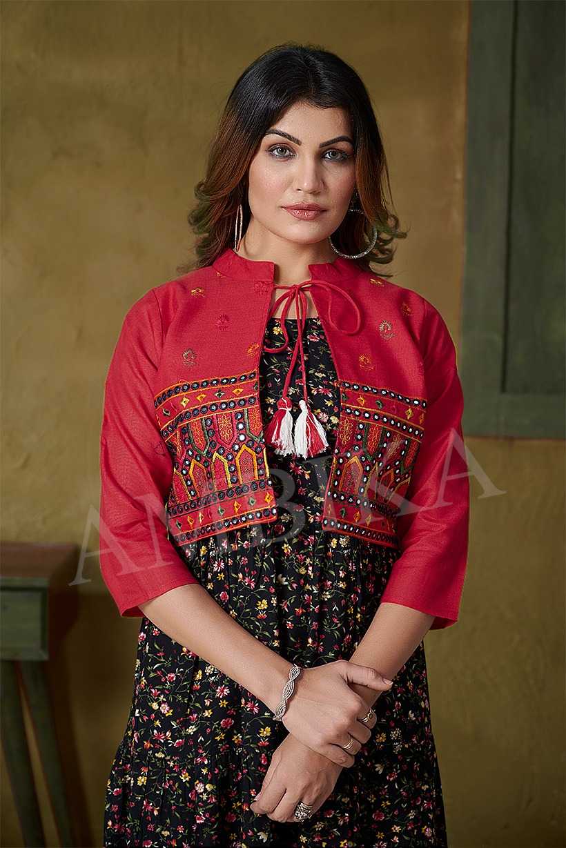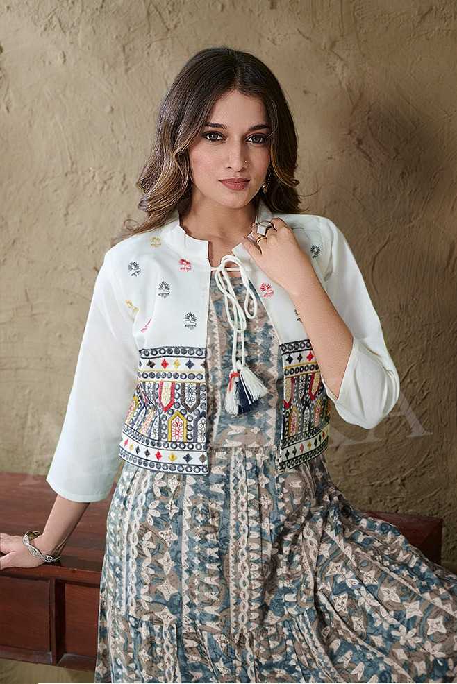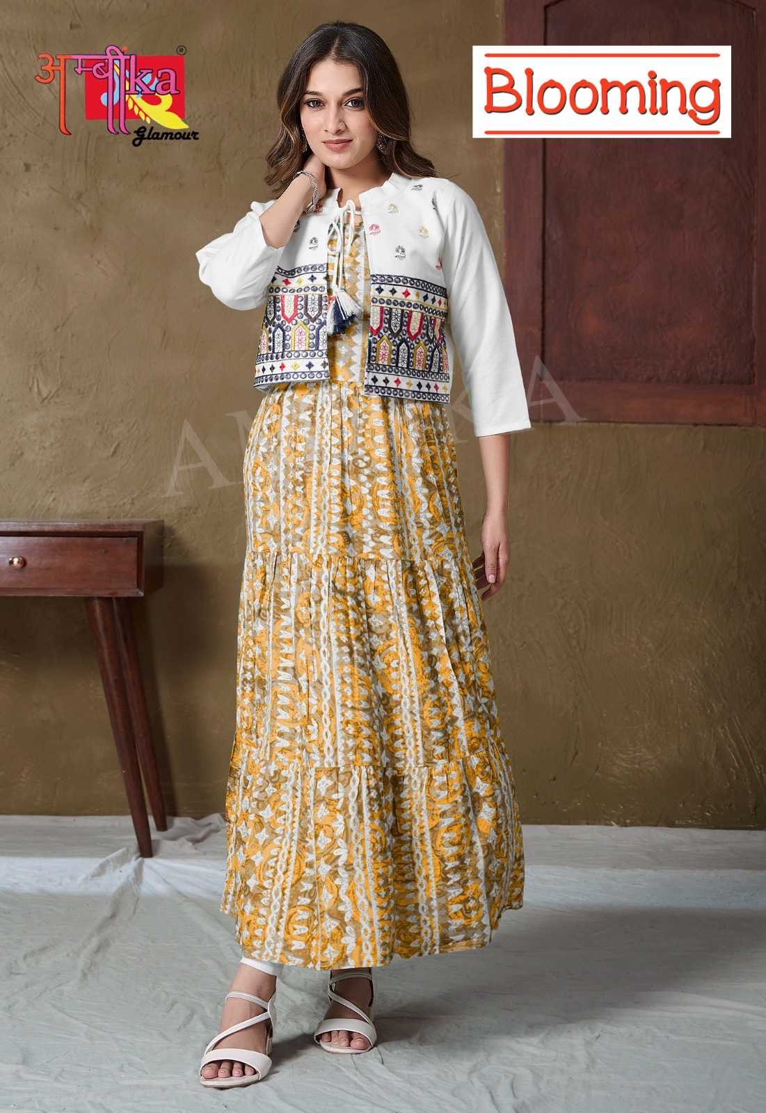 blooming by ambika readymade embroidery work separate jacket combo set flair kurti