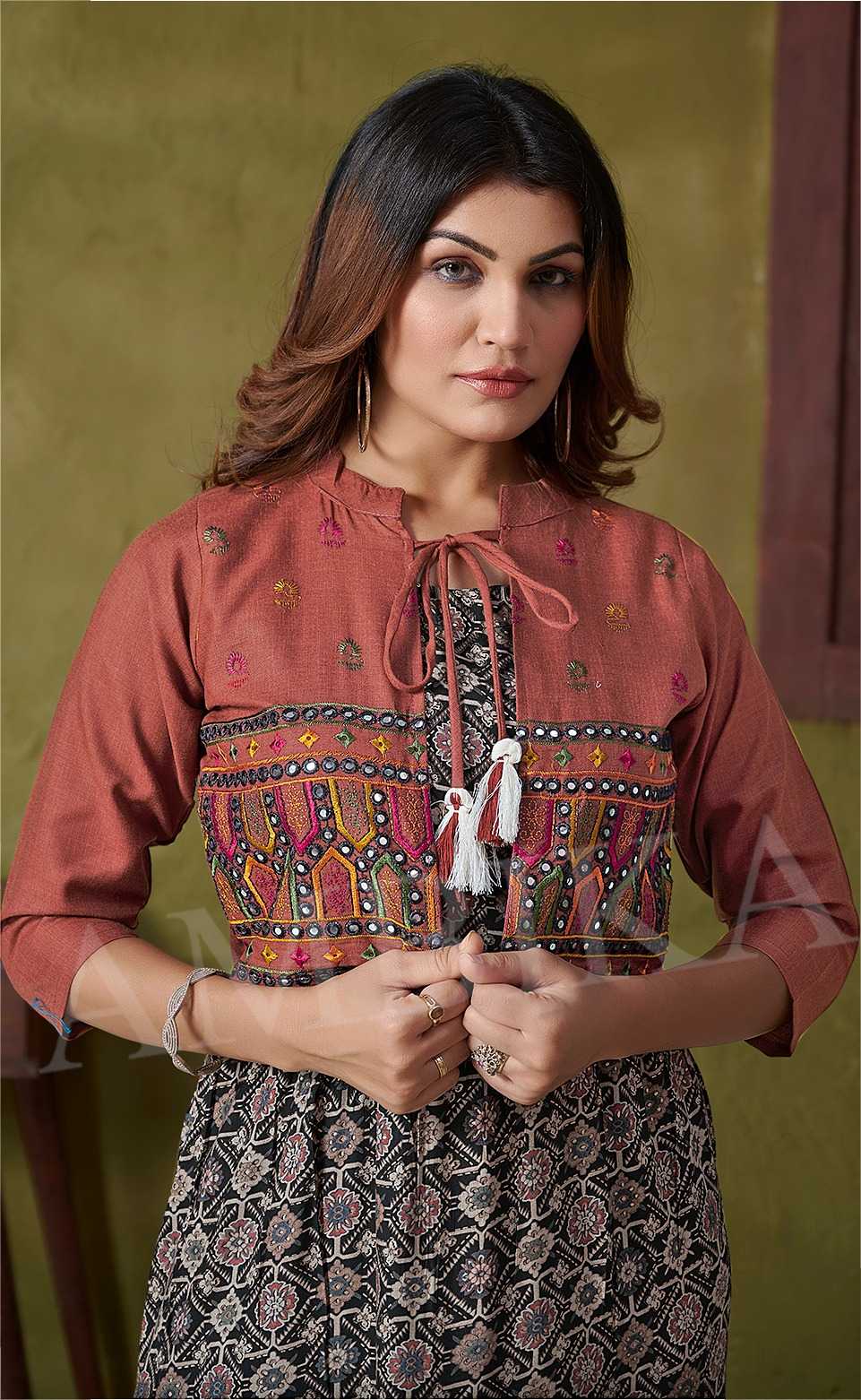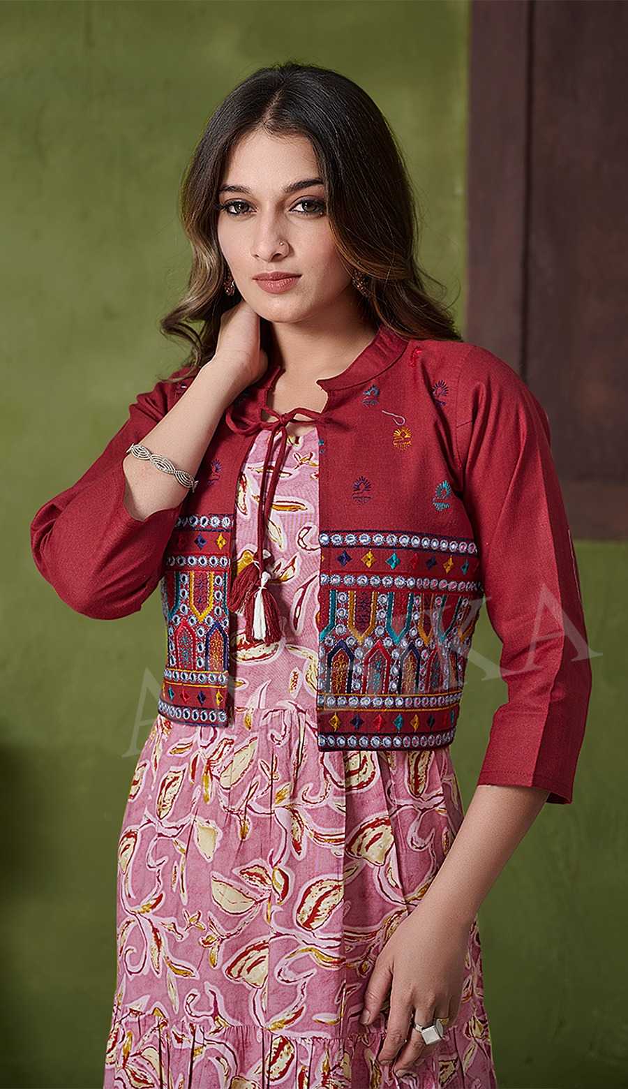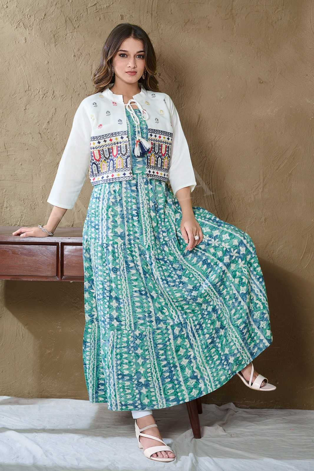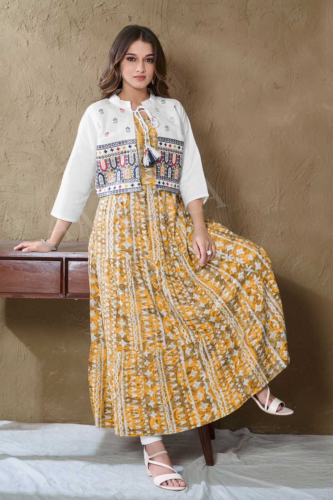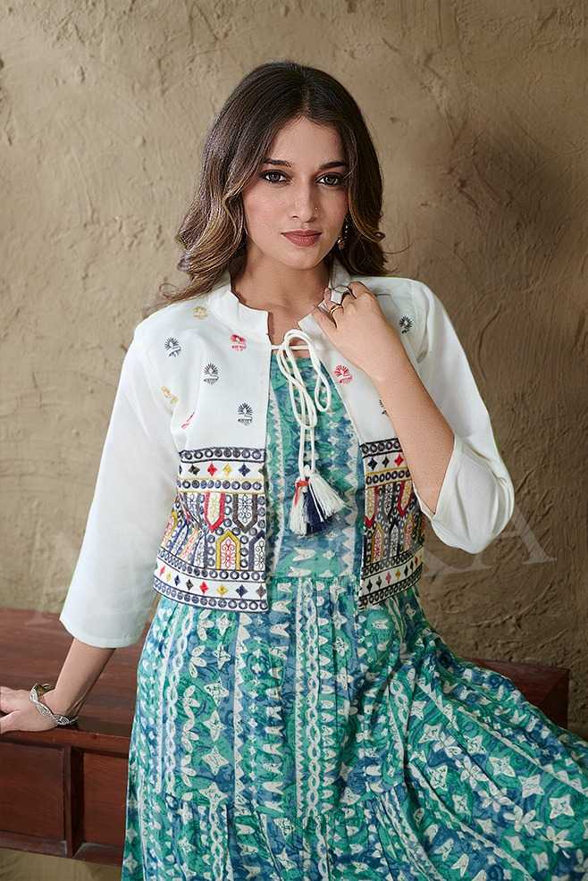 blooming by ambika readymade embroidery work separate jacket combo set flair kurti