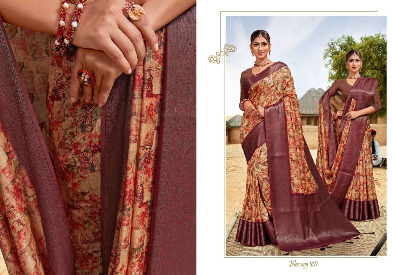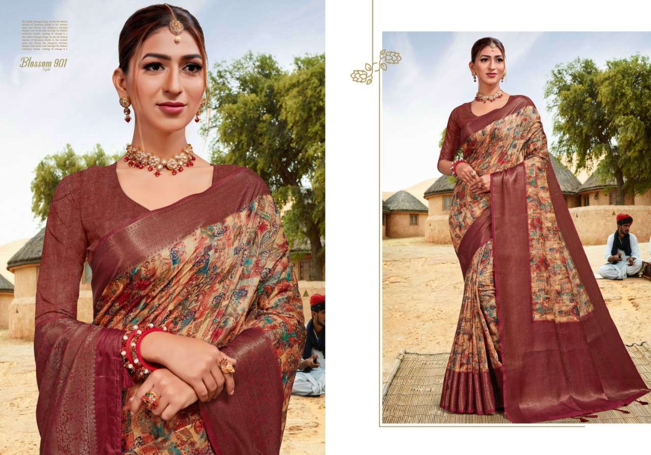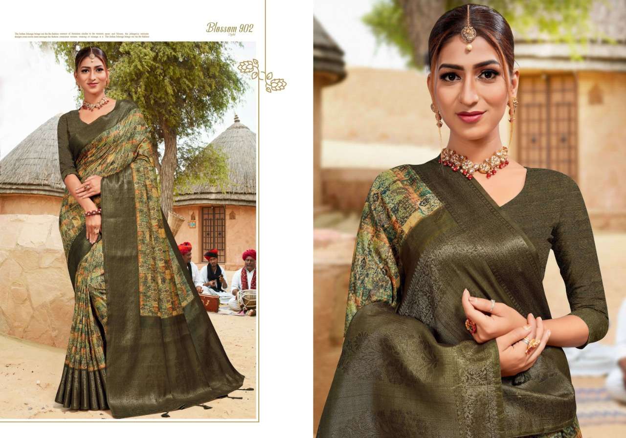 blossom digital by mintorsi banarasi cotton rich pallu fancy saree