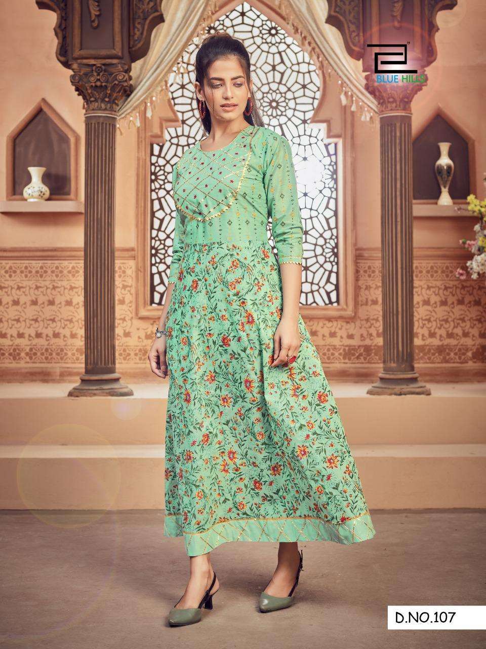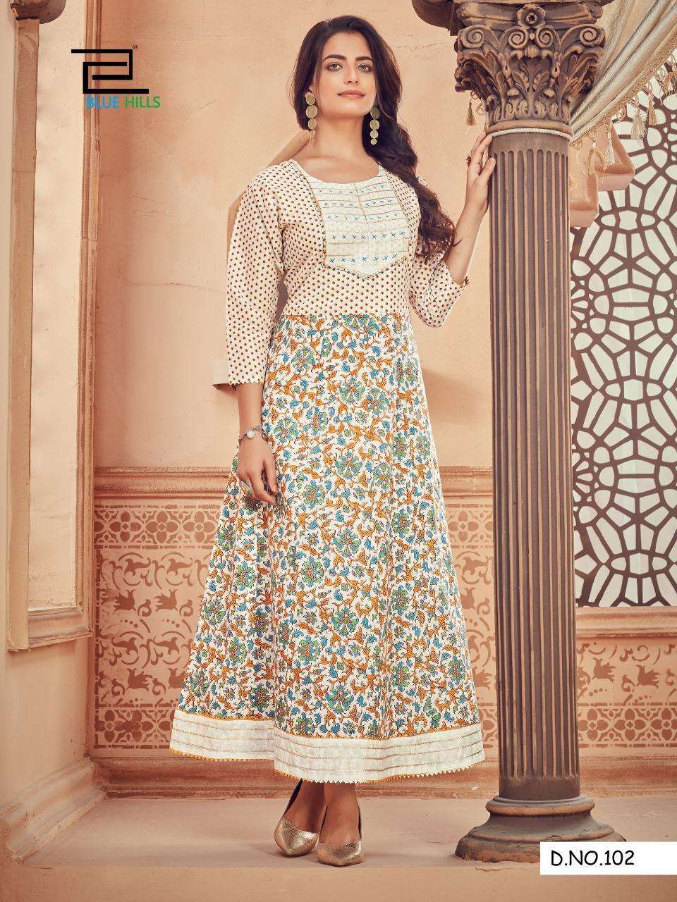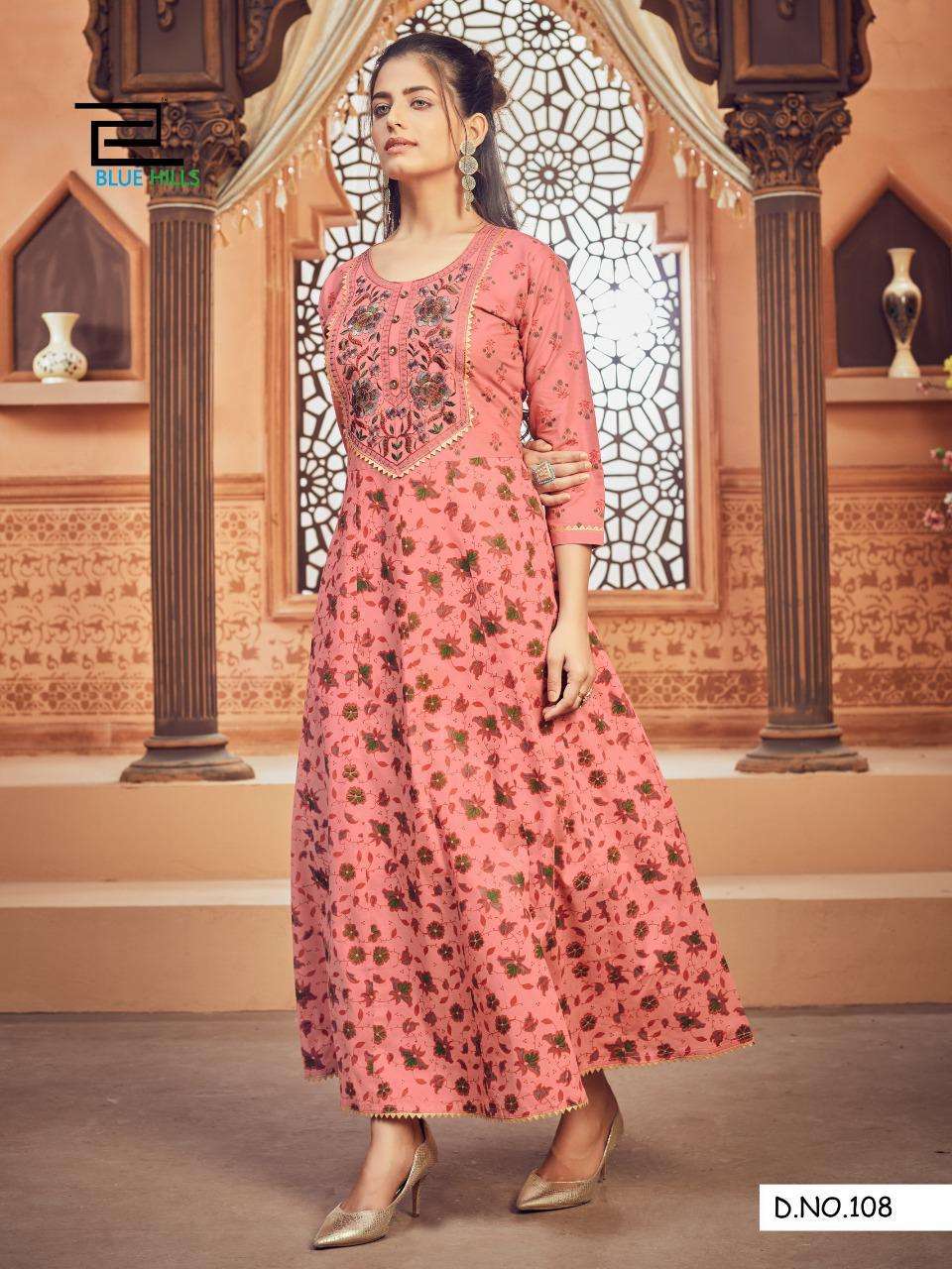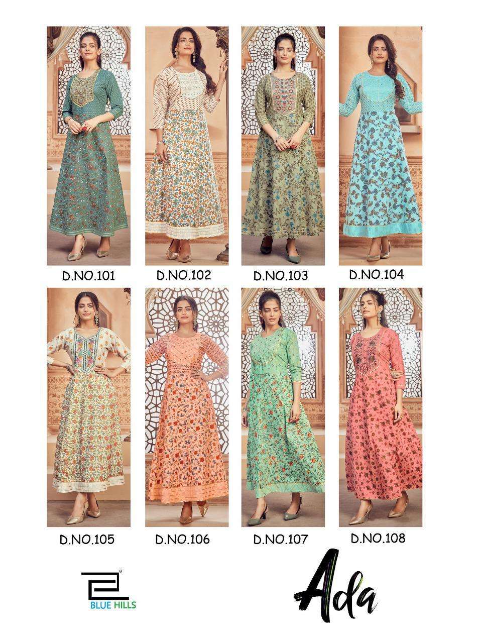 BLUE HILLS For This season blue hills Has Coming As.... ADA - ANARKALI Presents,  Ada Vol-1 Fabric  cotton Camric malmal print Inner:- cotton Concept:-  Anarkali With neck thread embroidery (with gota pati lace) Length:- 50"+ - M,L ,XL,XXL,XXXL Rate - 599+GST Set to set Design :- 8 PC |
