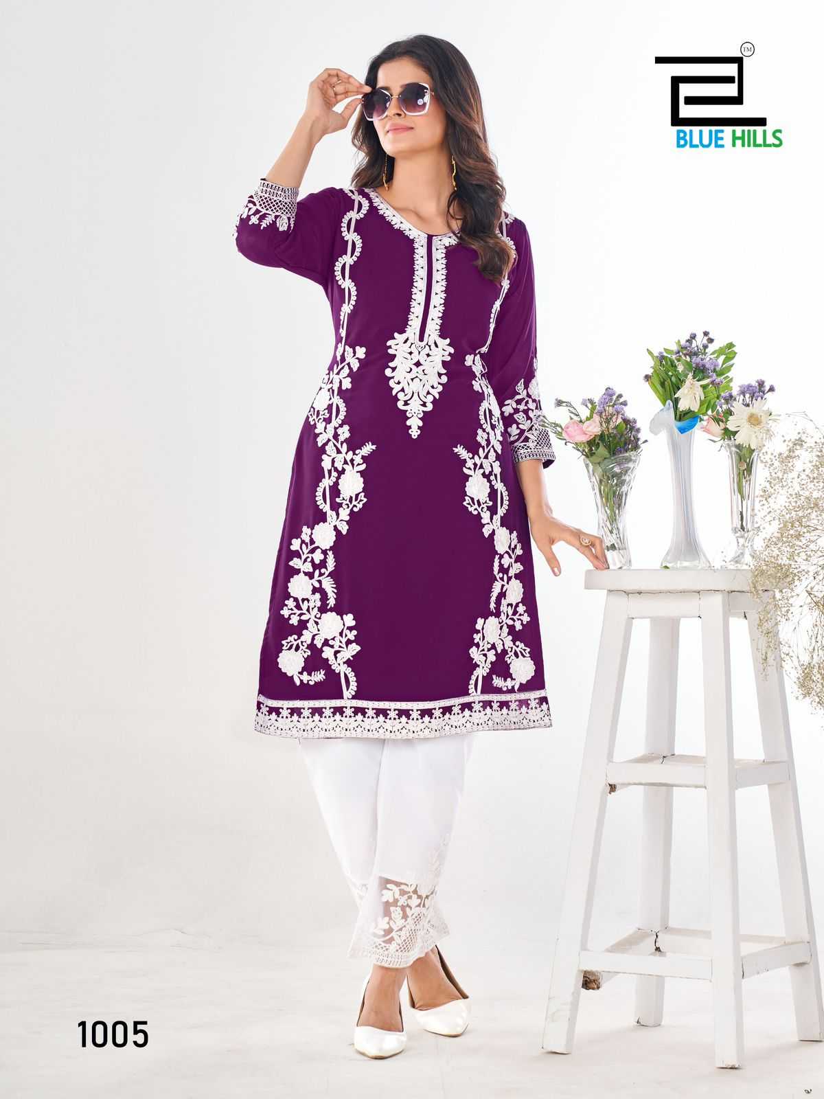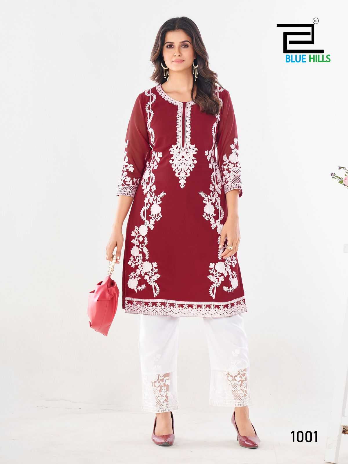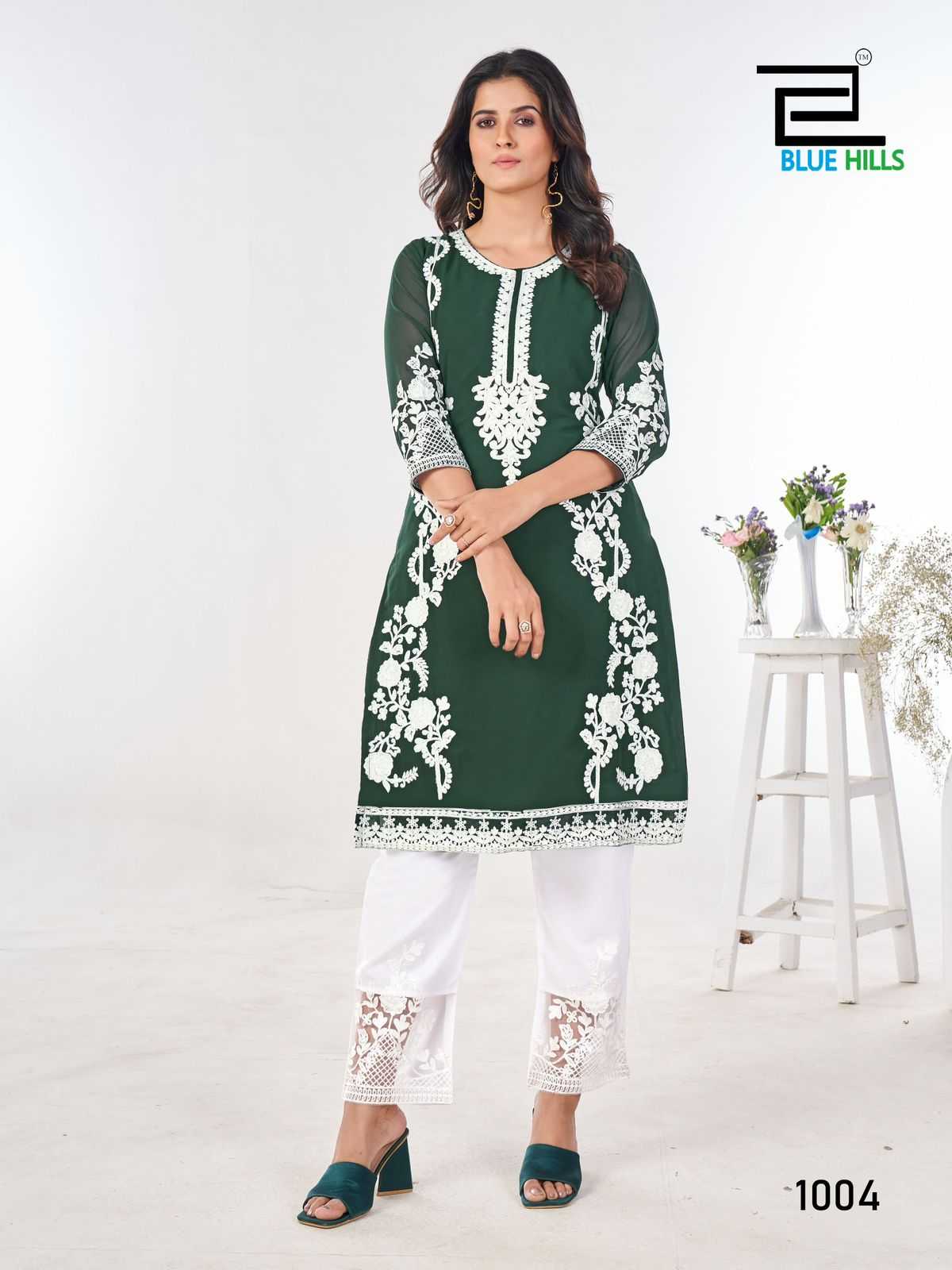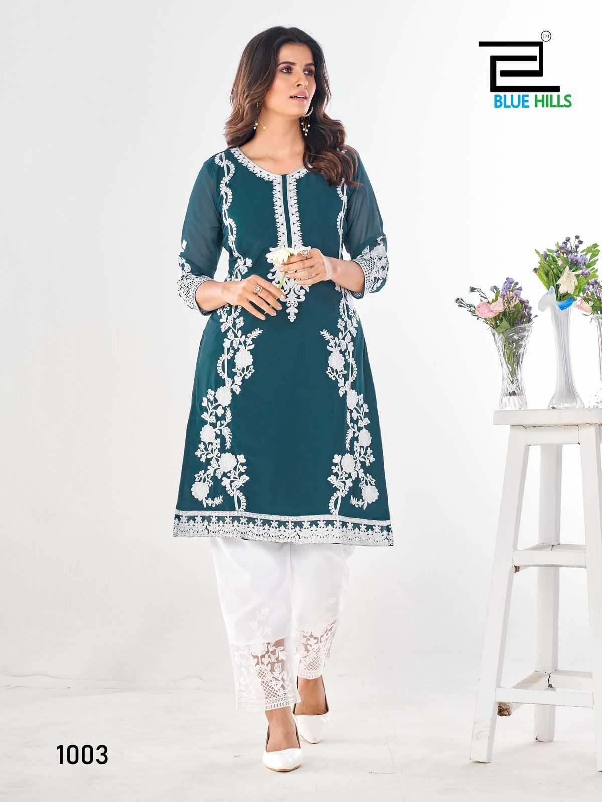 blue hills ahana full stitch classic look georgette long kurti supplier