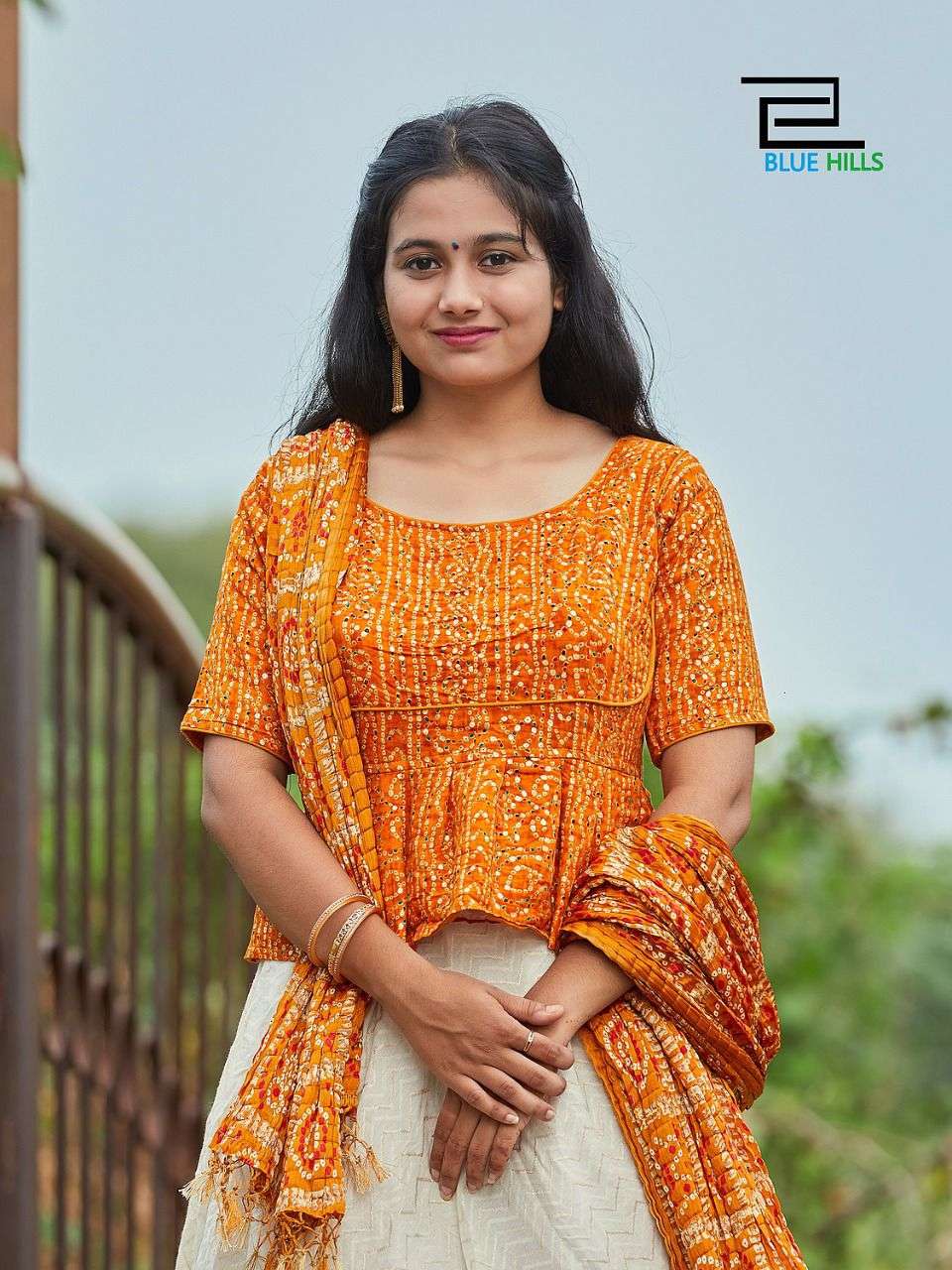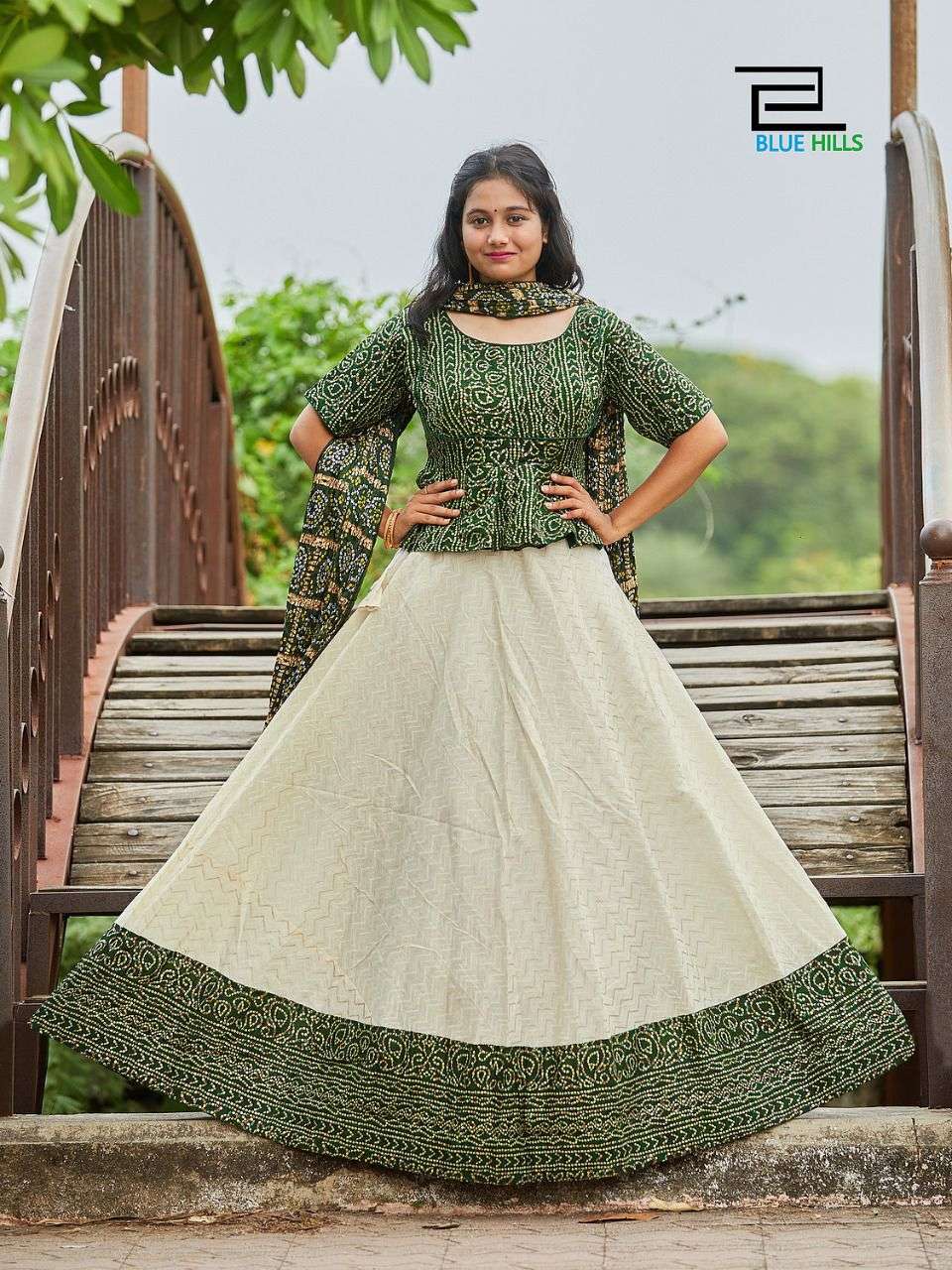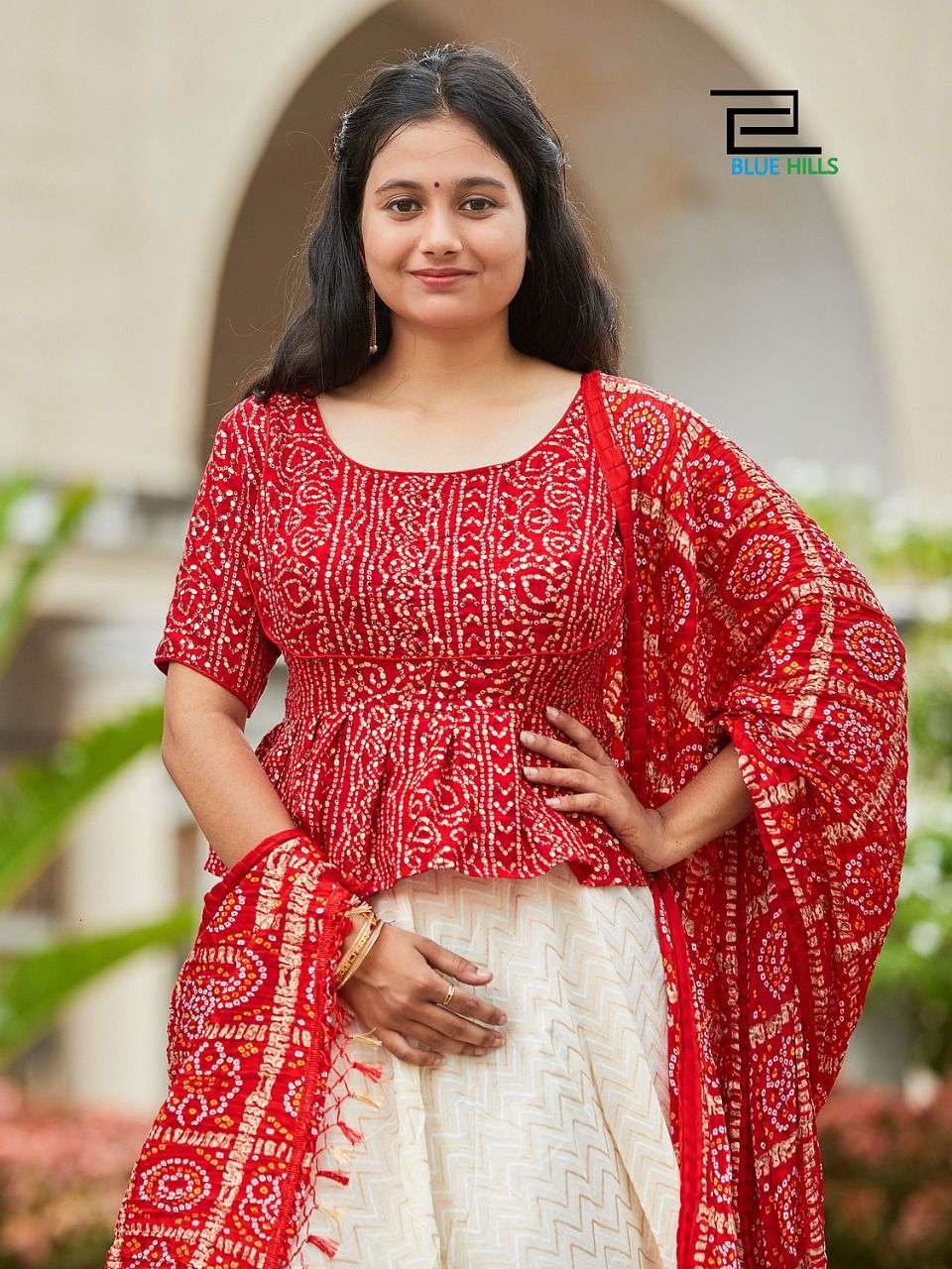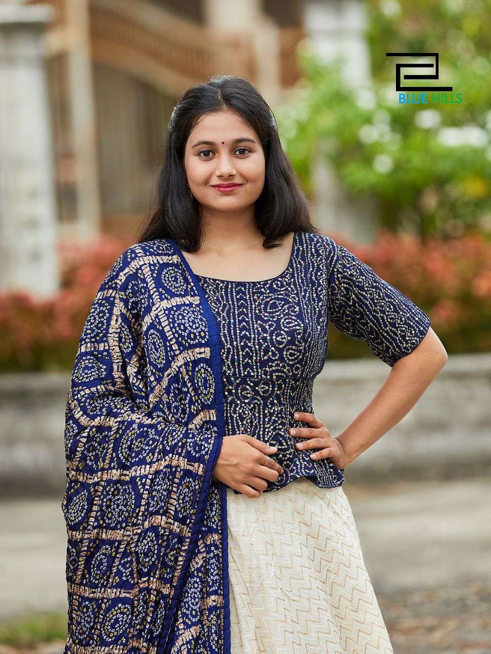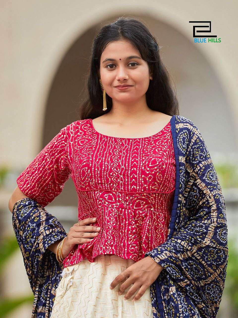 blue hills bandhej ready to wear traditional lehenga blouse dupatta set