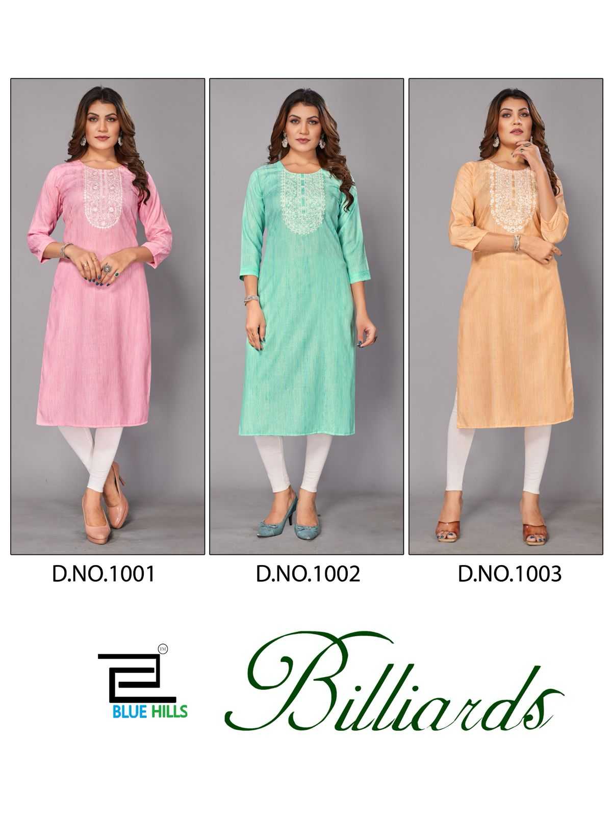 📕Catalogue:- Billiards 👗Fabric:- RAYON Jacquard Concept:- Straight Cut Kurti with Neck Embroidery Length-: 44 3 CLASSIC COLOR Size:- M,L,XL,XXL,3XL,4XL,5XL Rate -399+GST |