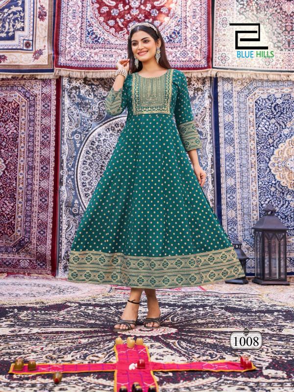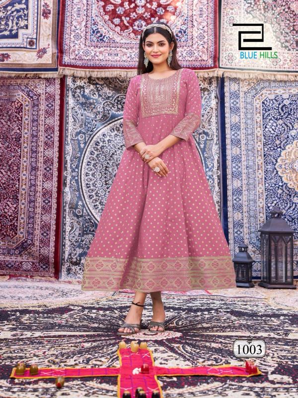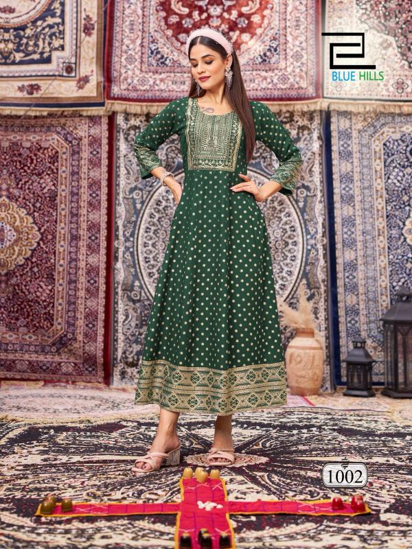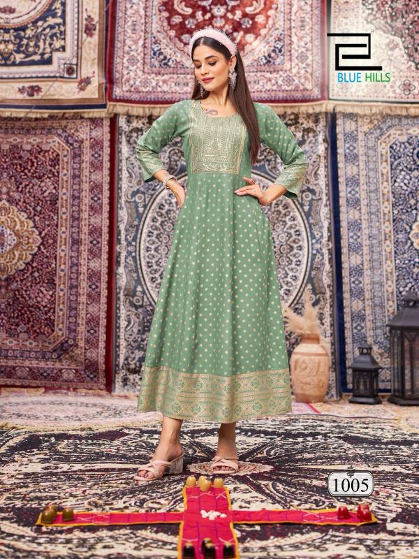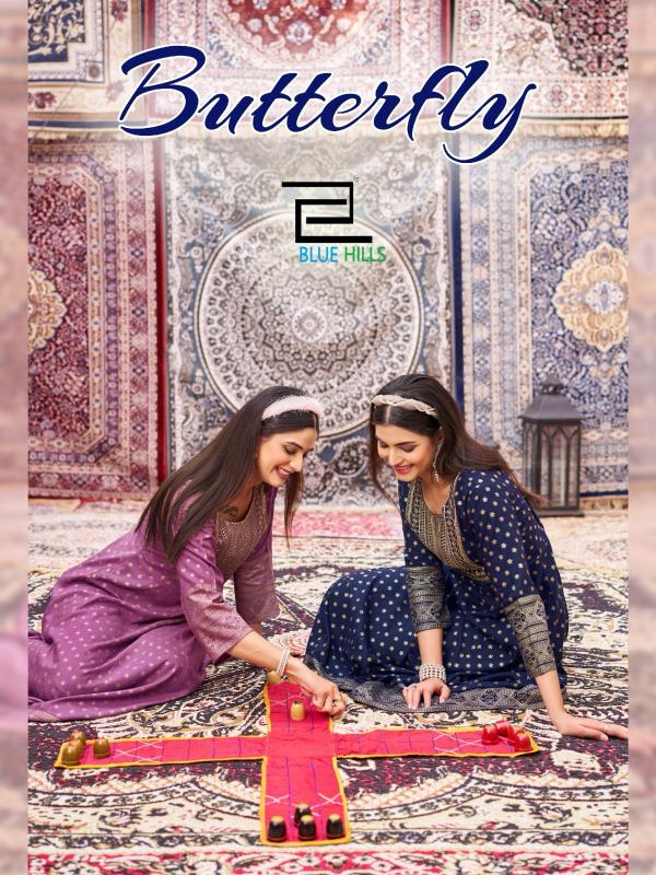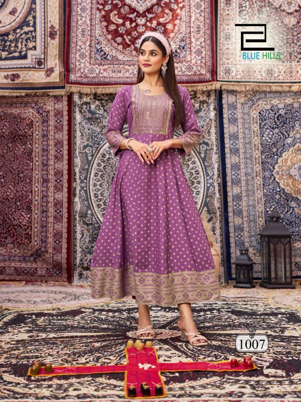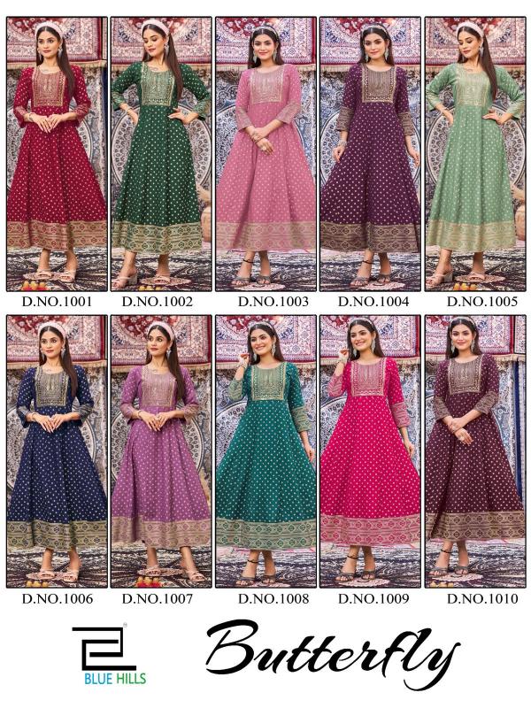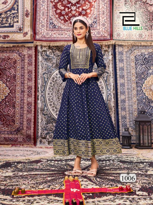 blue hills butterfly rayon anarkali style full stitch big size classic gown sets