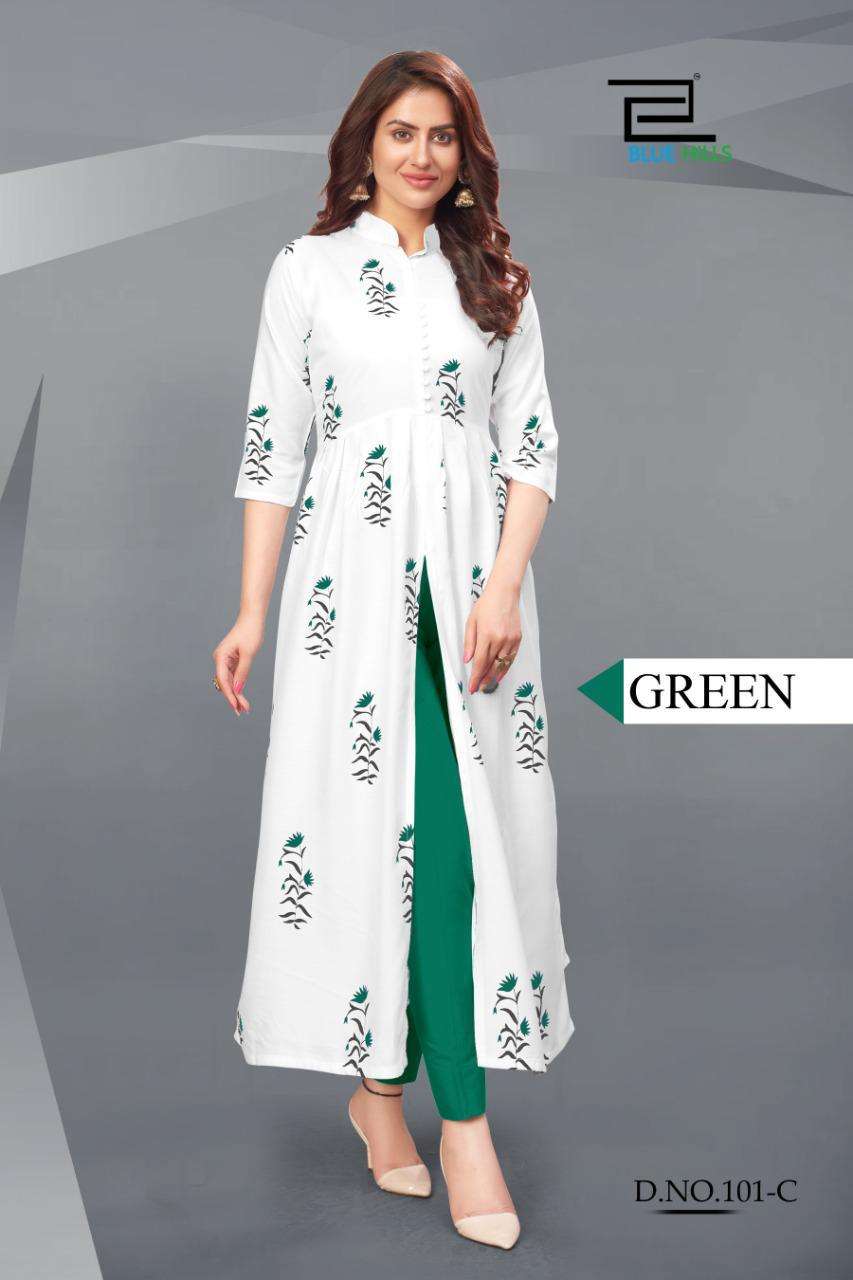blue hills calendar rayon long gown style readymade kurta for women